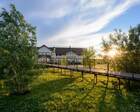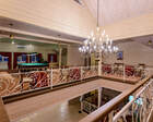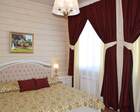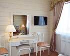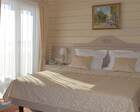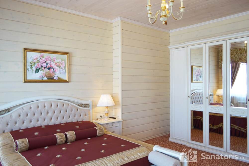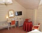 Двухэтажный отель рассчитан на 39 человек. Сооружение построено из натурального бруса, поэтому является экологически чистым.