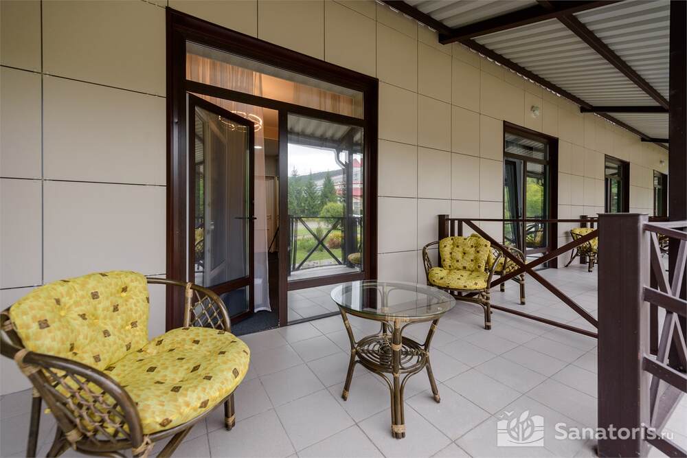 В пансионате «Алтайский замок+» есть дополнительный корпус, который расположен рядом с главным сооружением. Дойти до него можно всего за 5 минут. Неподалеку имеются горнолыжные трассы и терренкуры.