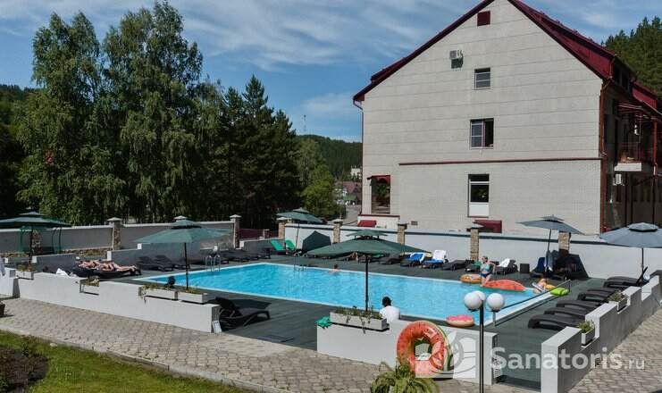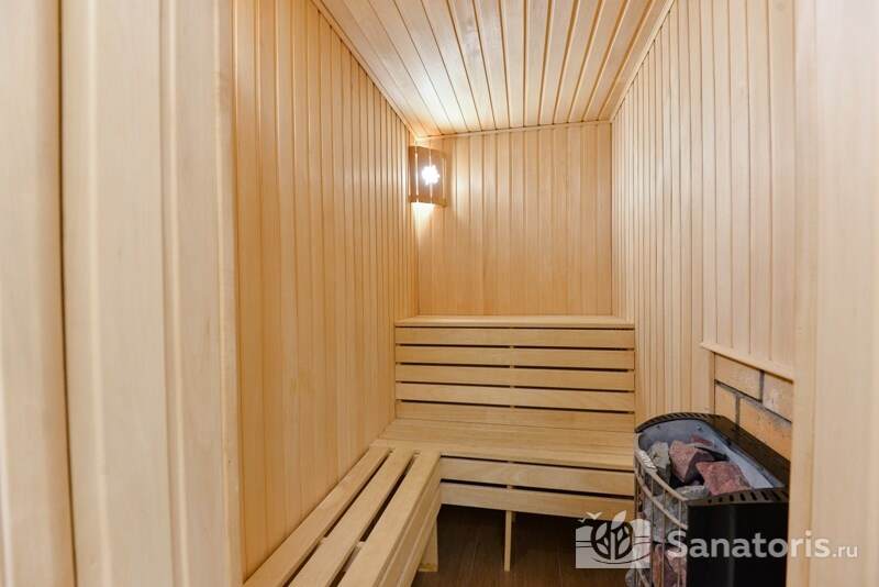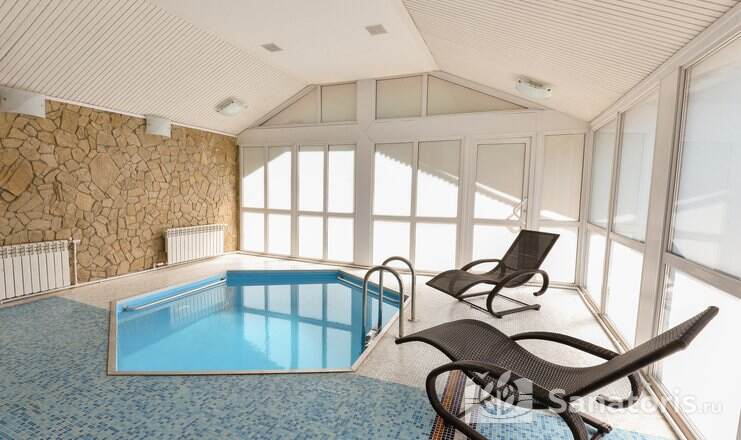 Можно понежиться в сауне, в которой рядом размещена купель. В летнее время работает бассейн под открытым небом. Площадка рядом с ним оборудована зонтиками, защищающими от знойного солнца и шезлонгами. Для детей построен отдельный бассейн.