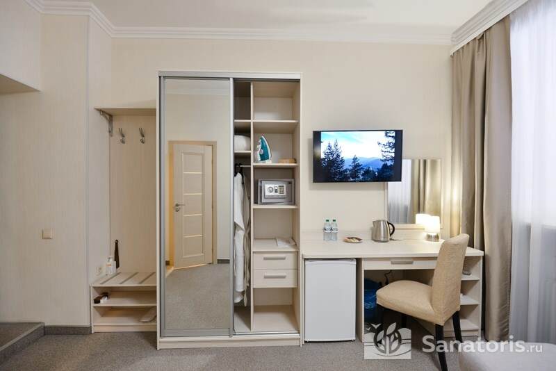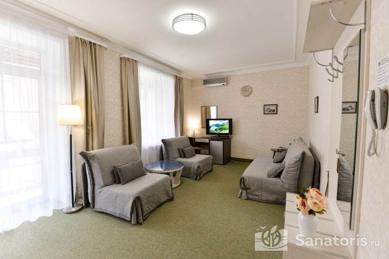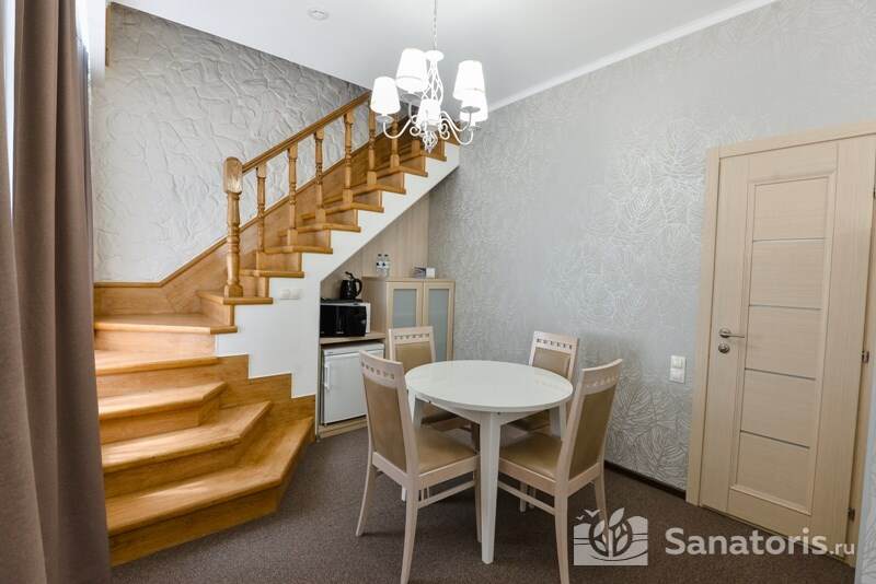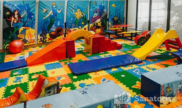 На базе самого санатория имеется несколько зон для детей, где также установлены телевизоры и игровые приставки. Имеется разнообразие настольных увлекательных игр. А в ресторане для деток поставлены специальные стульчики и есть возможность выбора из специального меню для самых маленьких.