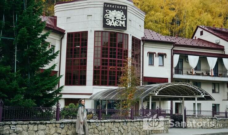 Дом отдыха Эдем представлен в виде трехэтажного большого здания. Оно вмещает не только номера для постояльцев, но также ресторан и лечебные кабинеты. Это очень удобно, так как все необходимое находится в одном здании. Более того, за счет такой компактности удается обеспечить индивидуальный подход к каждому отдыхающему.