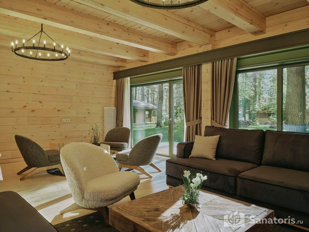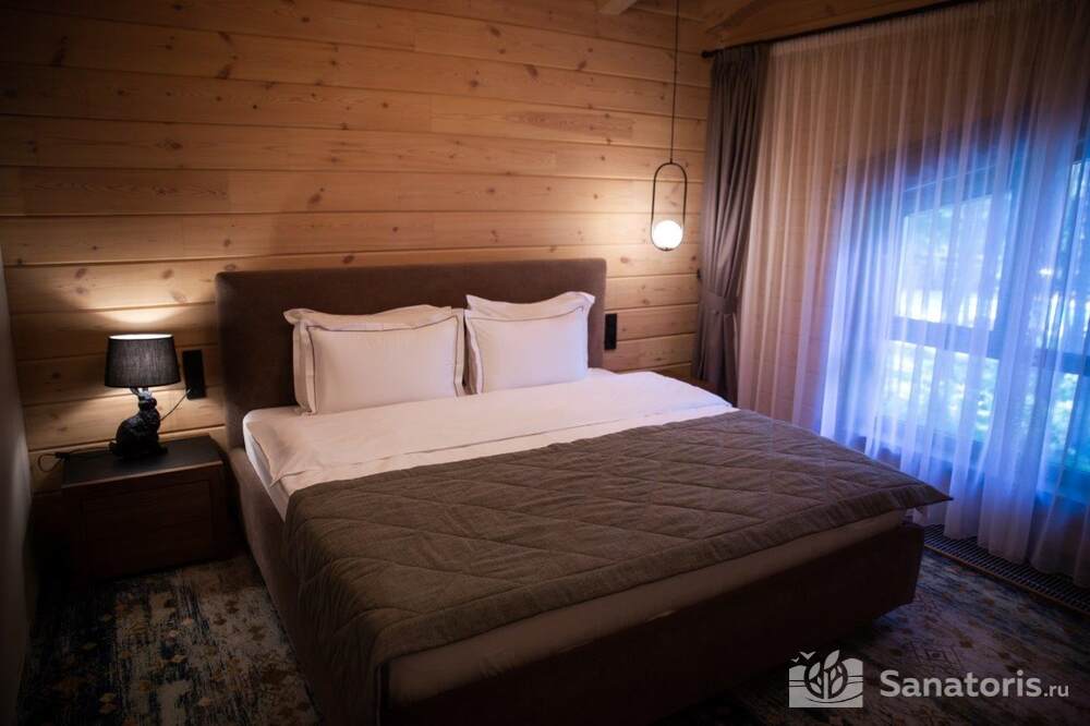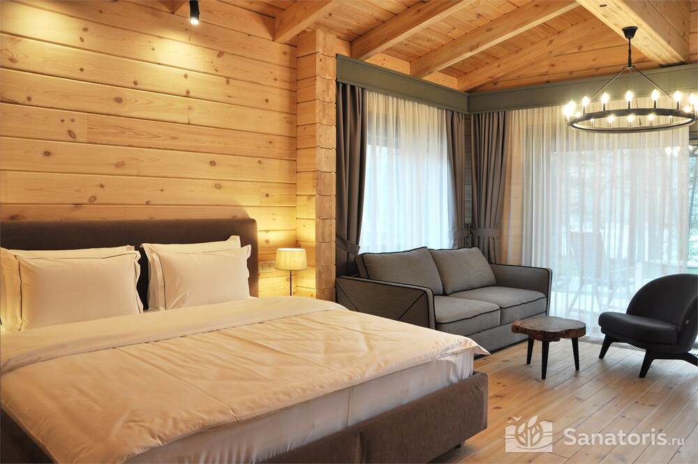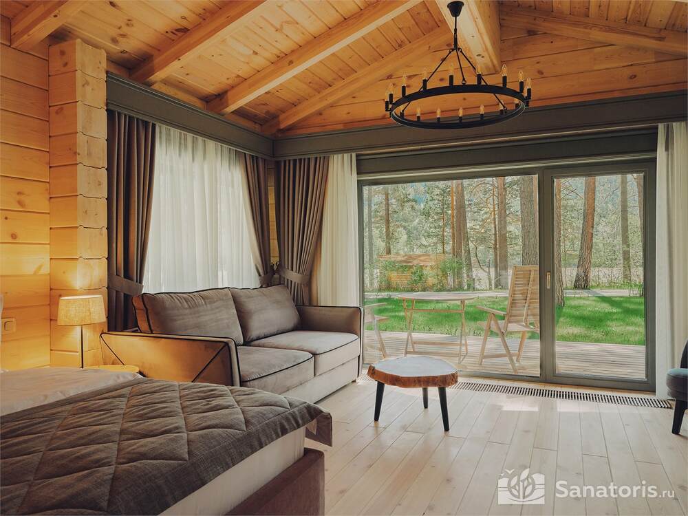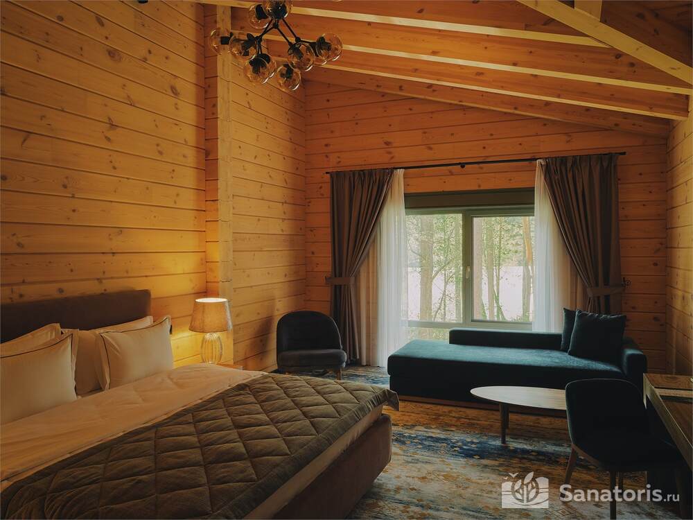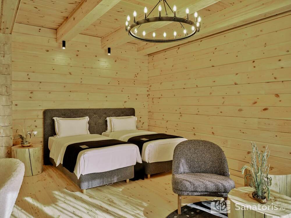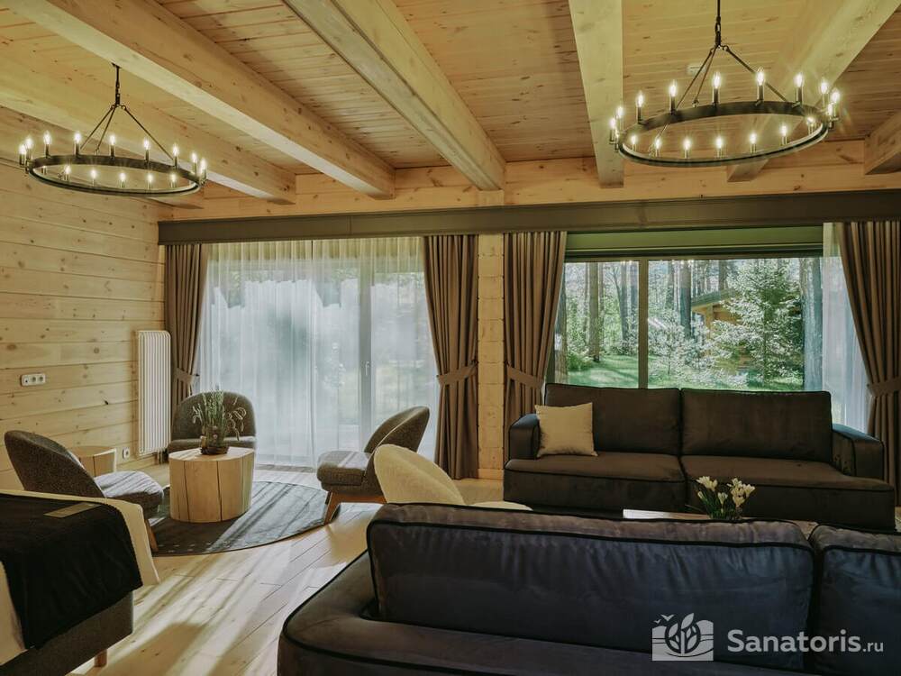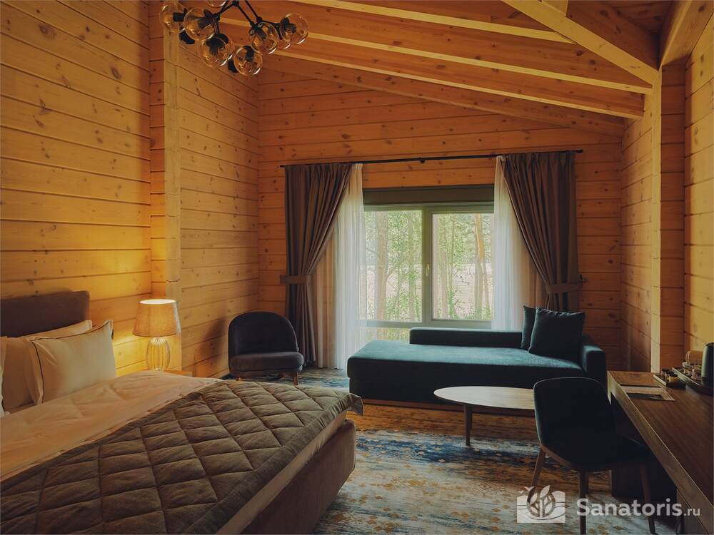 Общая площадь оздоровительного комплекса составляет около 8 гектар. Для проживания гостей предусмотрены современные коттеджи из натурального дерева, а так же комфортные апартаменты.