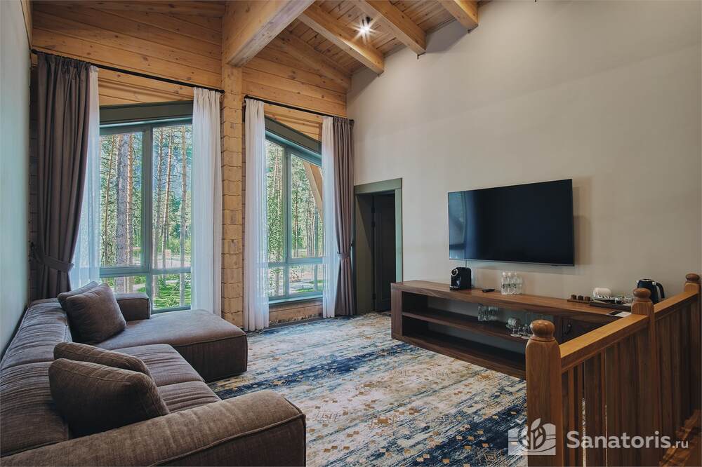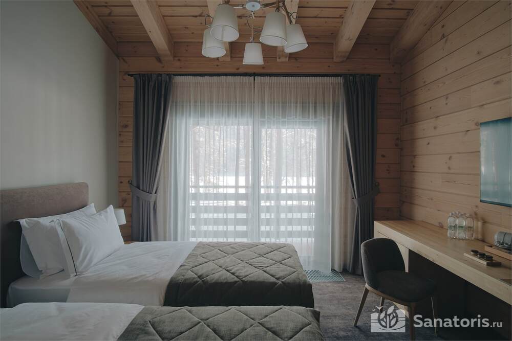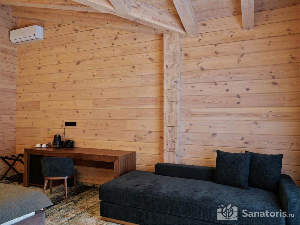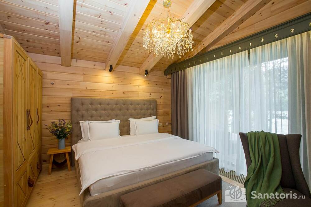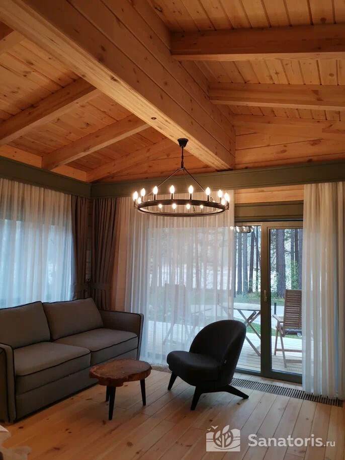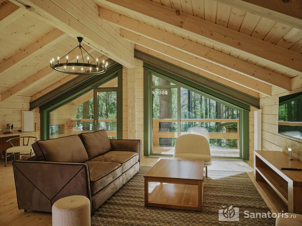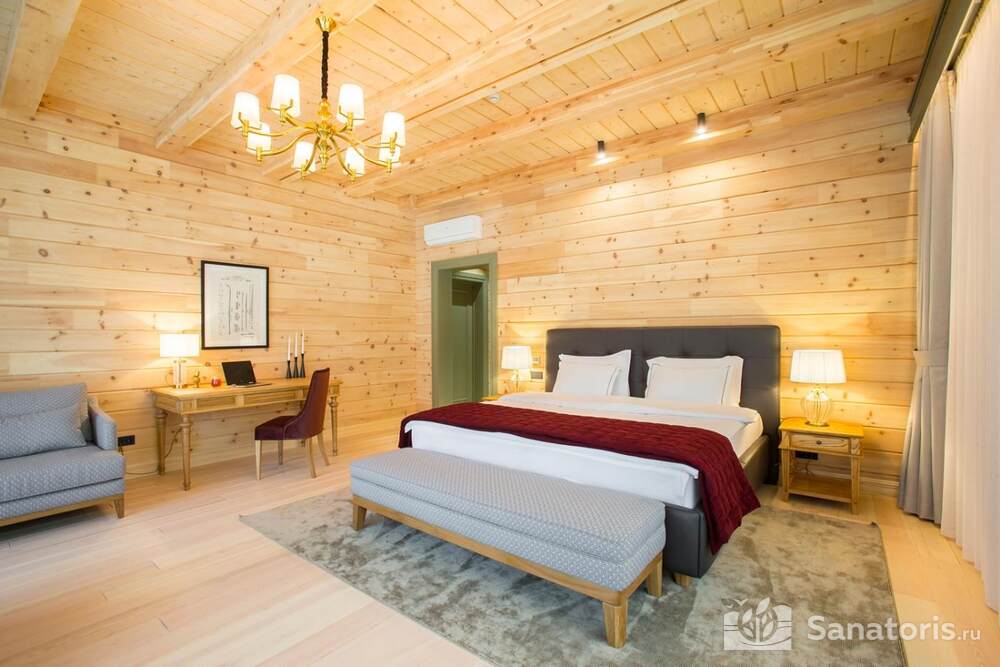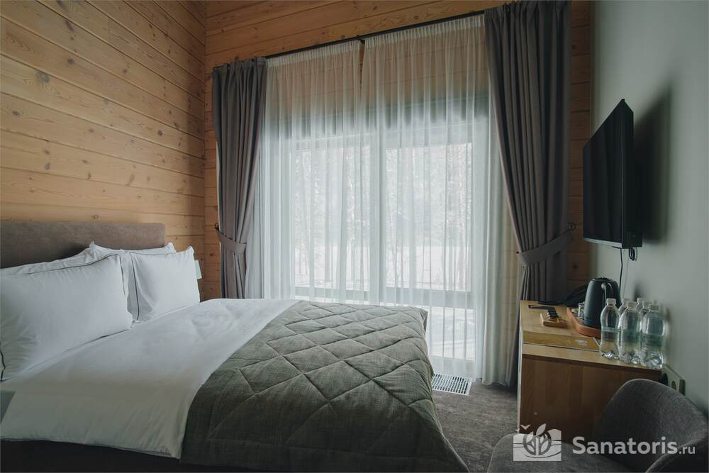 Общая площадь оздоровительного комплекса составляет около 8 гектар. Для проживания гостей предусмотрены современные коттеджи из натурального дерева, а так же комфортные апартаменты.