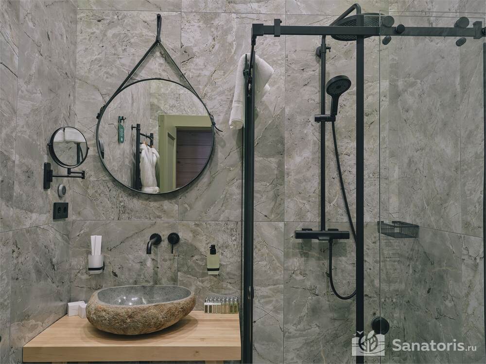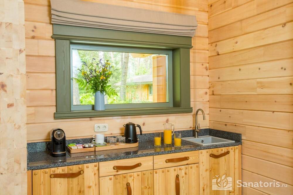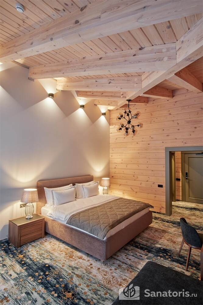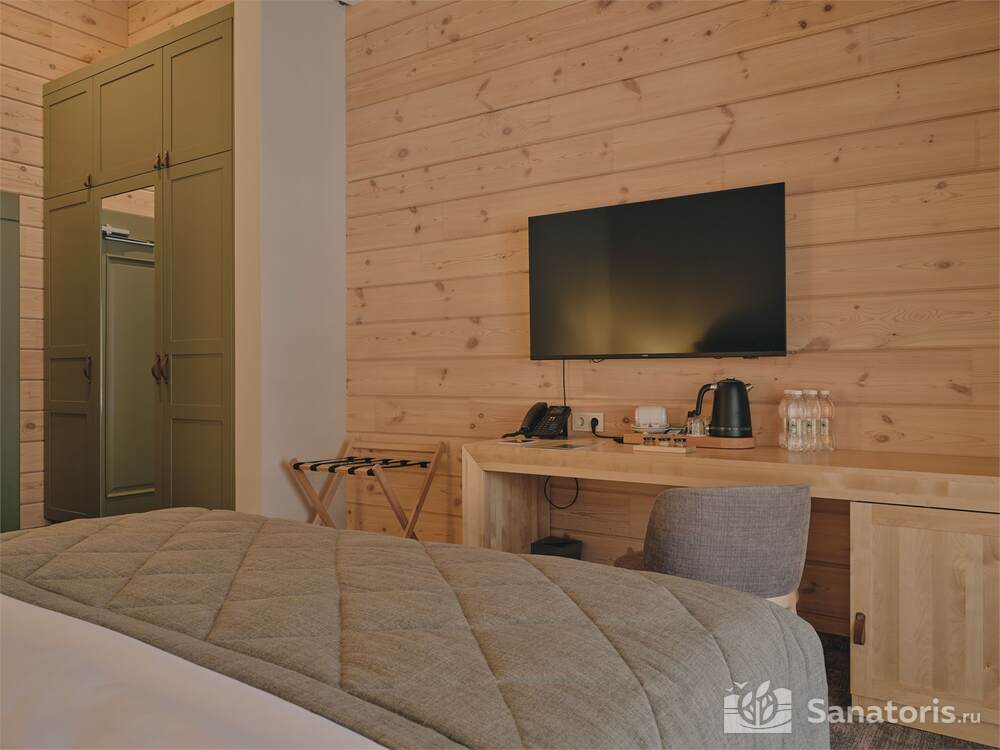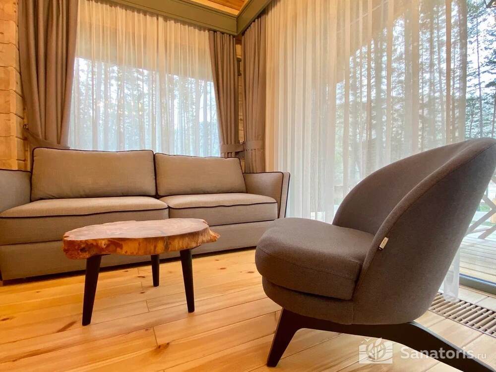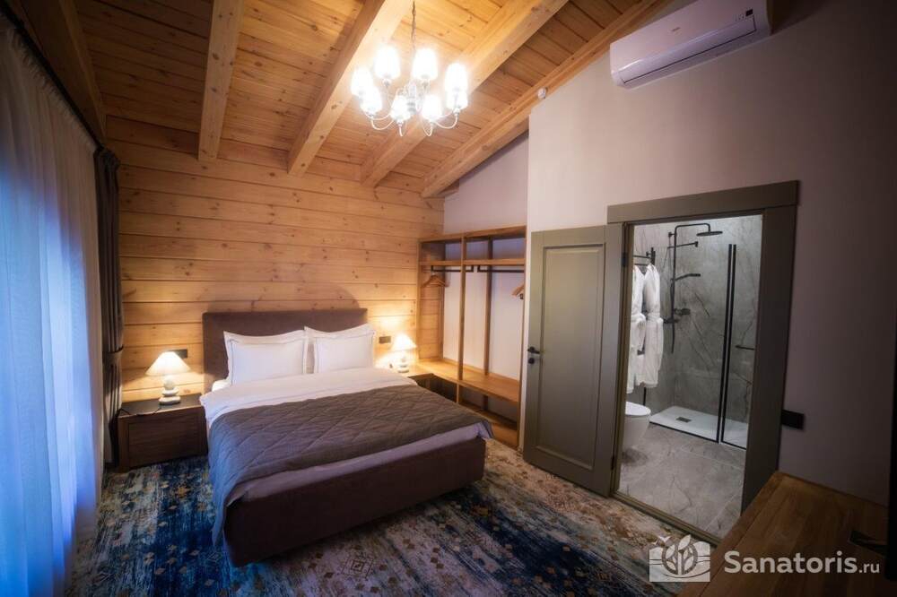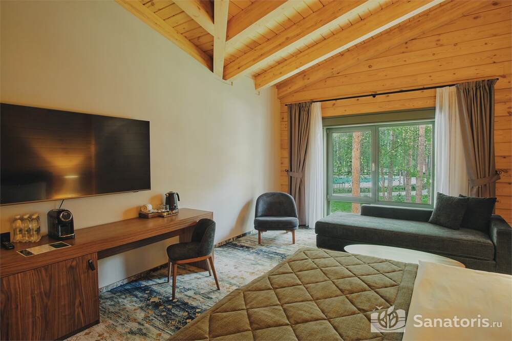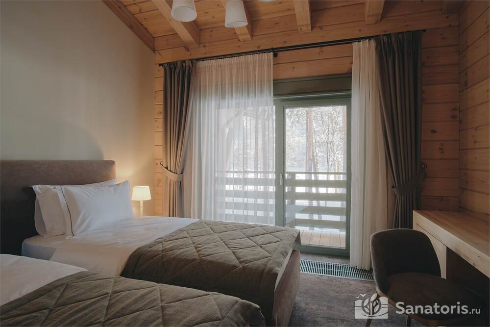 Общая площадь оздоровительного комплекса составляет около 8 гектар. Для проживания гостей предусмотрены современные коттеджи из натурального дерева, а так же комфортные апартаменты.