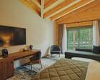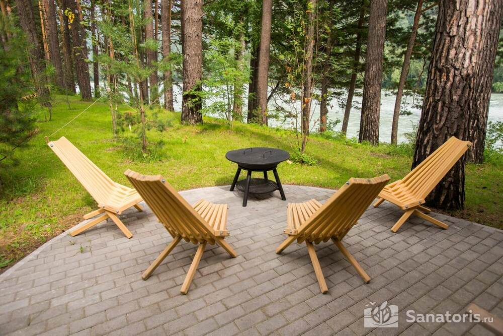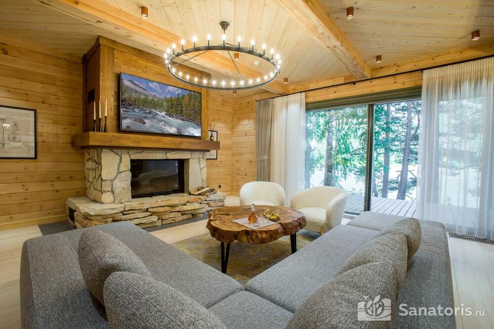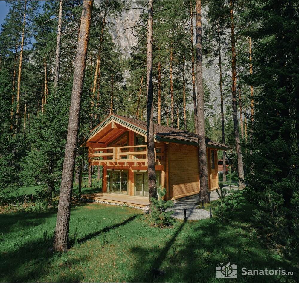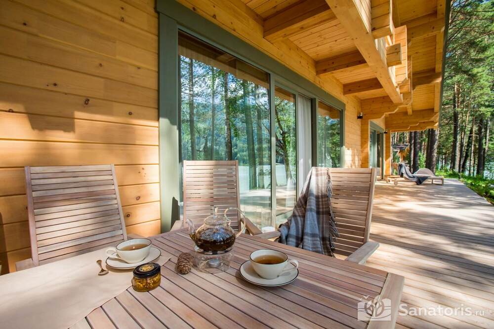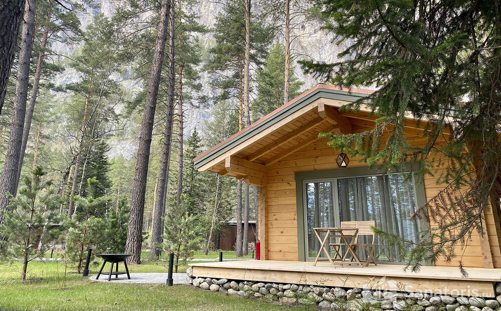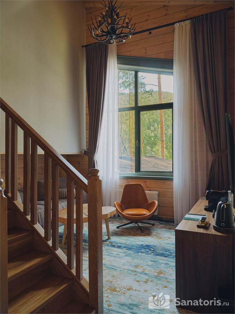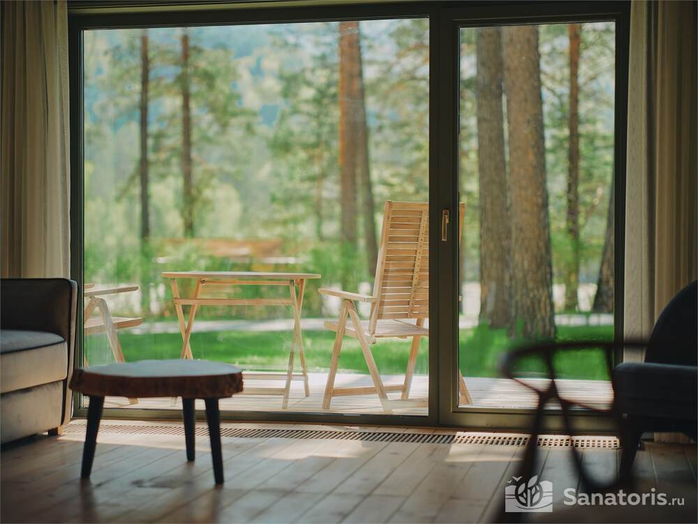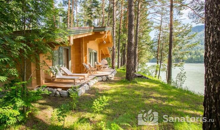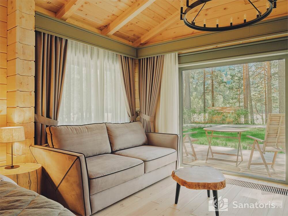 Интерьер номеров продуман до мелочей. В каждом из них установлены панорамные окна, из которых открывается великолепный вид на реку Катунь и величественные горные массивы. В коттеджах присутствуют просторные террасы.