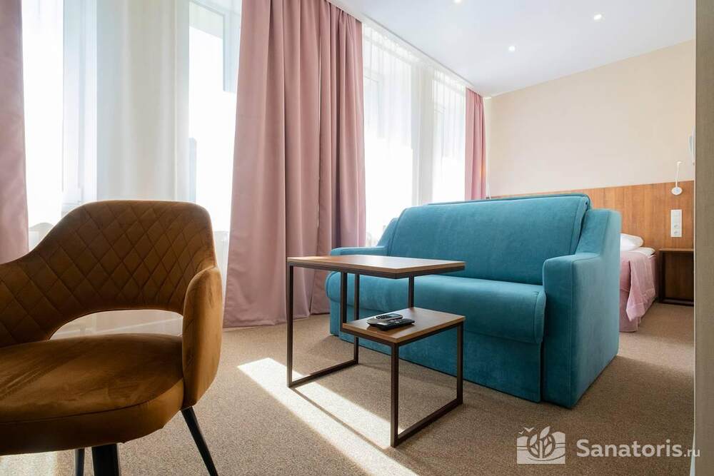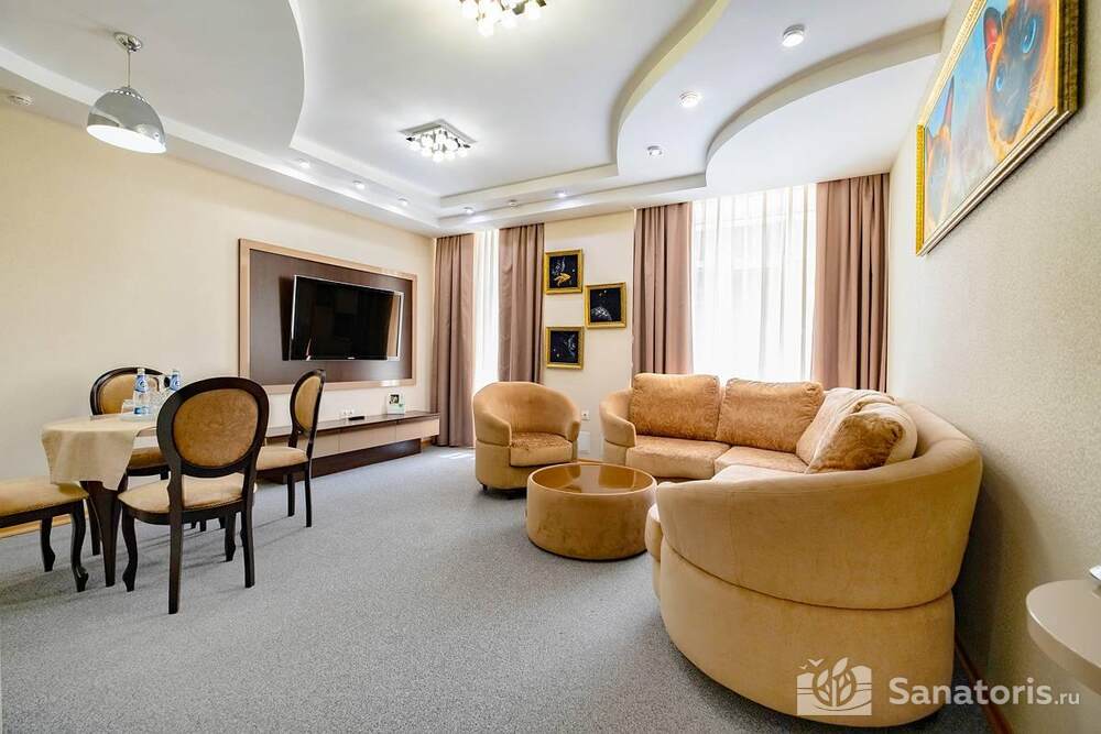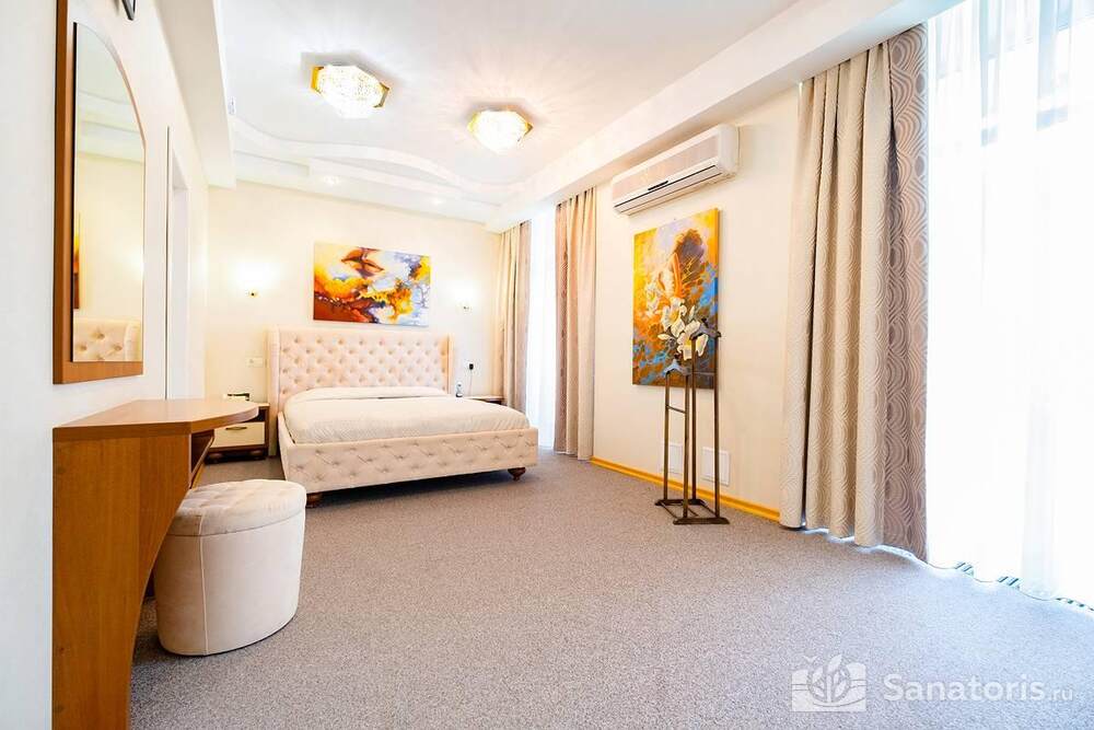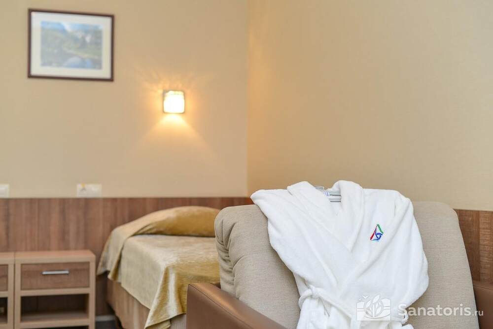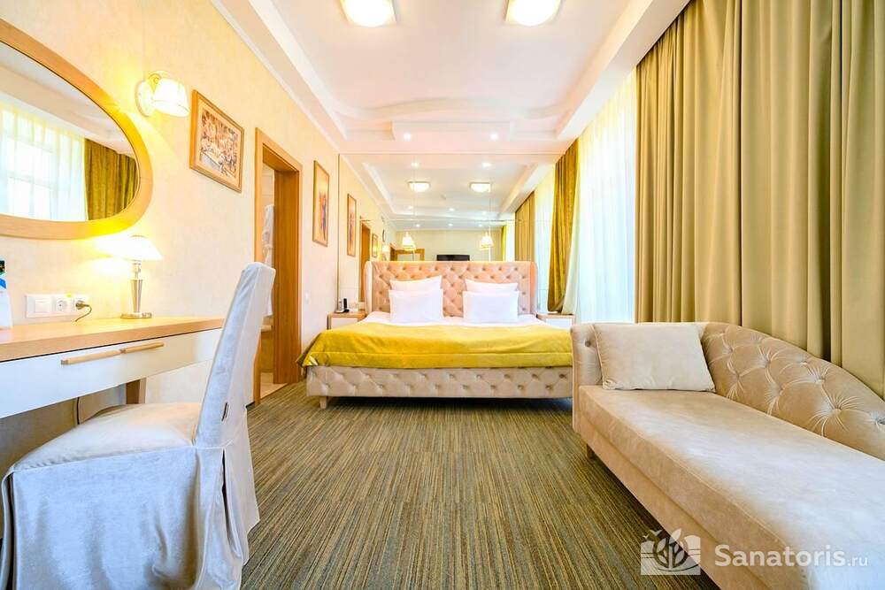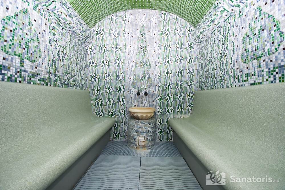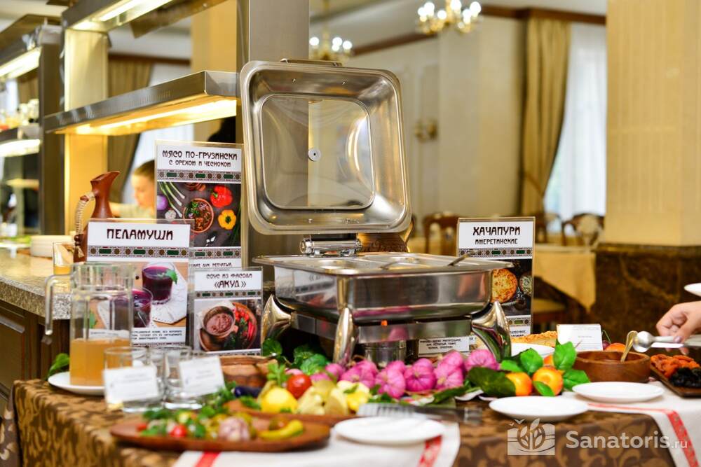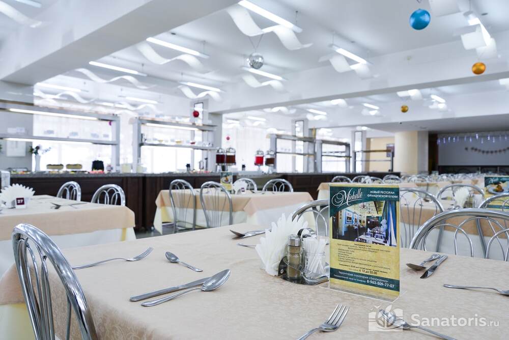 Ресторан первой категории расположен на втором этаже санатория. Питание здесь предлагается в виде шведского разнообразного стола. При желании можно выбрать меню люксового характера. В этом случае обслуживание гостей будет осуществляться в отдельном зале. Специально для маленьких постояльцев питание организуется до пяти раз в день.