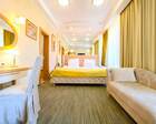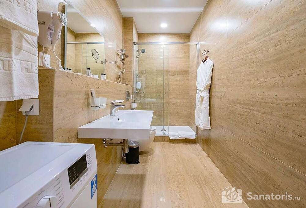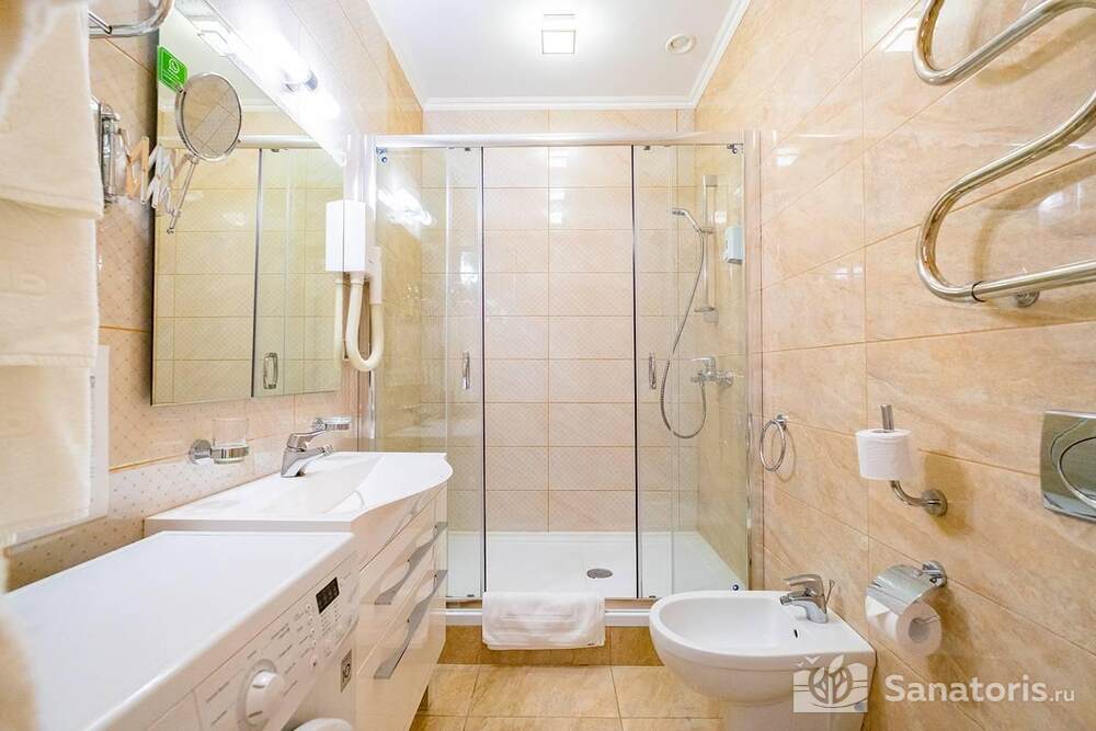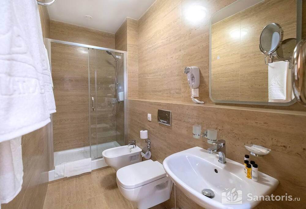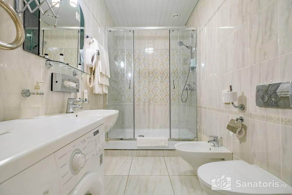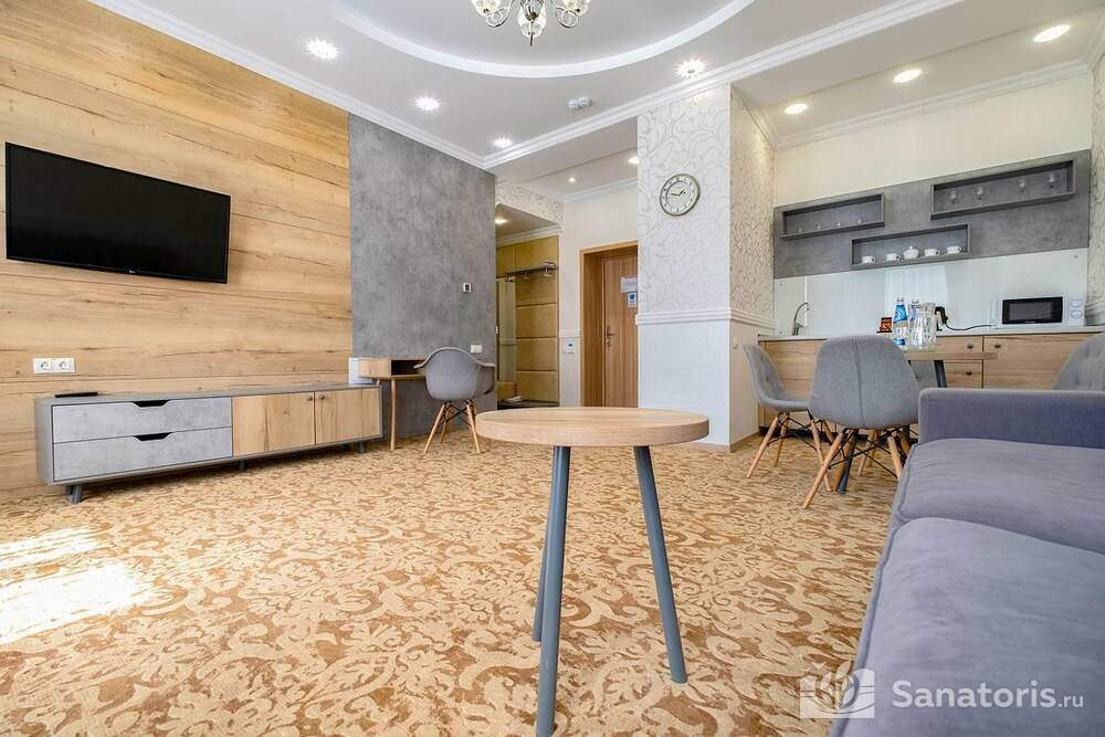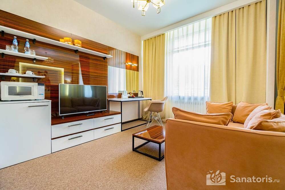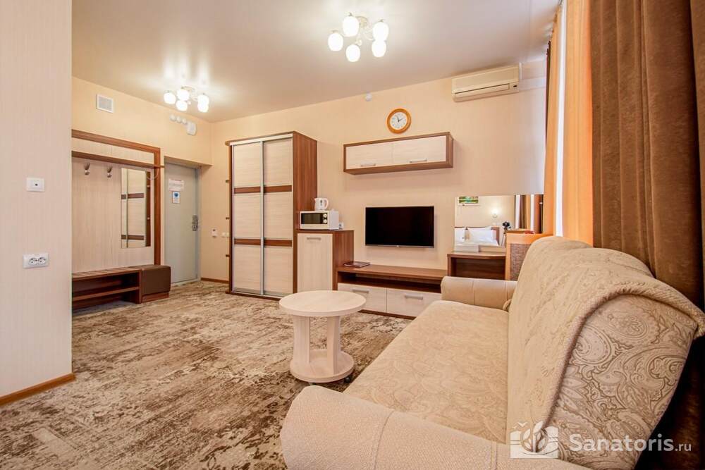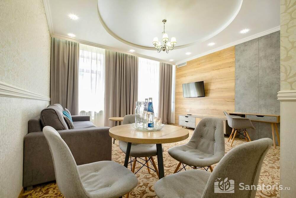 Ресторан первой категории расположен на втором этаже санатория. Питание здесь предлагается в виде шведского разнообразного стола. При желании можно выбрать меню люксового характера. В этом случае обслуживание гостей будет осуществляться в отдельном зале. Специально для маленьких постояльцев питание организуется до пяти раз в день.