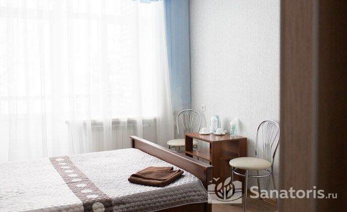 Номера санатория тоже разные. Есть как стандартные и одноместные, так и класса люкс. Номера хорошо оборудованы. В них имеется мягкая мебель, холодильник, телевизор. На каждом этаже также обустроена гладильная комната и есть доступ в интернет.
