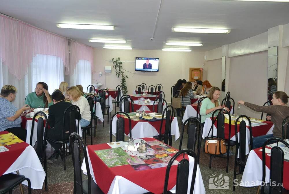 Гости могут отдыхать на протяжении 14 или 21 сутки. Для проживания предусмотрены номера на 2 и 3 человека. Пансионат работает круглый год. Одновременно здесь могут отдыхать 100 человек. Здравница идеально подходит для отдыха всей семьи.