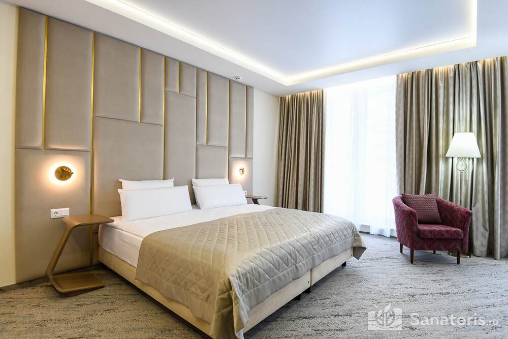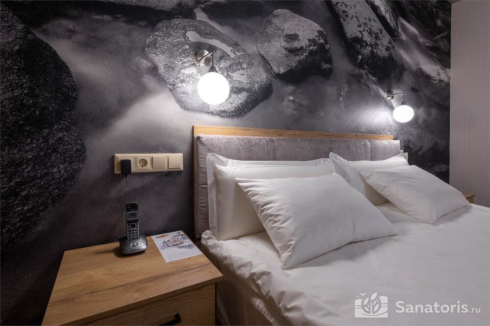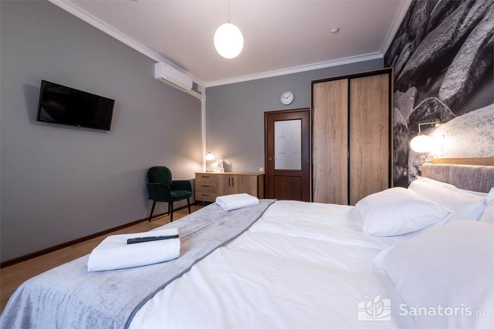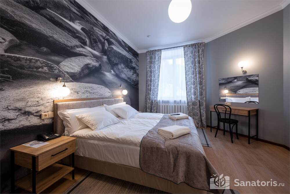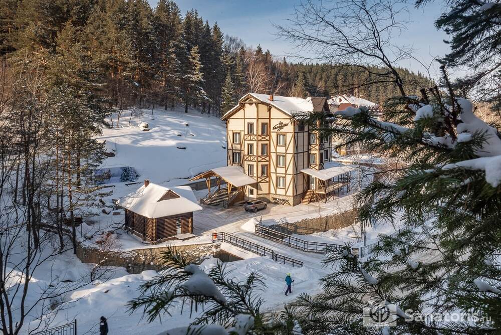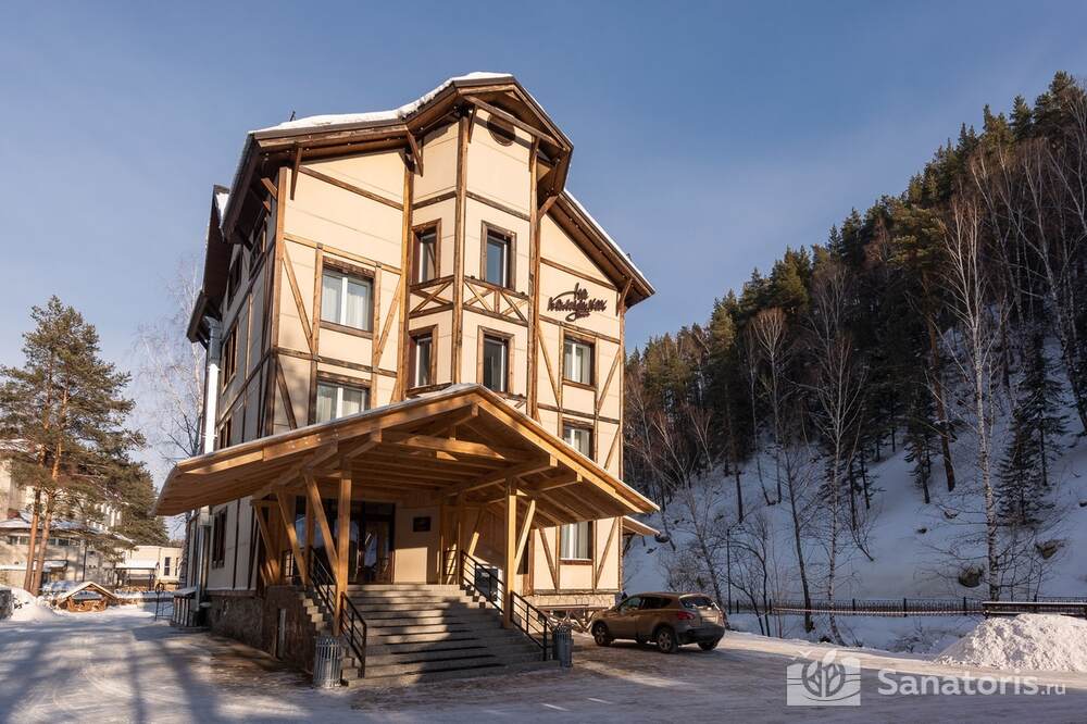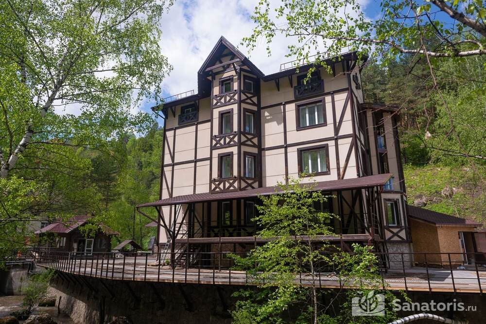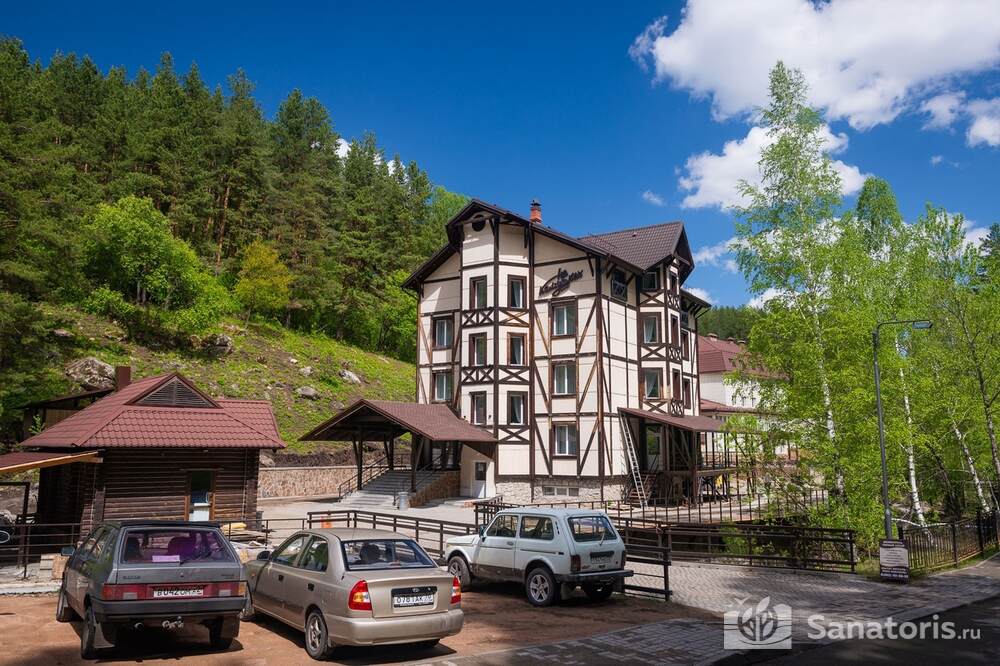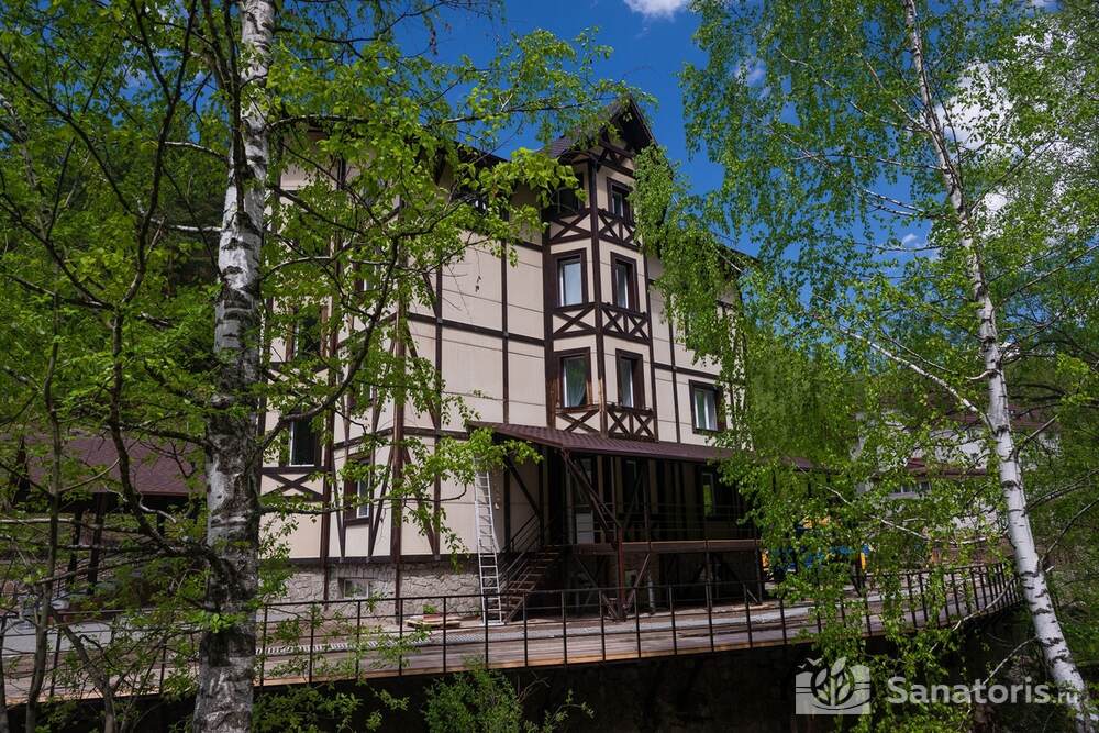 Четырехэтажный отель находится среди красивой природы возле величественной горы. Рядом протекает чистая река Белокуриха. Постояльцы отеля могут посещать чистый пляж, купаться в речке.