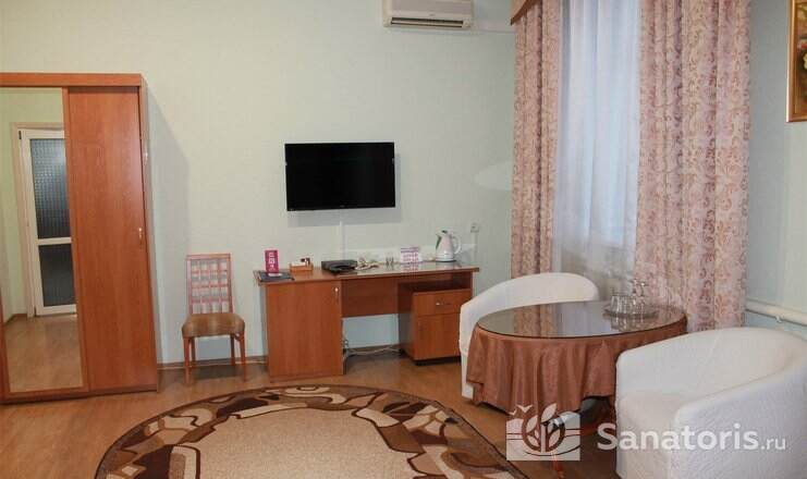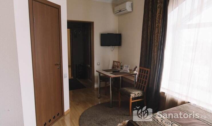Трехэтажное здание отеля предлагает разные виды размещения. Обстановка здесь тихая и спокойная. В комфортных номерах есть туалет, ванная комната, плазменный телевизор, стационарный телефон, система кондиционирования, холодильник, чайник. В апартаментах класса люкс есть бесплатный доступ к Интернету, тапочки и банные халаты.