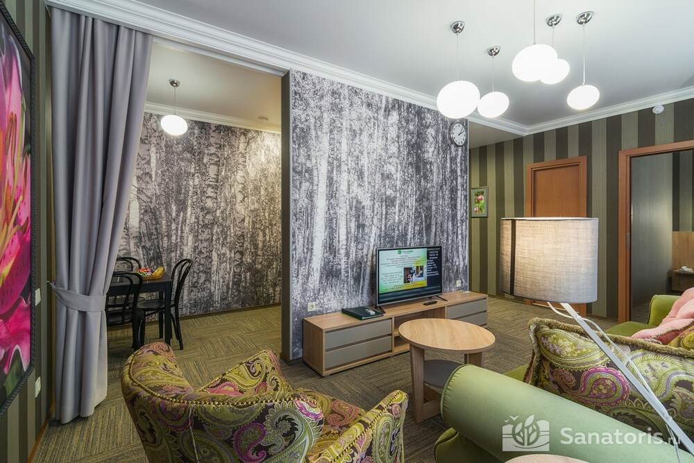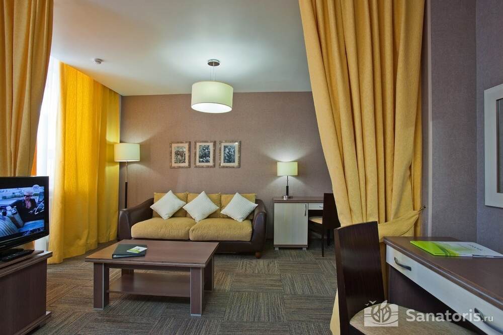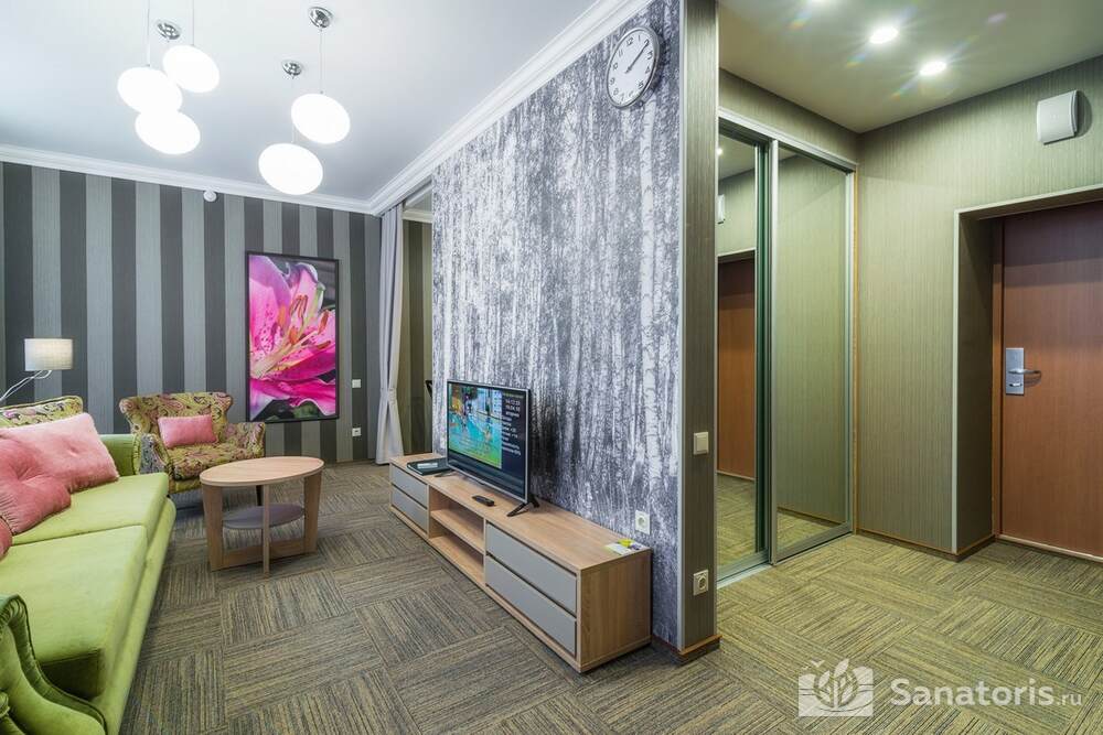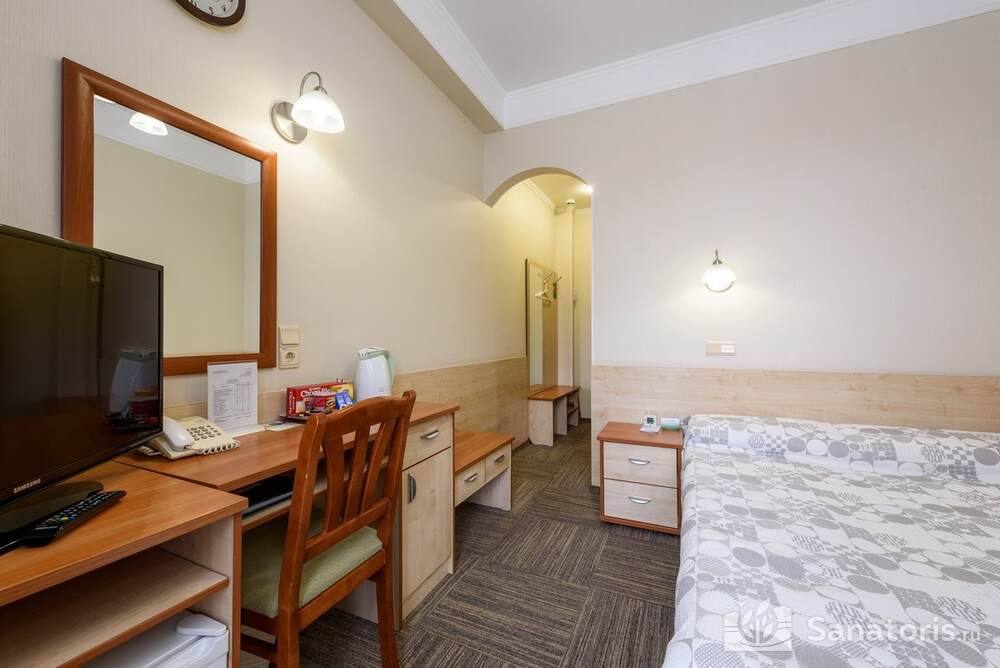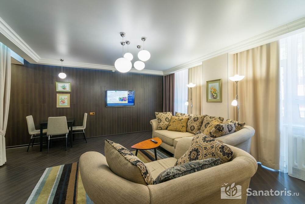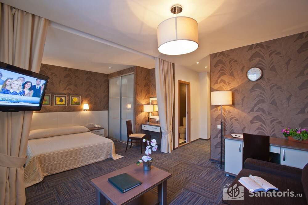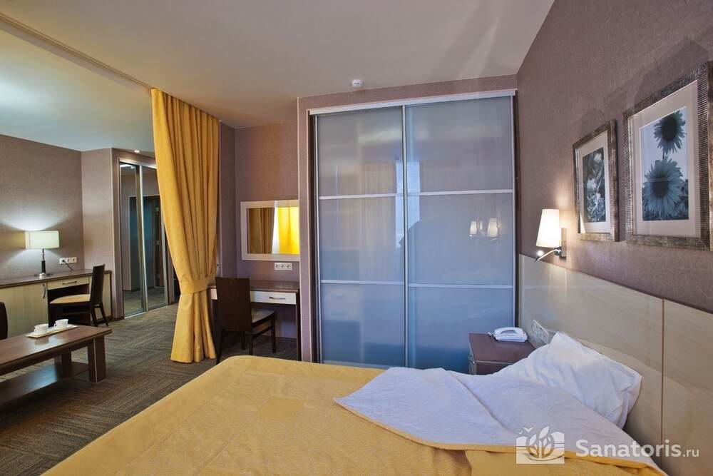 Кроме этого на территории здравницы есть эко-гостиница и отель бизнес класса. Проводится ежегодное обновление апартаментов. В каждом номере предусмотрен холодильник, спутниковое телевидение, кондиционер. При необходимости обустраиваются дополнительные спальные места.