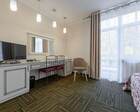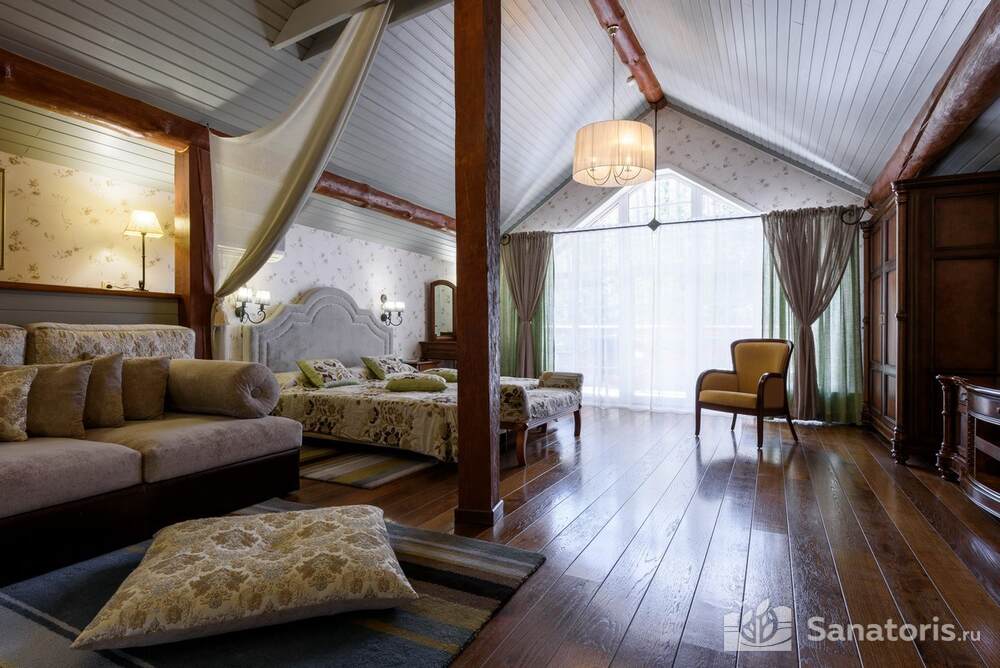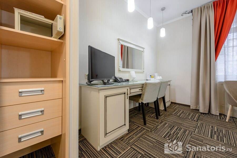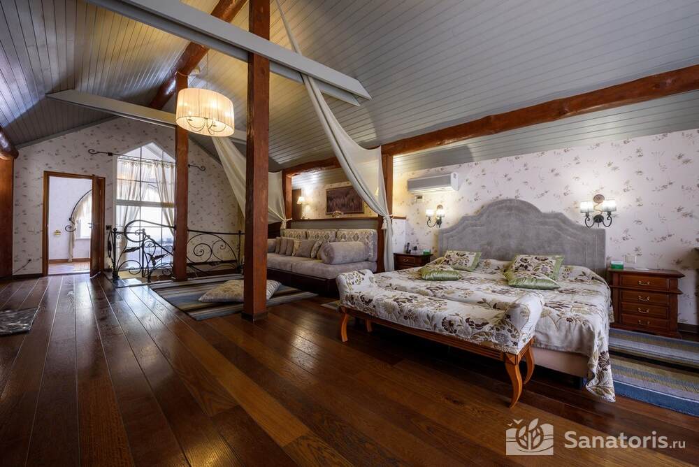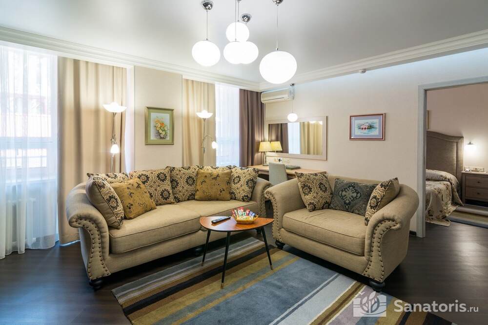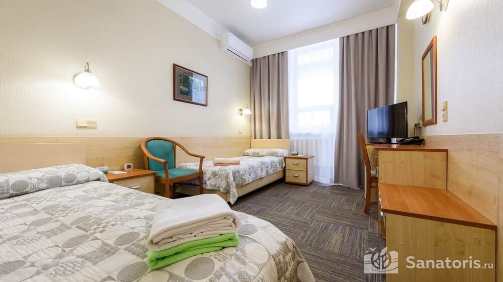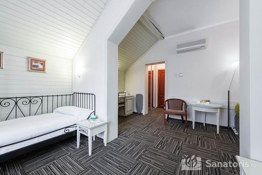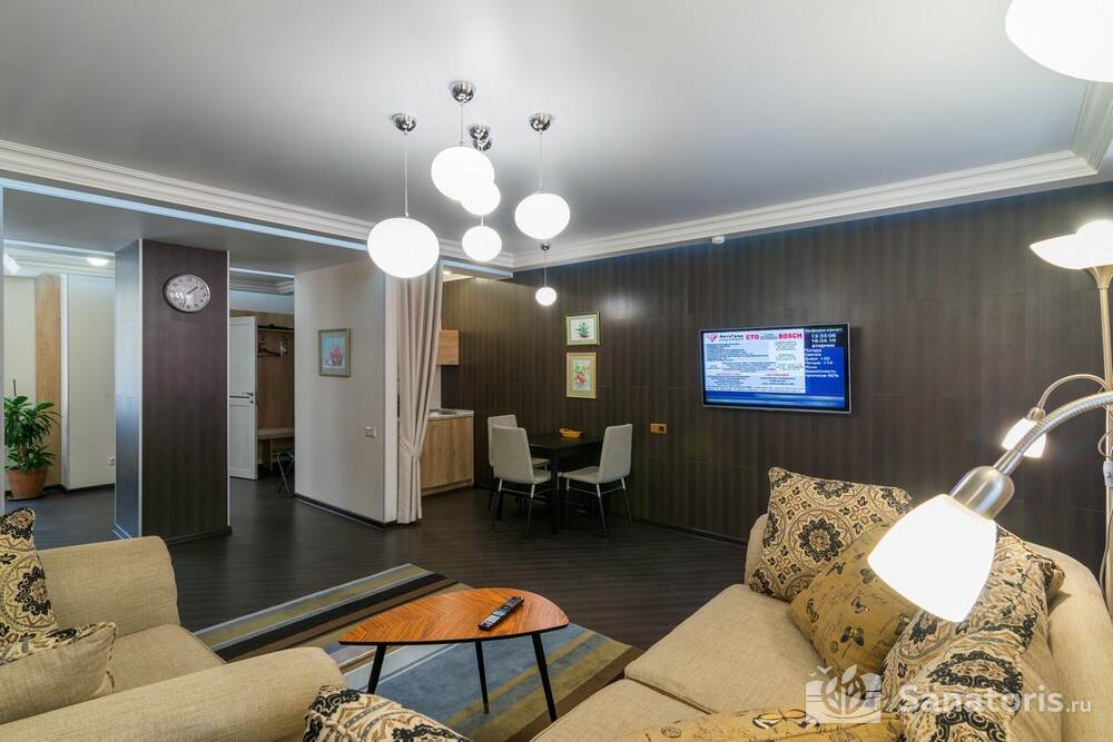 Кроме этого на территории здравницы есть эко-гостиница и отель бизнес класса. Проводится ежегодное обновление апартаментов. В каждом номере предусмотрен холодильник, спутниковое телевидение, кондиционер. При необходимости обустраиваются дополнительные спальные места.