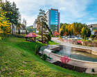 На этой территории обустроено два сооружения по 10 этажей каждое. В них есть современный лифт. К спальным корпусам примыкает медицинский центр. Пройти к нему можно по теплому переходу.