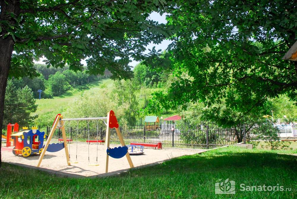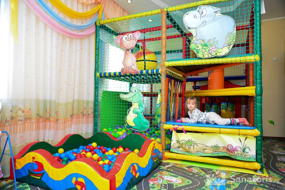 Для маленьких гостей предусмотрена отдельная программа развлечений. Когда родители отправляются на процедуры, то дети остаются в детской комнате. Здесь много игрушек, развивающих игр. Работают опытные педагоги. В детском клубе есть две отдельные комнаты. В первой расположен лабиринт, сухой бассейн и игровая зона. На территории комплекса обустроена площадка для детей с качелями и городком.