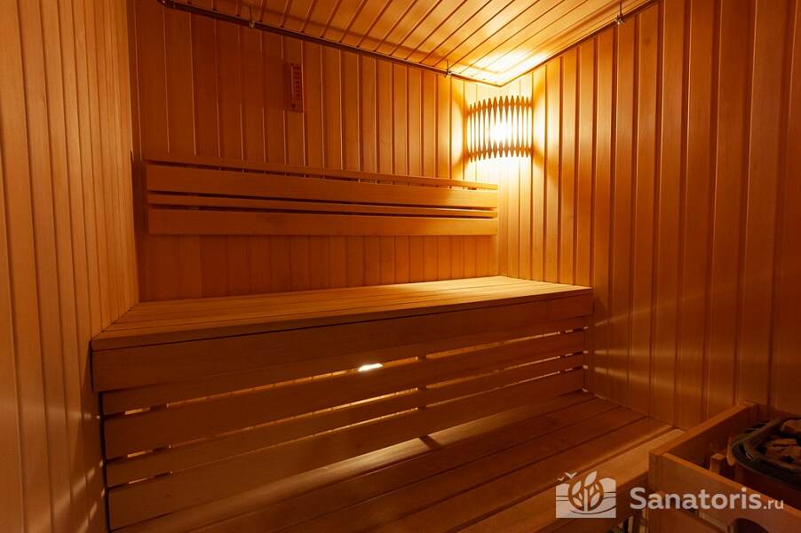 Гости могут питаться в столовой или изысканном ресторане. Блюда готовятся из натуральных ингредиентов. При необходимости предоставляется диетическое меню. Работает открытое кафе. Для отдыхающих оборудован бассейн, сауна, библиотека, бильярдная комната.