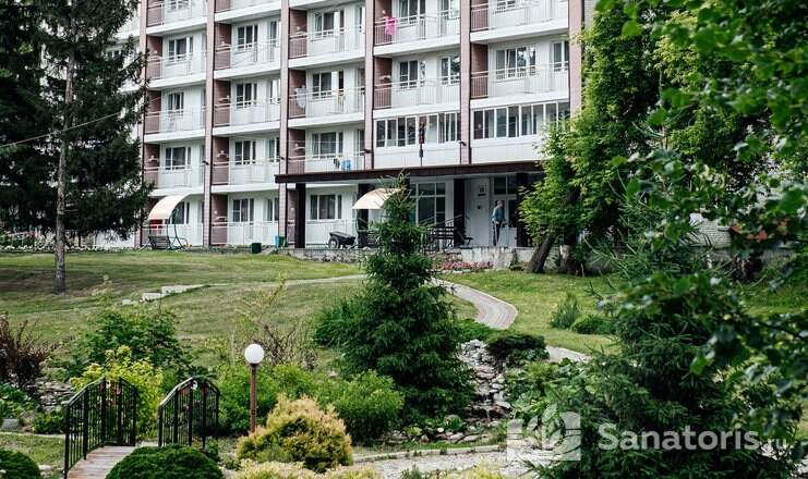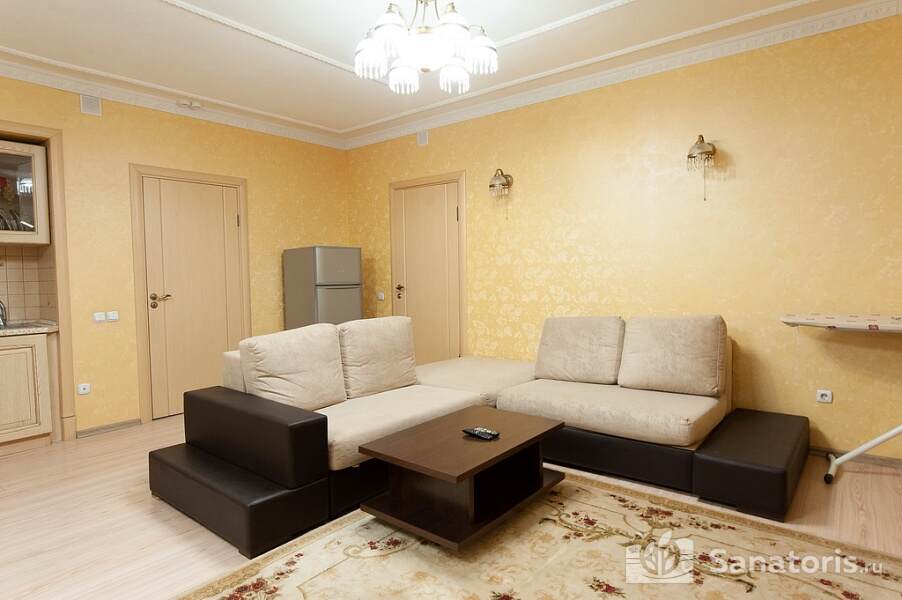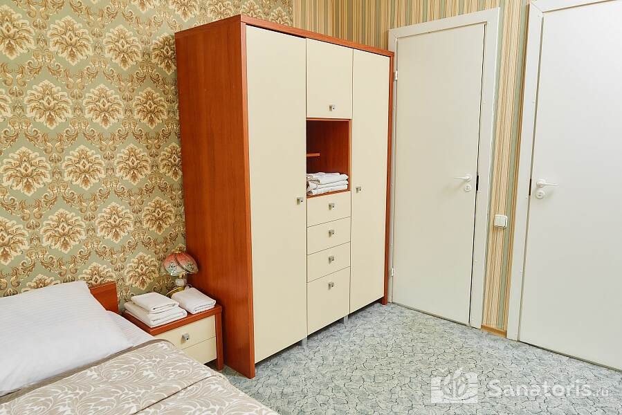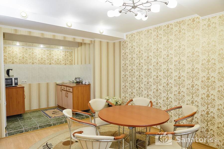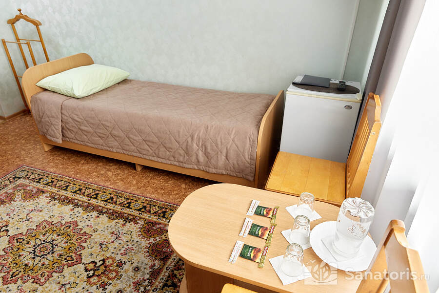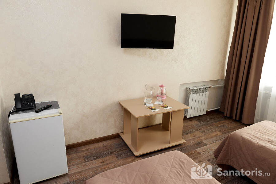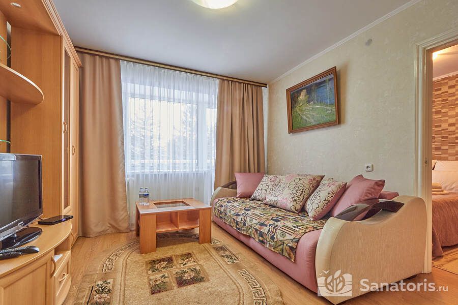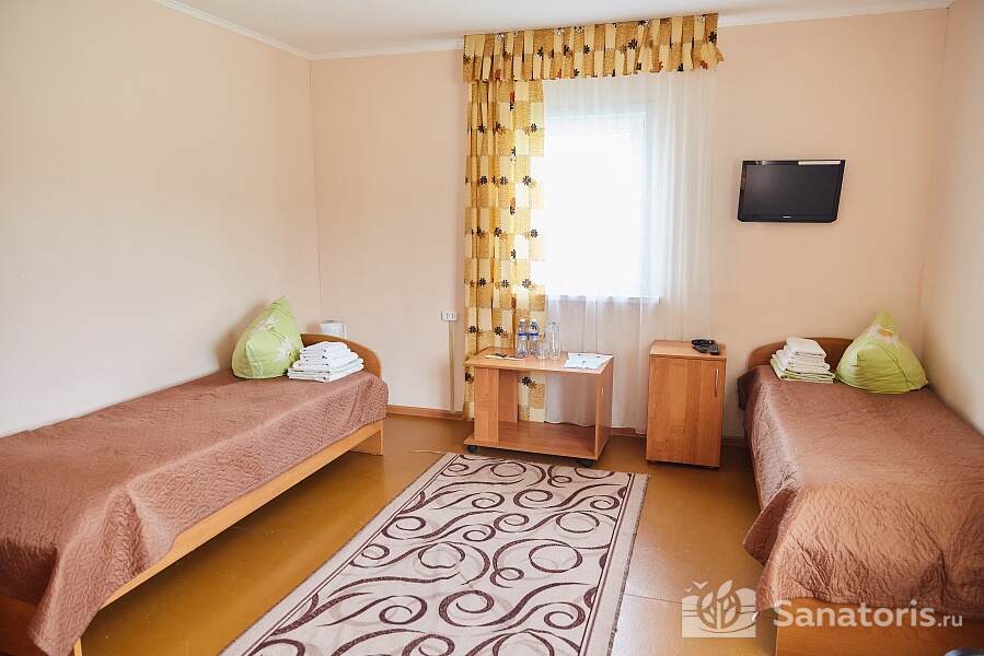 Одновременно в санатории может проживать 300 человек. Для этого имеются апартаменты разной вместительности и уровня комфорта. Есть простые номера класса «эконом», а так же апартаменты класса «люкс» с собственной кухней. В номерах имеется санузел, ванная комната, плазменный телевизор, холодильник и кондиционер.