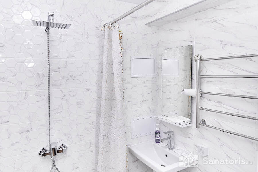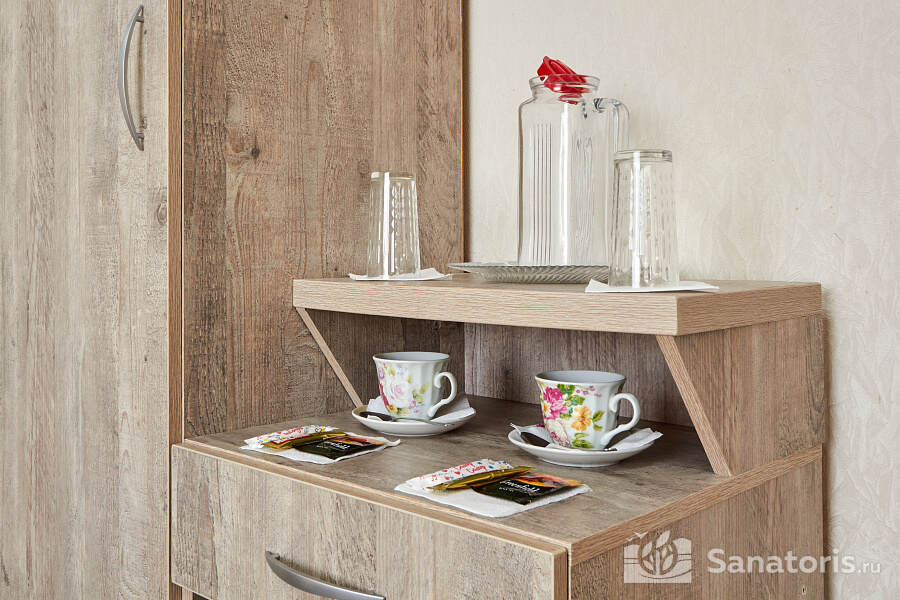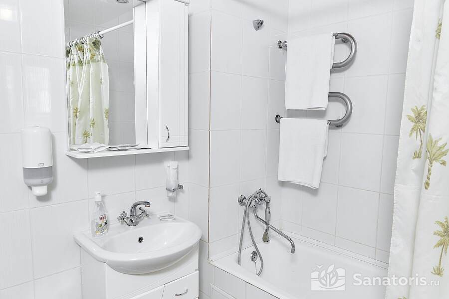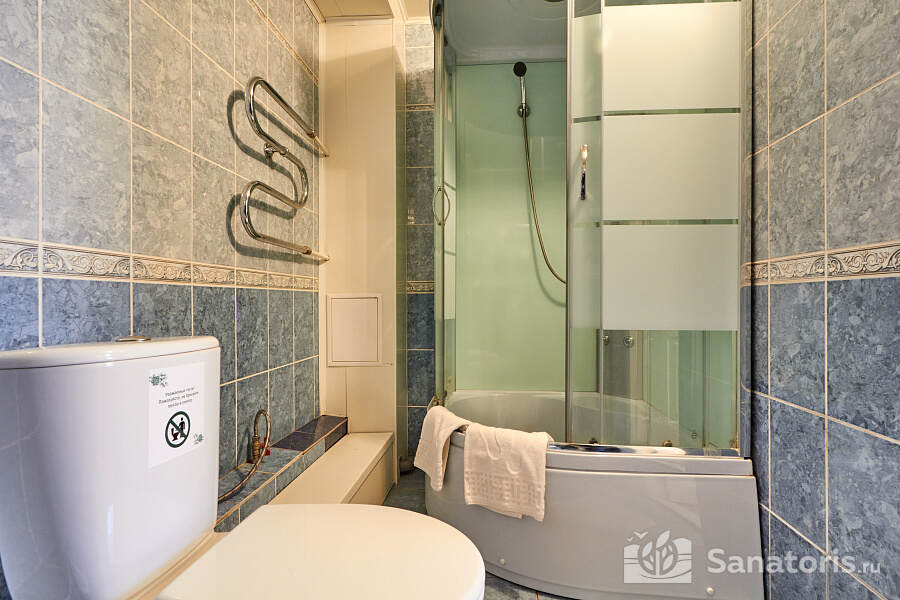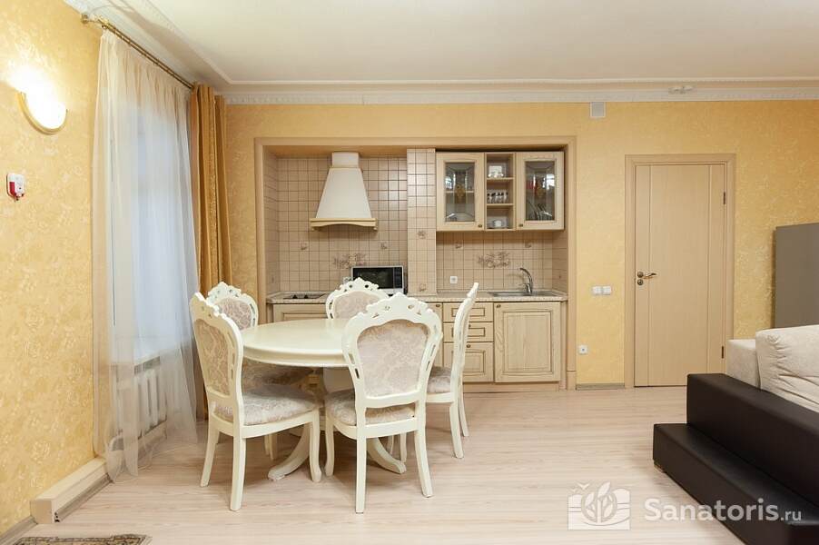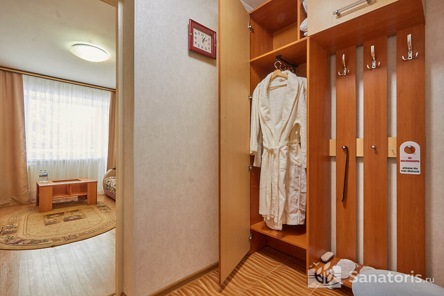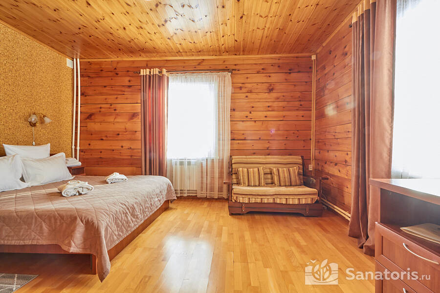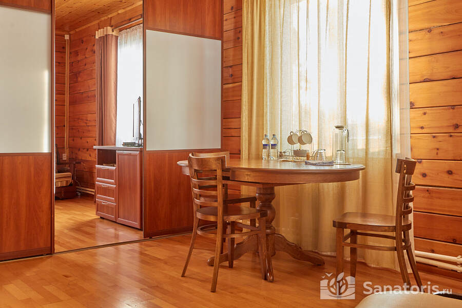 Одновременно в санатории может проживать 300 человек. Для этого имеются апартаменты разной вместительности и уровня комфорта. Есть простые номера класса «эконом», а так же апартаменты класса «люкс» с собственной кухней. В номерах имеется санузел, ванная комната, плазменный телевизор, холодильник и кондиционер.