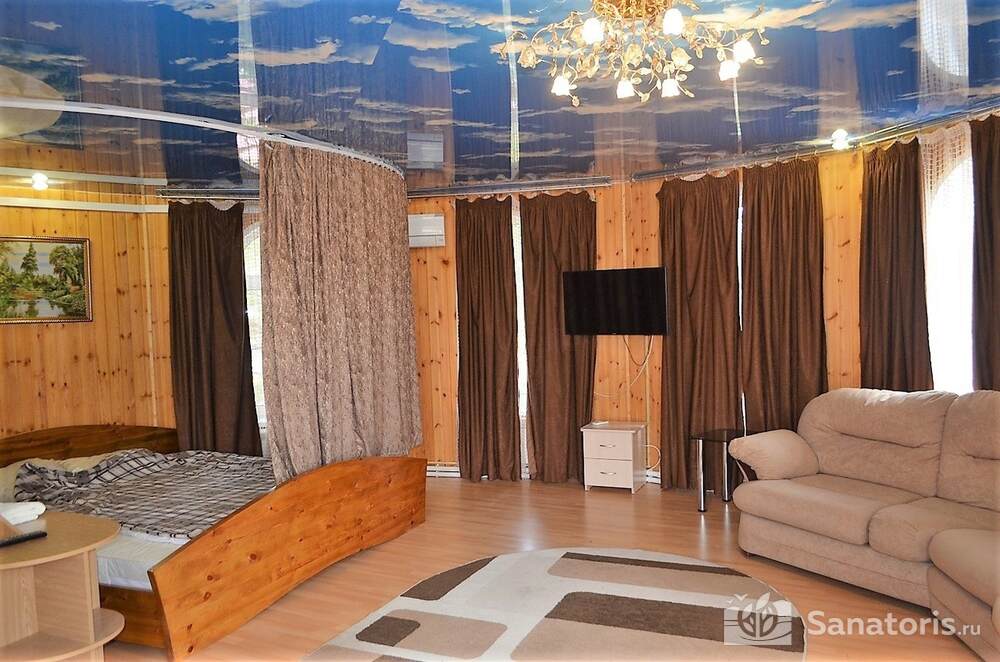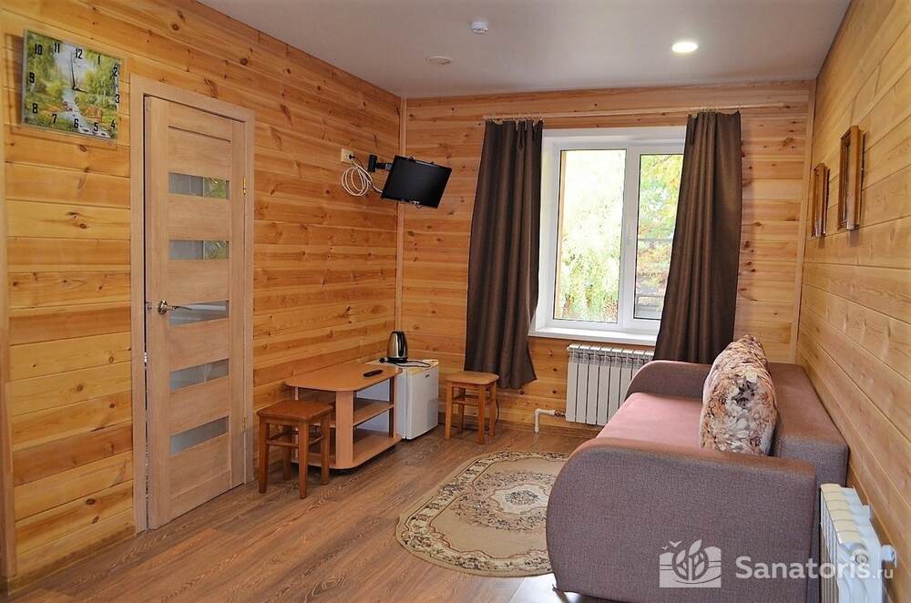 Гости комплекса проживают в современных коттеджах. В каждом из них предусмотрено несколько номеров. Есть возможность арендовать дом целиком. Есть одноместные, двухместные, трехместные и четырехместные номера со всеми удобствами.
