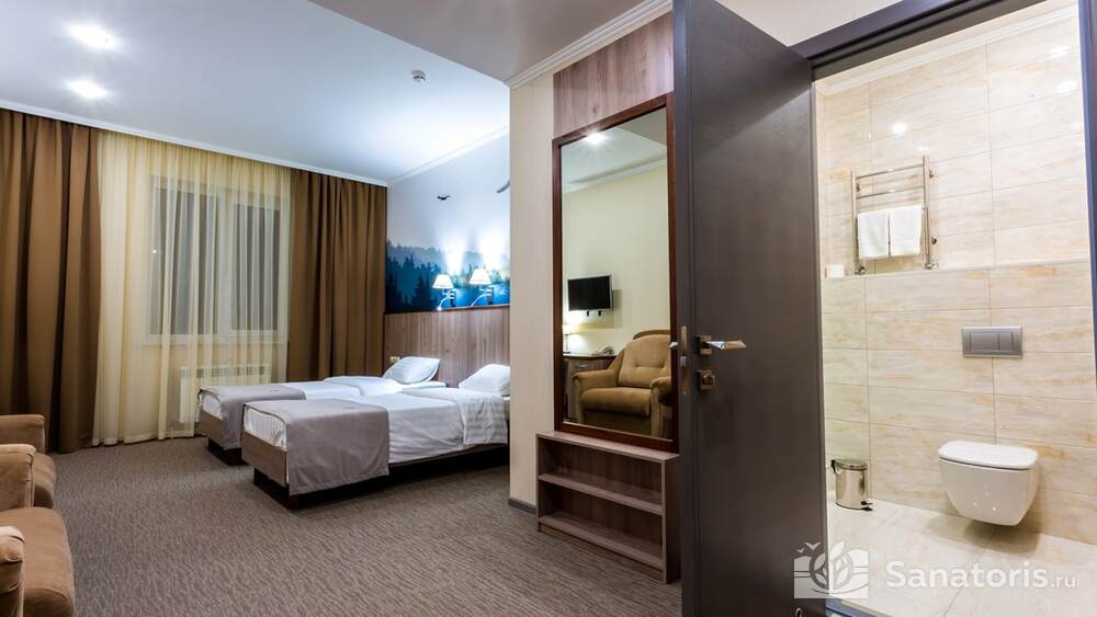 Номера для гостей, лечебное отделение на 3 этаже, ресторан на 1-м. |