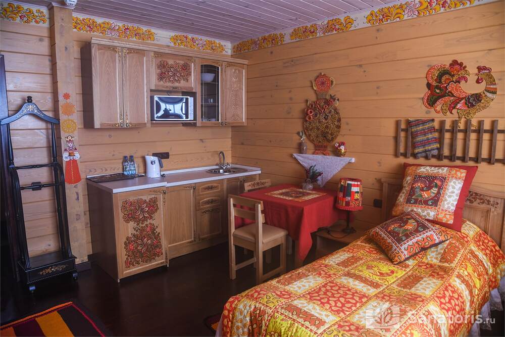 Гости комплекса проживают в домах из натурального дерева. Жилые одноэтажные строения выполнены в национальном стиле. Для проживания гостей предусмотрено 14 комфортабельных апартаментов. В каждом номере есть кухонная зона, современная мебель, плазменный телевизор, кондиционер, электрочайник, фен. Ортопедические матрасы на кроватях гарантируют гостям комфортный сон. Постояльцы могут насладиться чаем из местных трав и отдохнуть на природе.