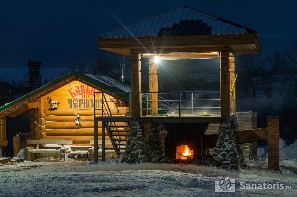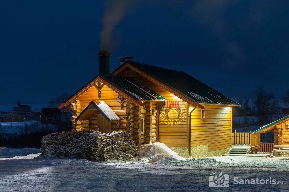 На территории оздоровительного комплекса есть банный комплекс. Для строительства бань использовали красноярскую сосну. Каждую печь было выложено столичными мастерами. В двух банях на потолках есть ручная роспись. Для отдыха предусмотрены большие комфортные комнаты. В одной из бань есть купель, где гости могут окунуться в холодную воду.