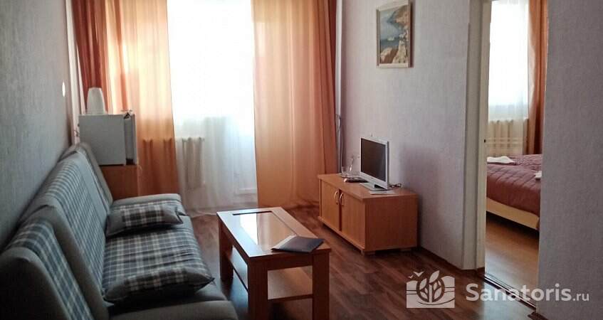 Отдыхающих размещают в уютных номерах со стандартным набором удобств. В жилых комнатах установлена современная мебель и необходимая бытовая техника. Вечером можно поучаствовать в развлекательных программах.