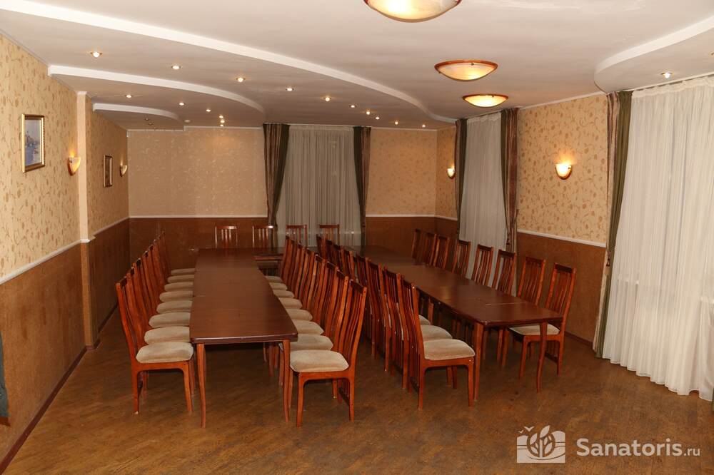 В здравнице есть просторный конференц-зал с инновационной аппаратурой, переговорная комната, изысканный ресторан, кафе. Можно арендовать спортивное снаряжение для активного досуга.