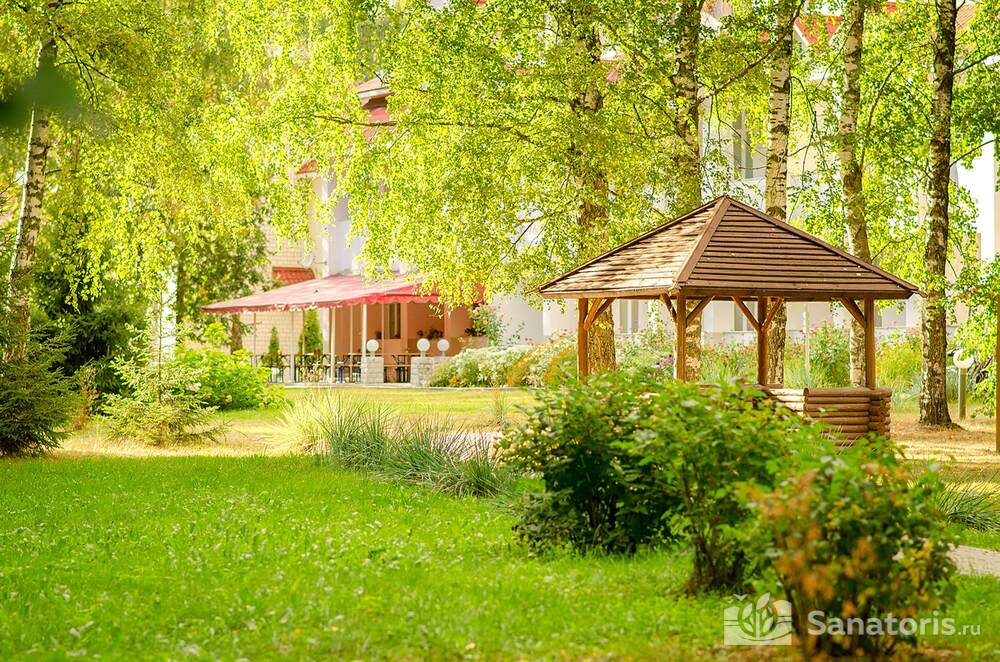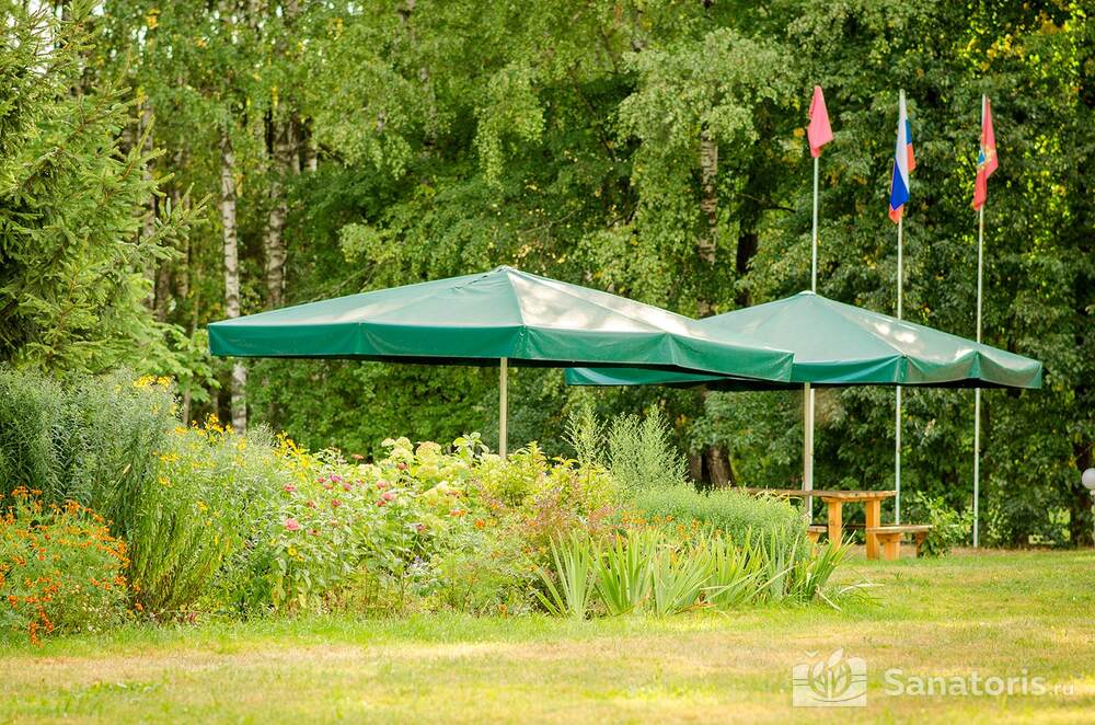 Общая территория туристического комплекса составляет 15 гектар. Санаторий огорожен и находится под круглосуточной охраной. Гости базы смогут насладиться кристально чистым воздухом, величественным лесом и живописными озерами. На территории комплекса произрастают декоративные деревья, кустарники и множество цветов. Во всем чувствуется гармония и максимальный комфорт.