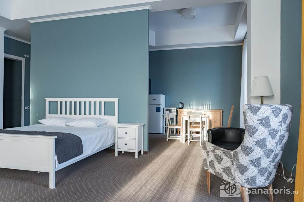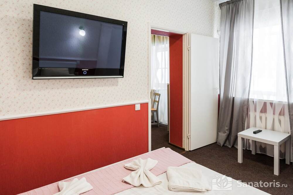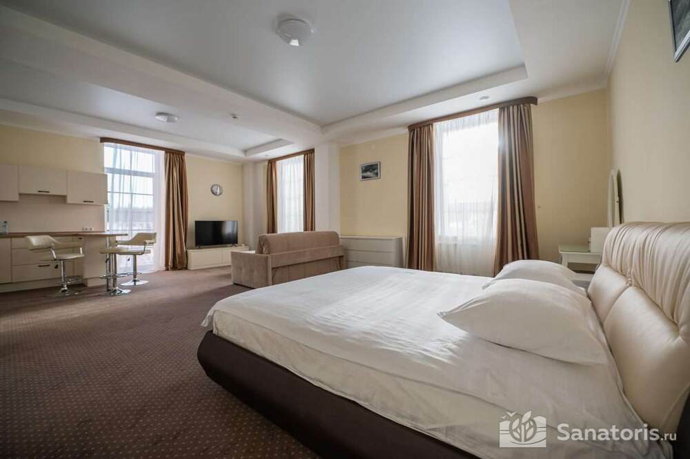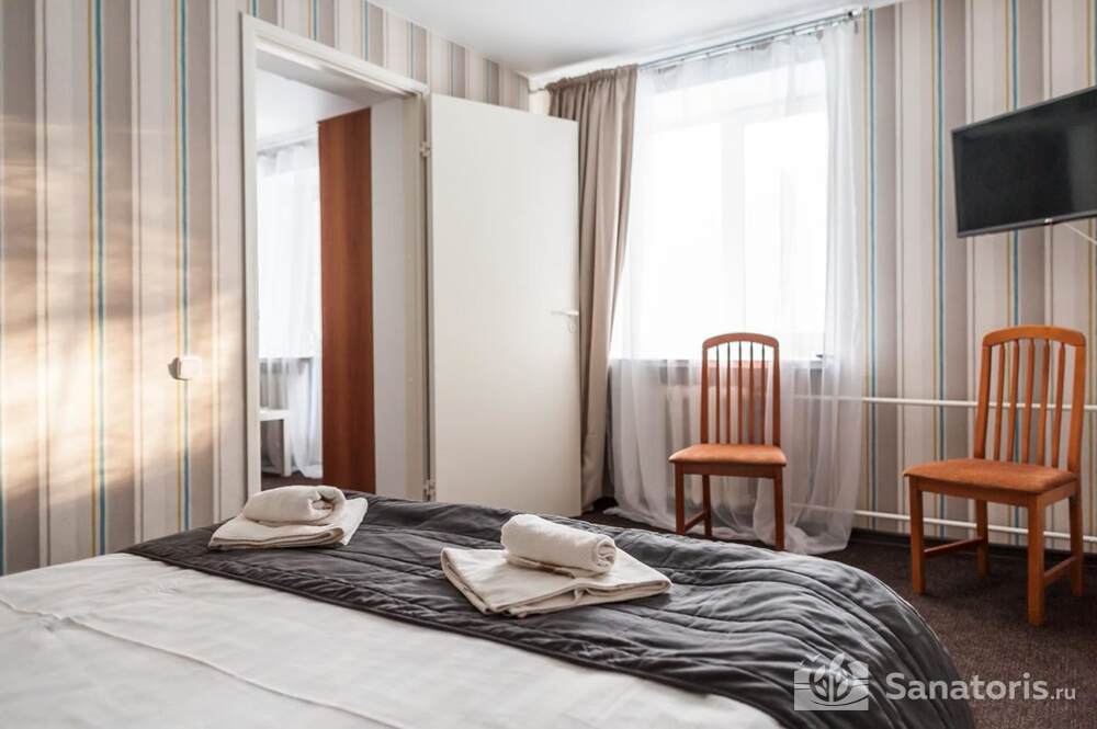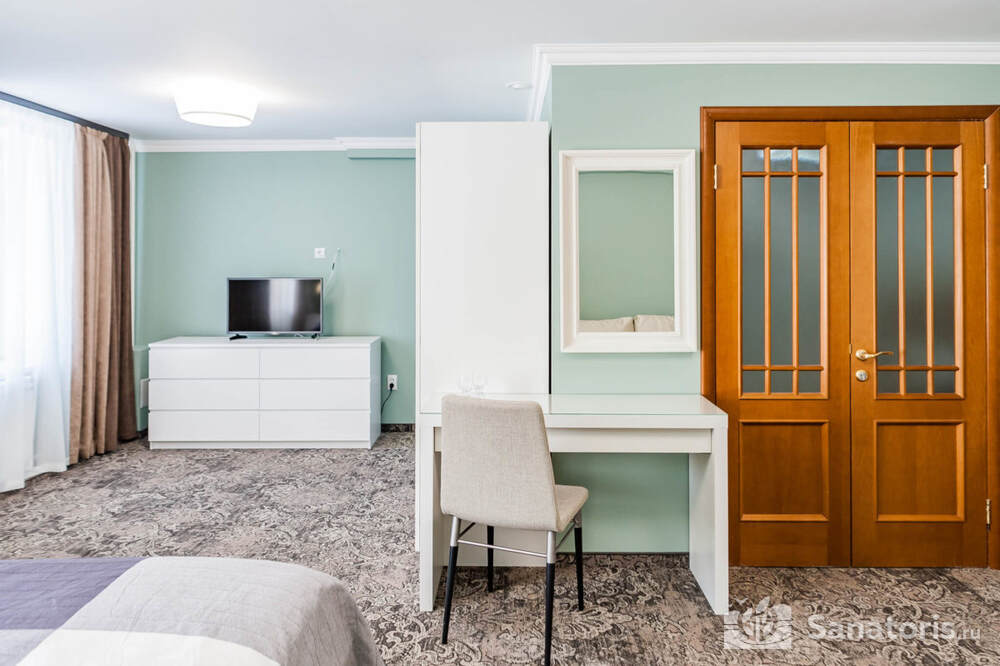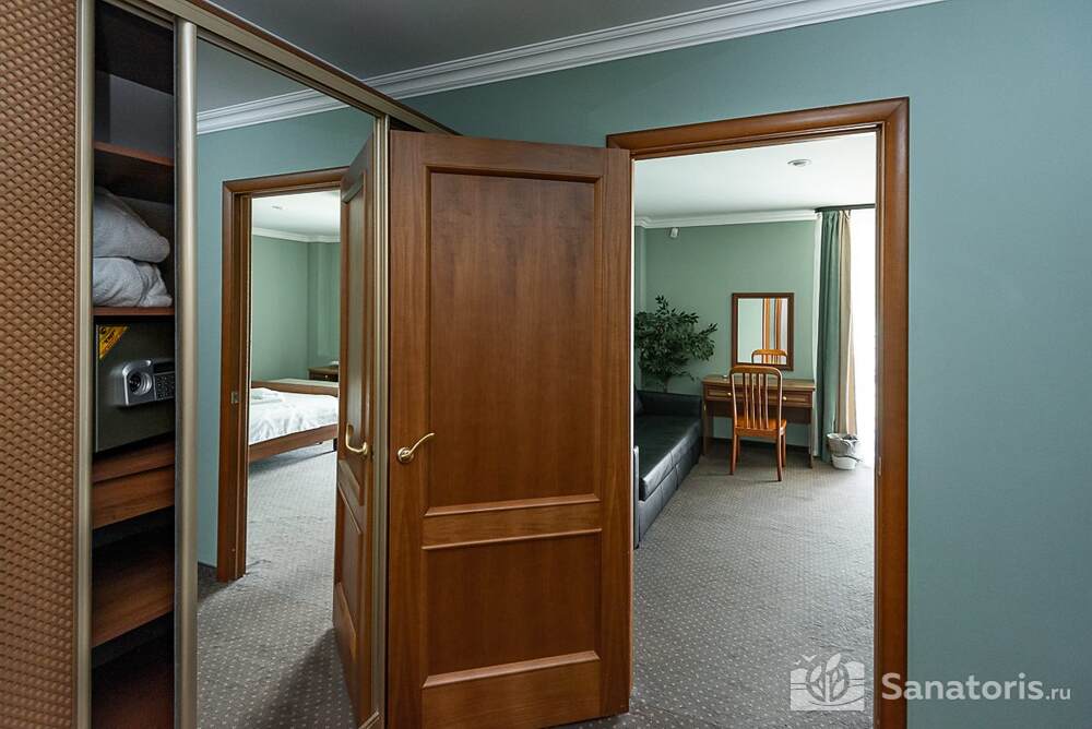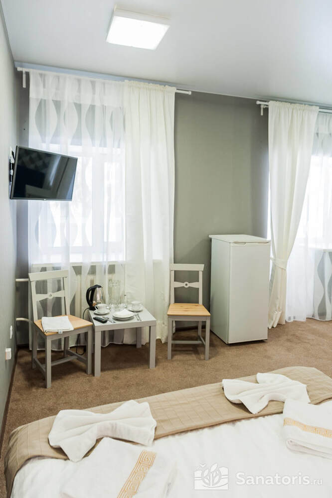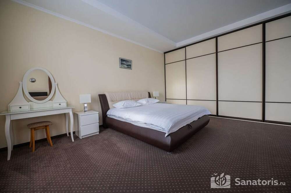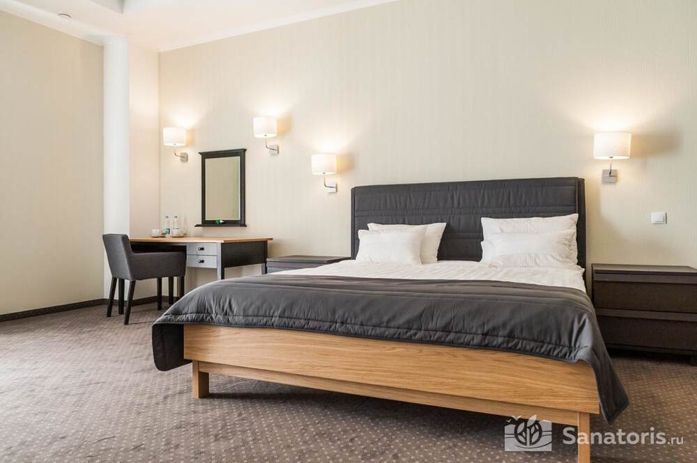 Санаторий предлагает номера разного уровня комфорта и вместительности. Здесь есть номера класса «эконом», а так же «супер-люкс» с собственной кухонной зоной и столовой. Апартаменты оснащены в зависимости от своего класса.