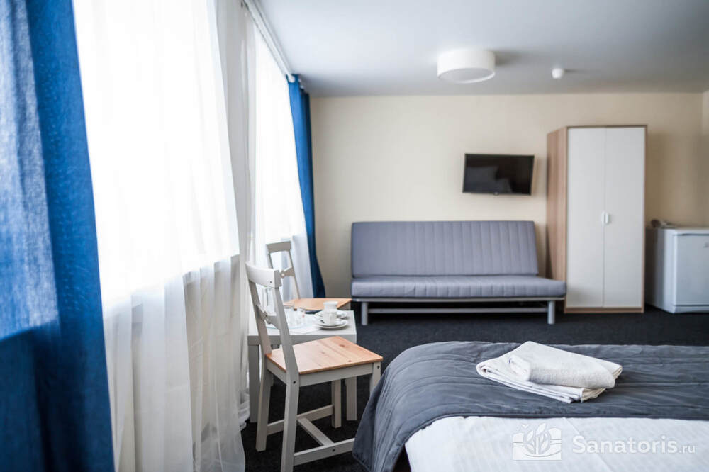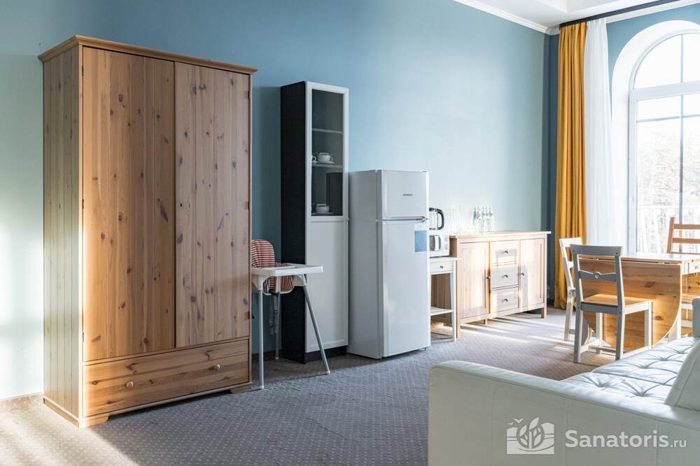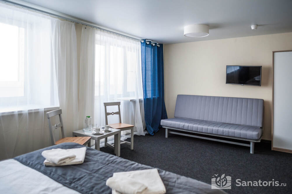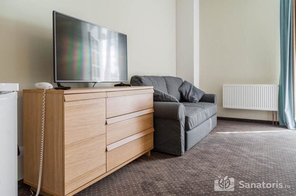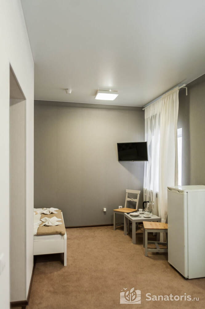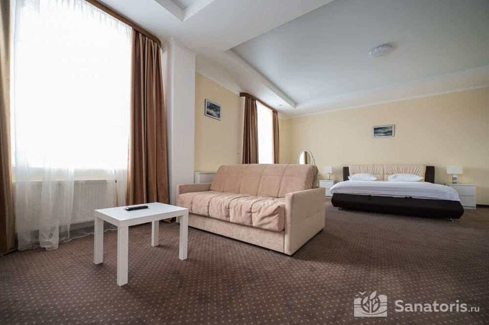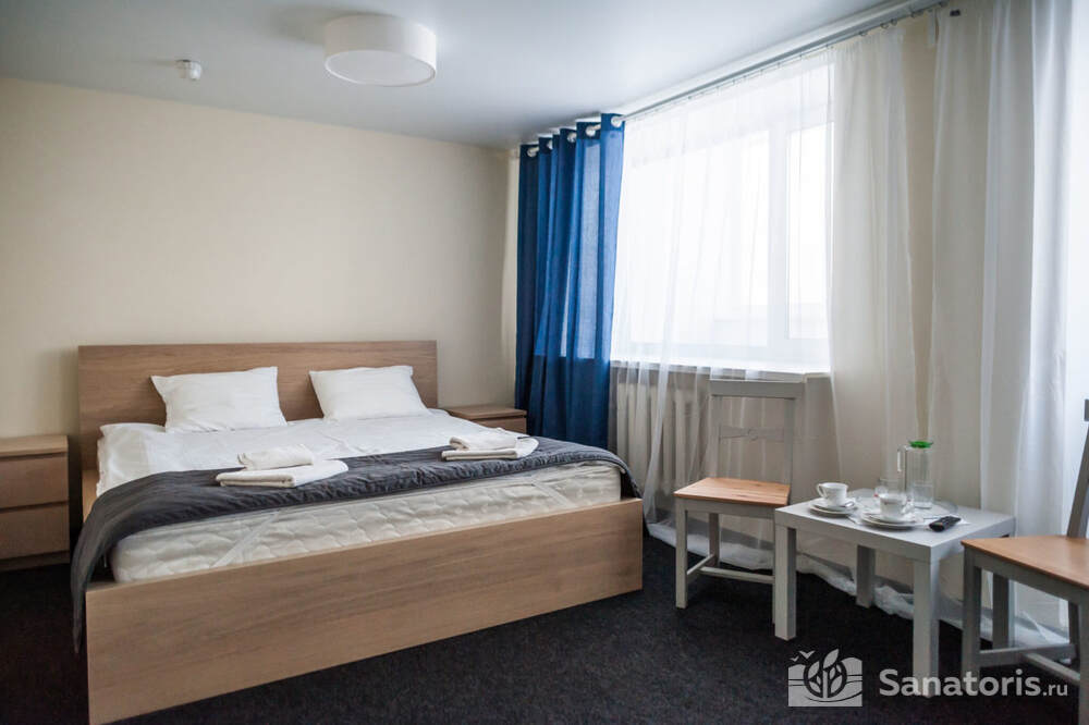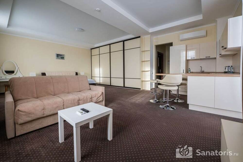 Санаторий предлагает номера разного уровня комфорта и вместительности. Здесь есть номера класса «эконом», а так же «супер-люкс» с собственной кухонной зоной и столовой. Апартаменты оснащены в зависимости от своего класса.
