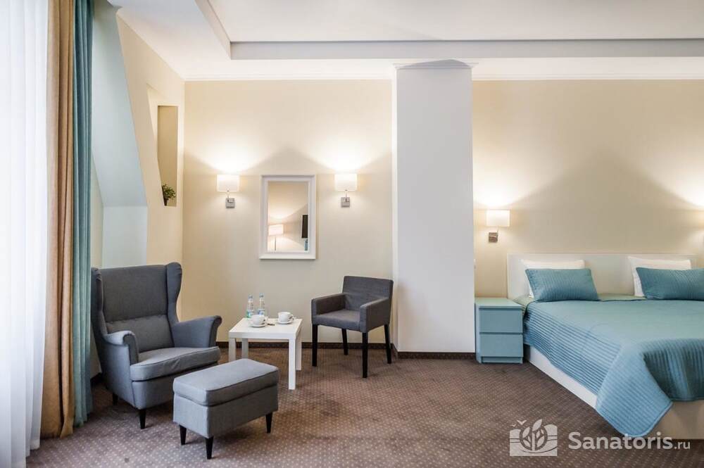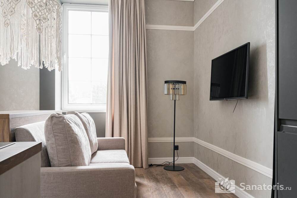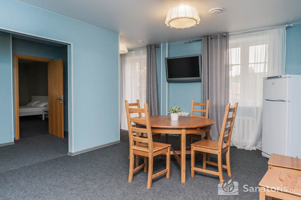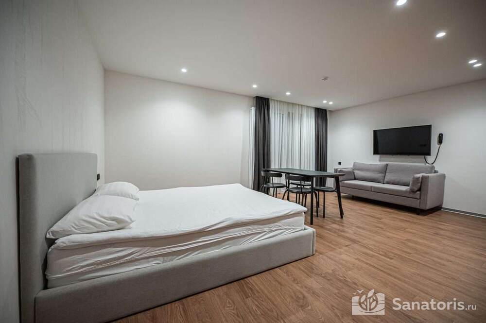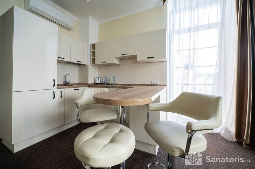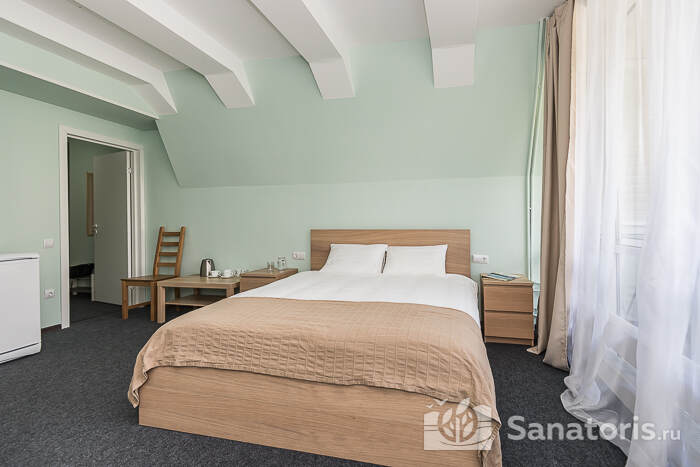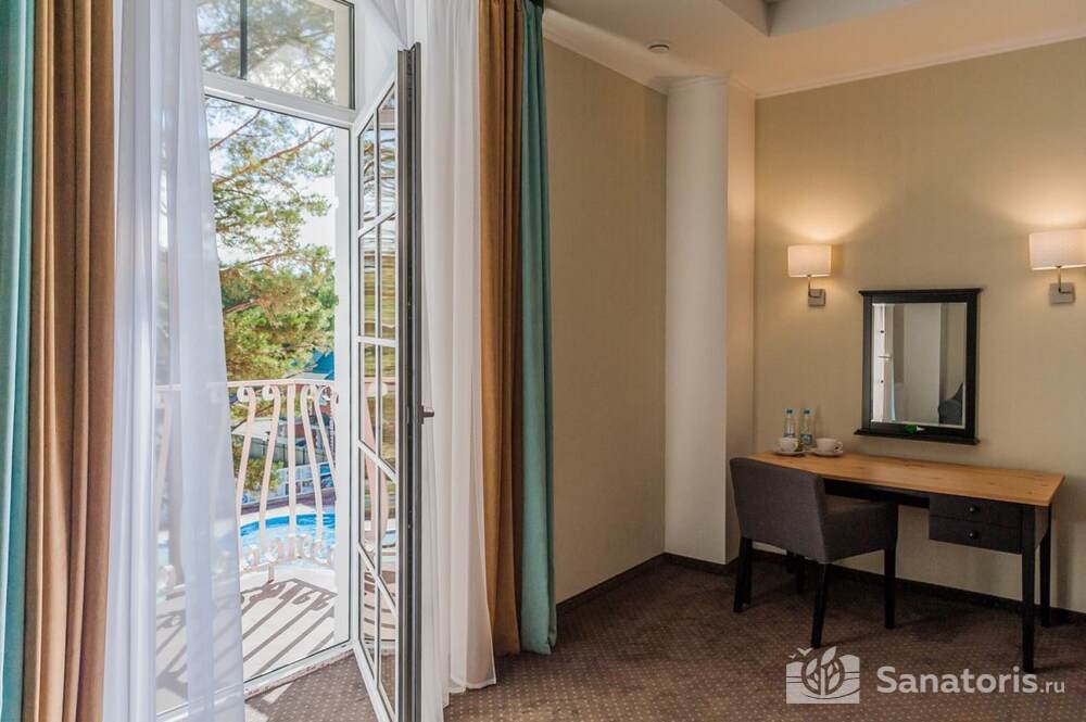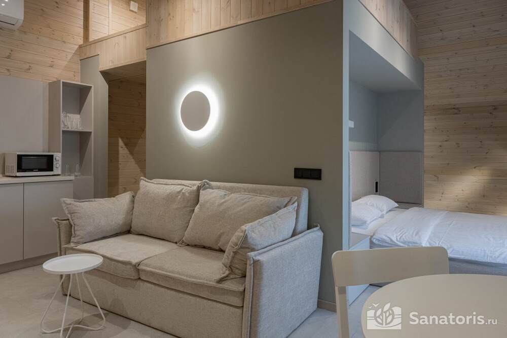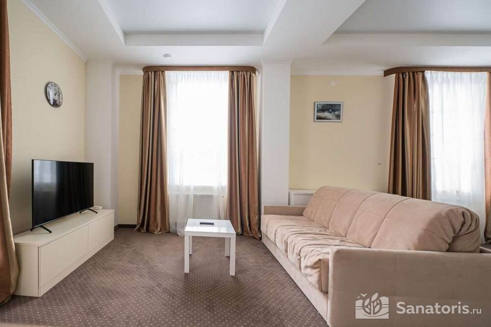 Санаторий предлагает номера разного уровня комфорта и вместительности. Здесь есть номера класса «эконом», а так же «супер-люкс» с собственной кухонной зоной и столовой. Апартаменты оснащены в зависимости от своего класса.