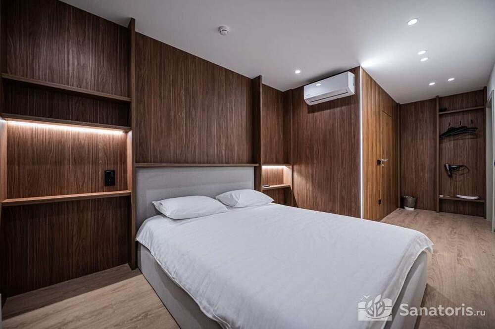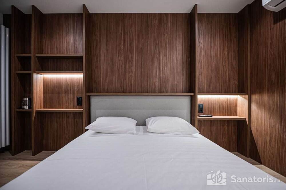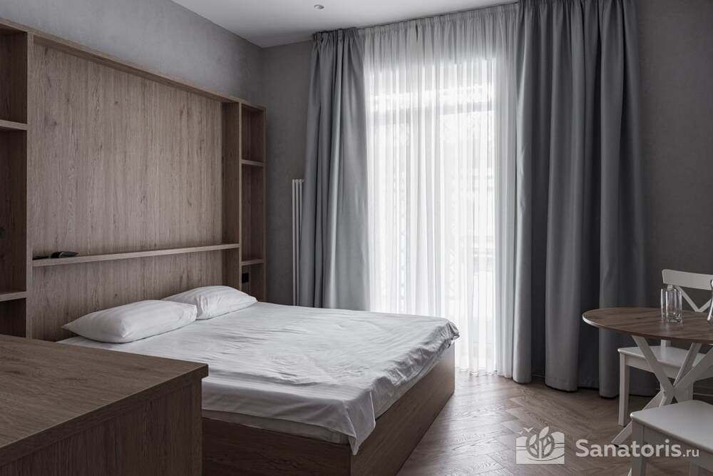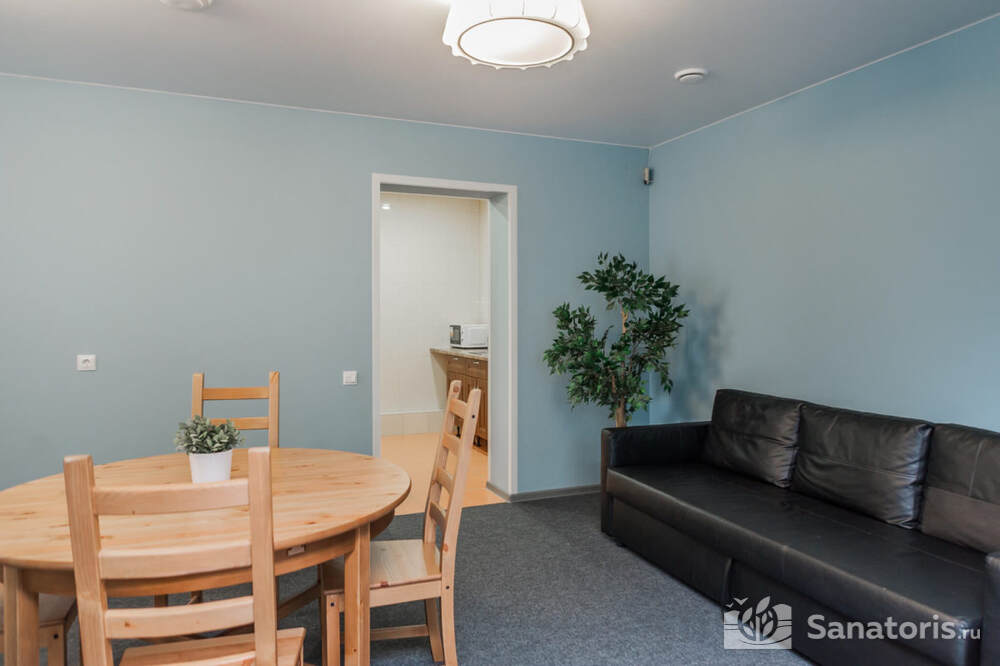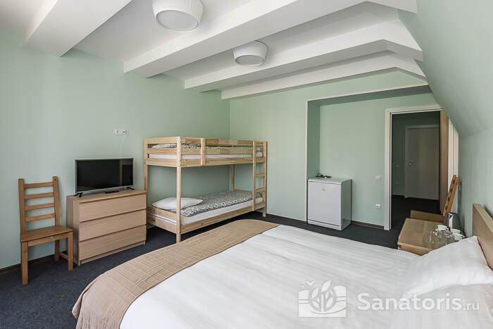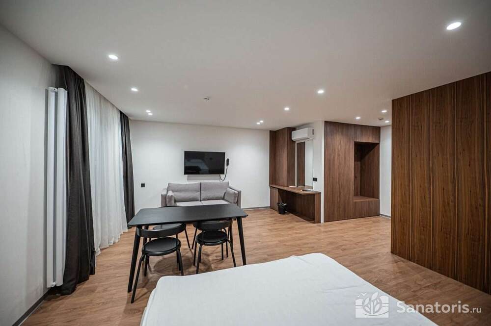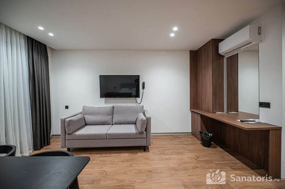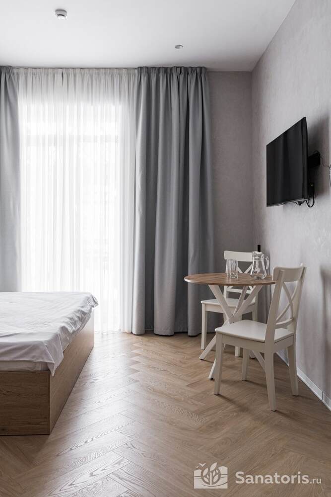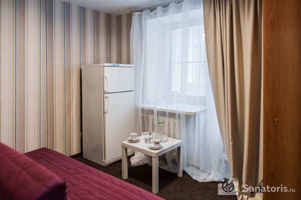 Санаторий предлагает номера разного уровня комфорта и вместительности. Здесь есть номера класса «эконом», а так же «супер-люкс» с собственной кухонной зоной и столовой. Апартаменты оснащены в зависимости от своего класса.