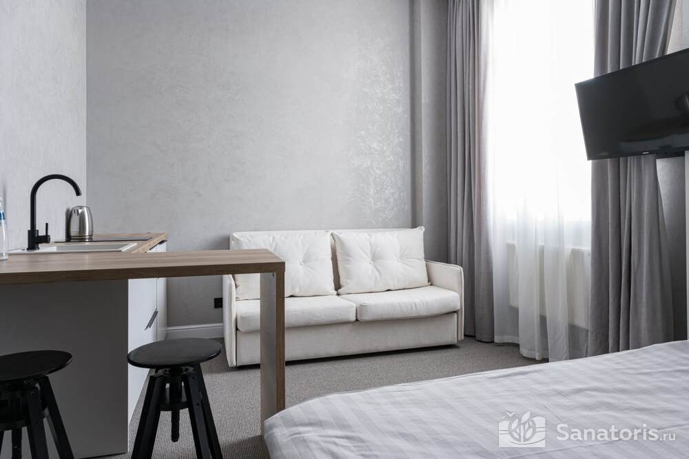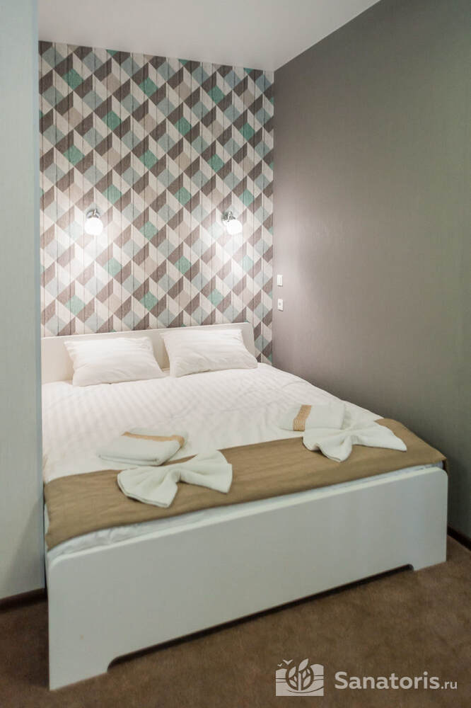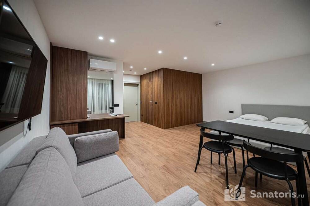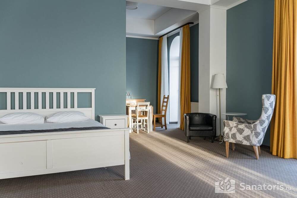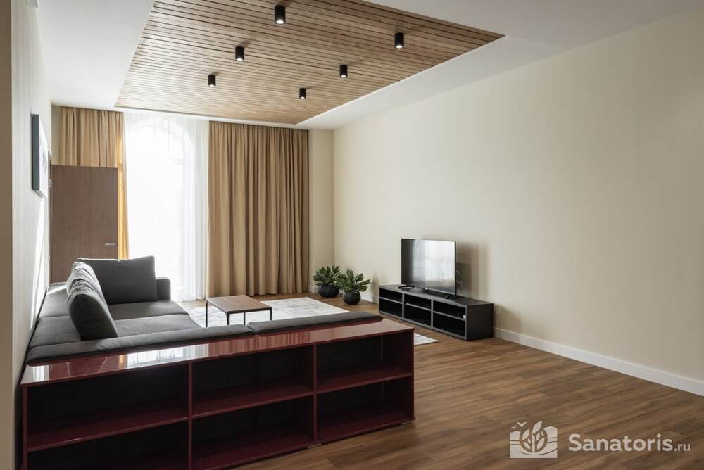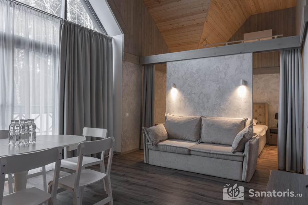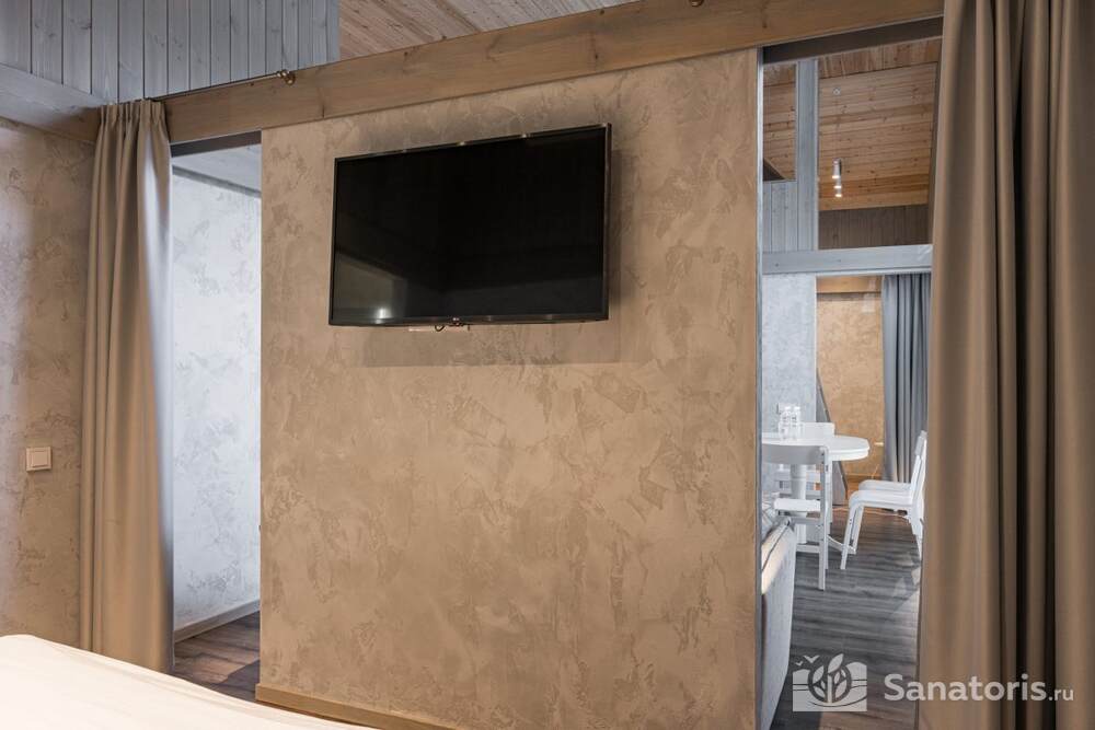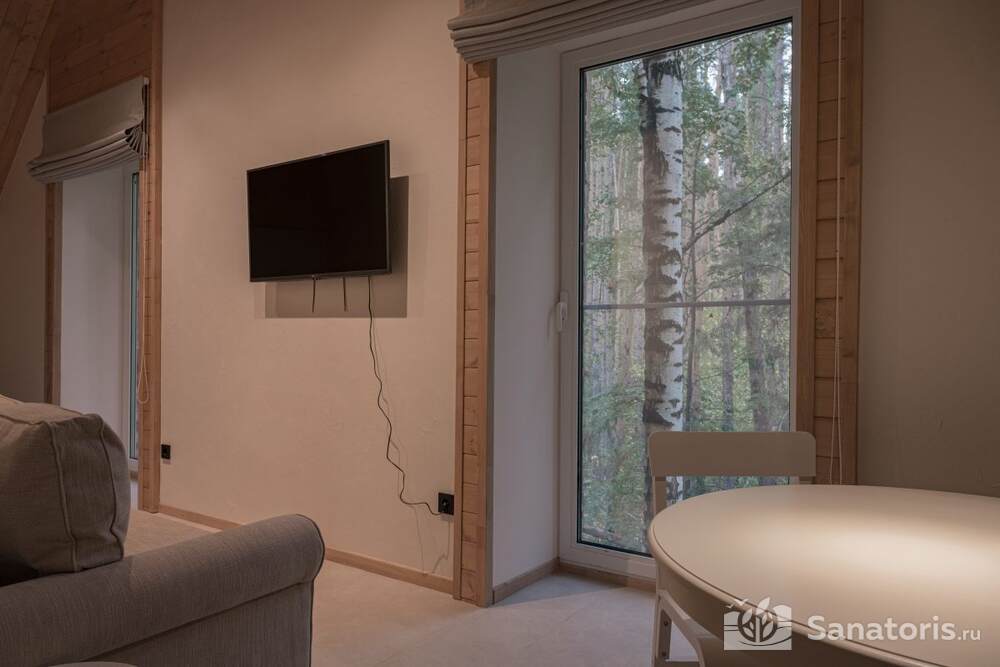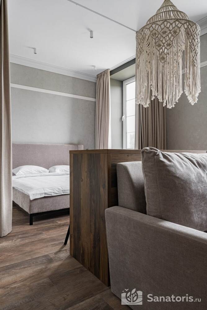 Санаторий предлагает номера разного уровня комфорта и вместительности. Здесь есть номера класса «эконом», а так же «супер-люкс» с собственной кухонной зоной и столовой. Апартаменты оснащены в зависимости от своего класса.