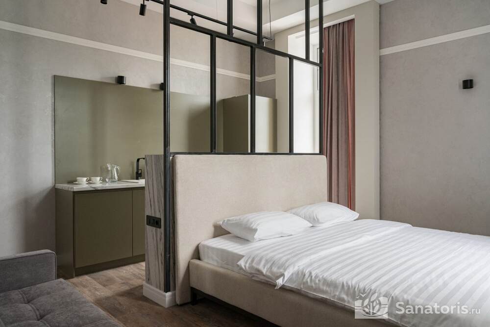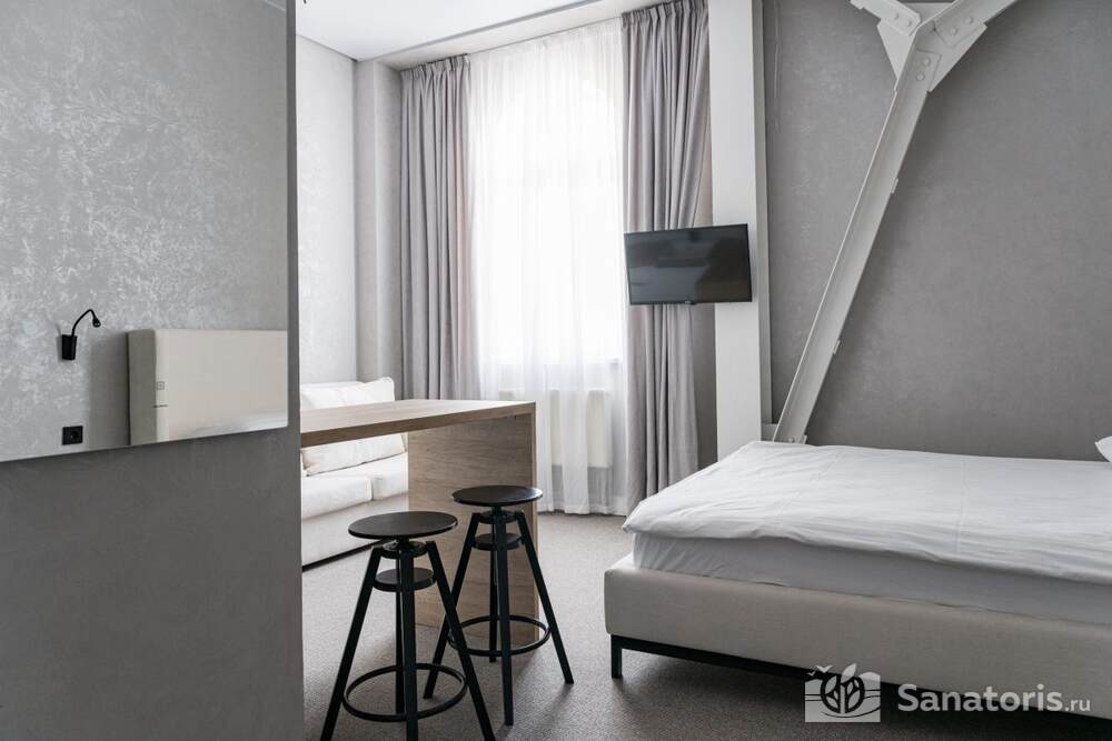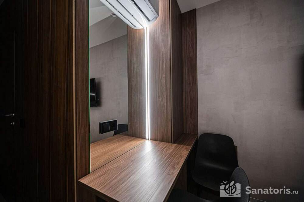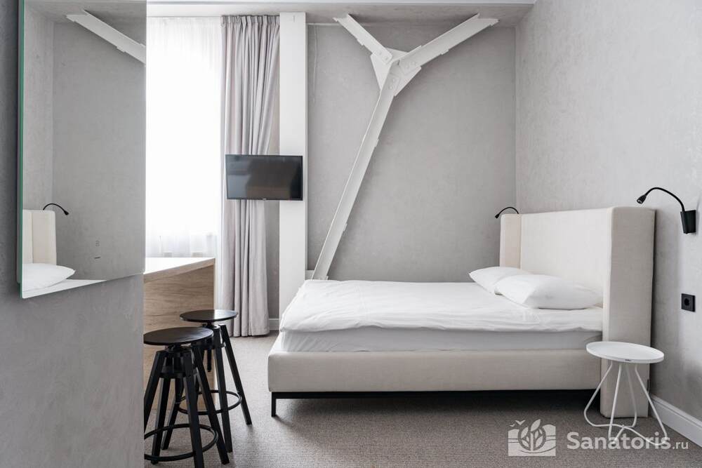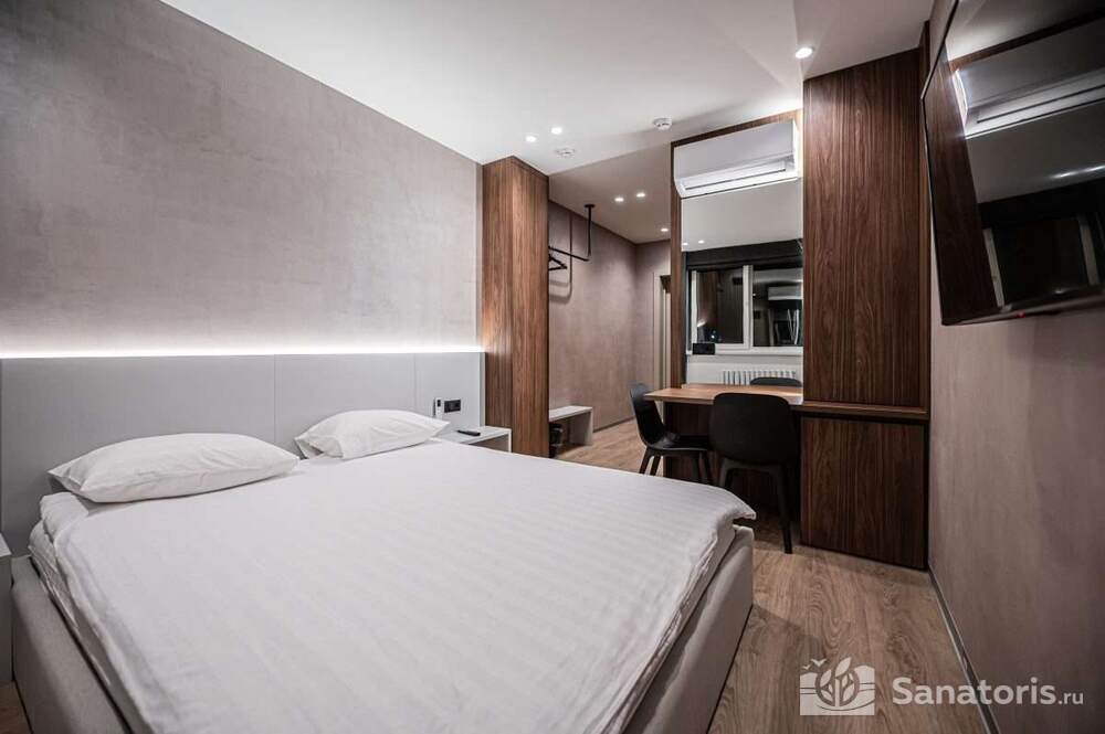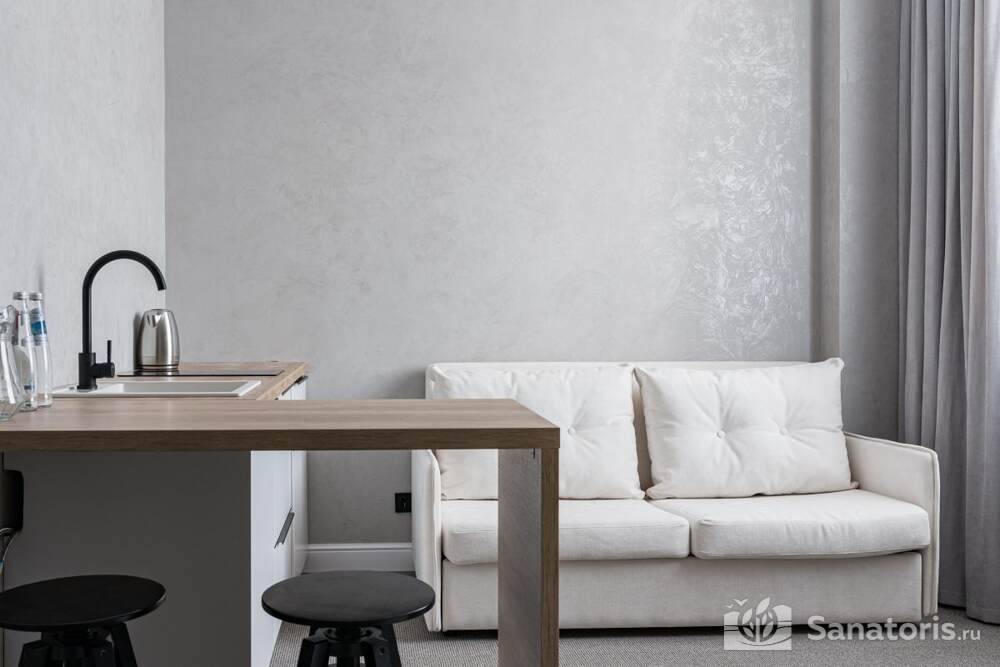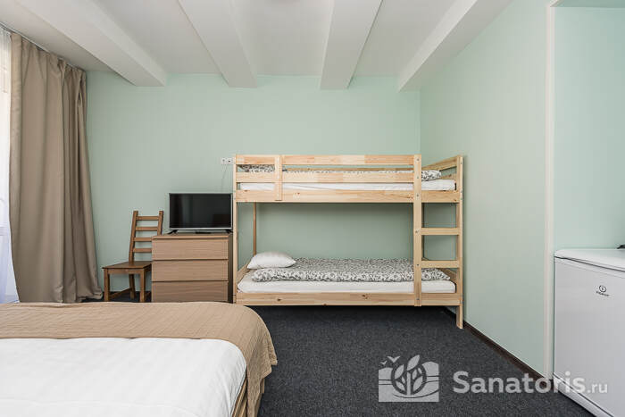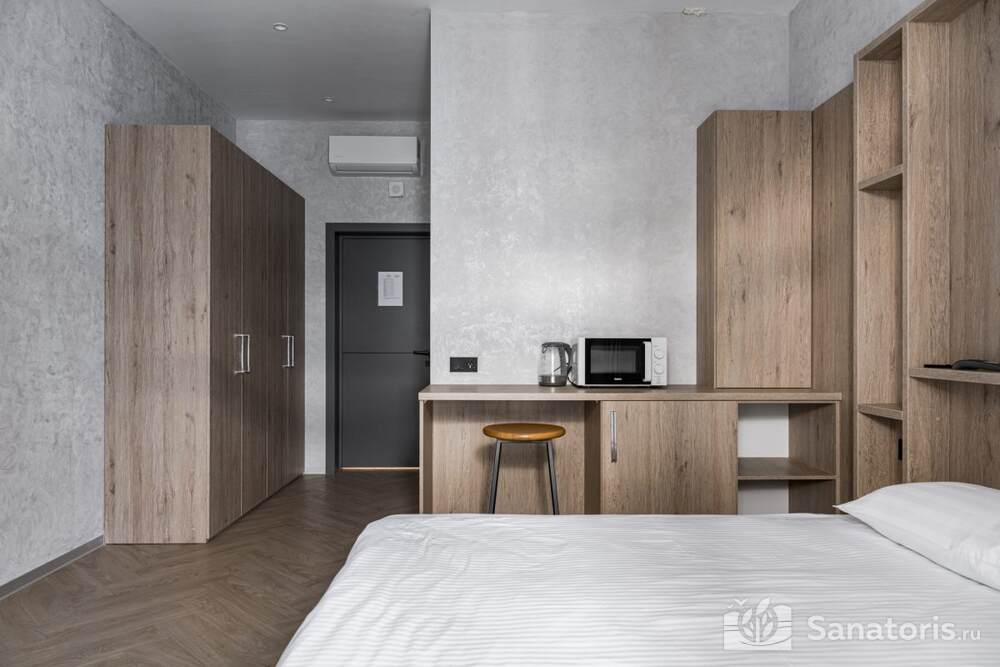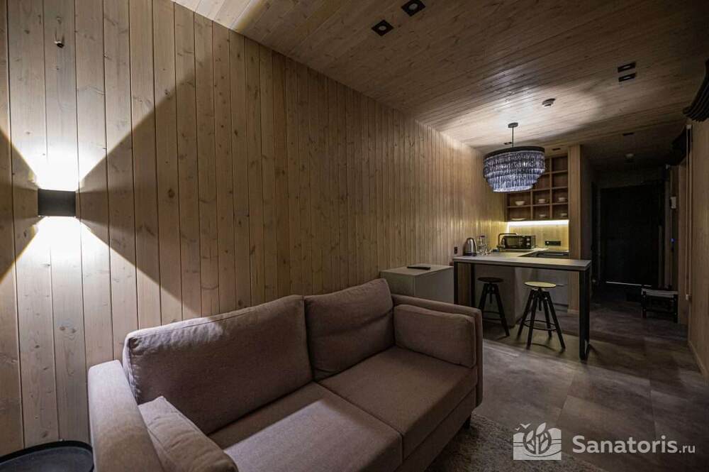 Санаторий предлагает номера разного уровня комфорта и вместительности. Здесь есть номера класса «эконом», а так же «супер-люкс» с собственной кухонной зоной и столовой. Апартаменты оснащены в зависимости от своего класса.