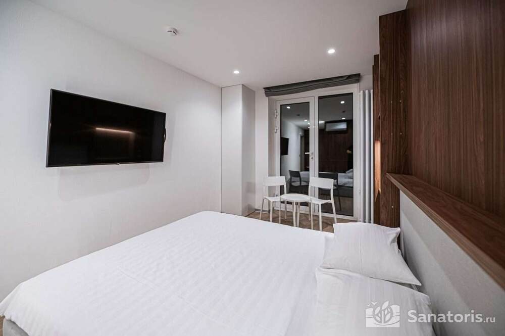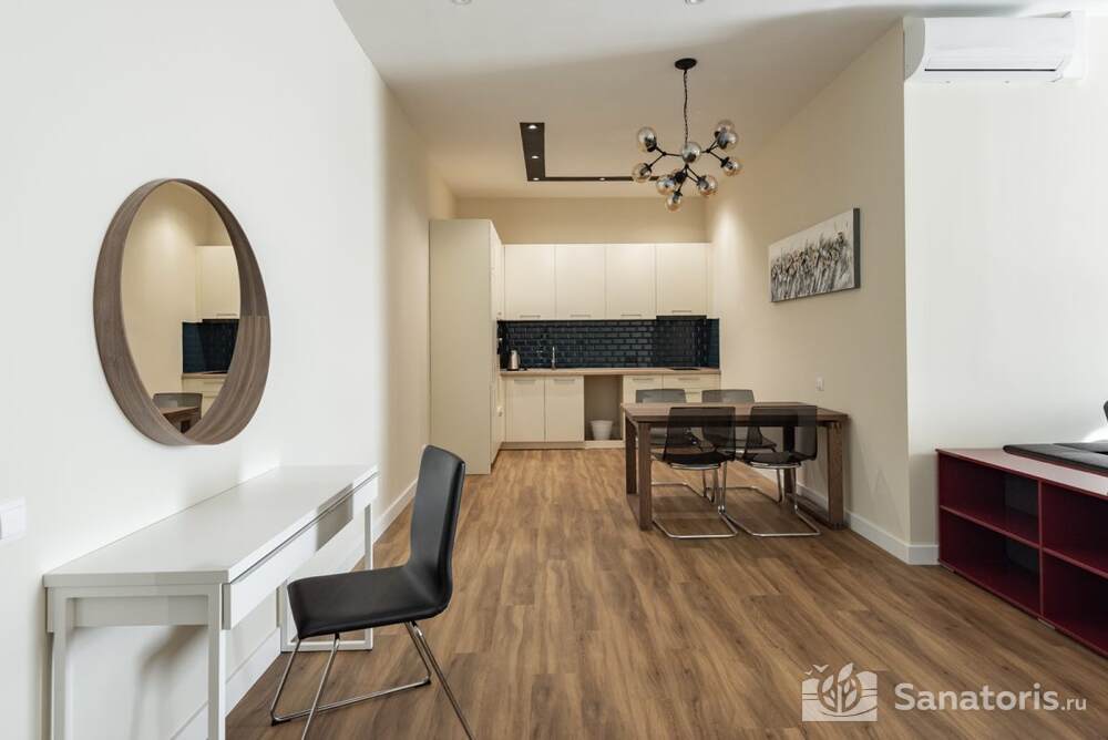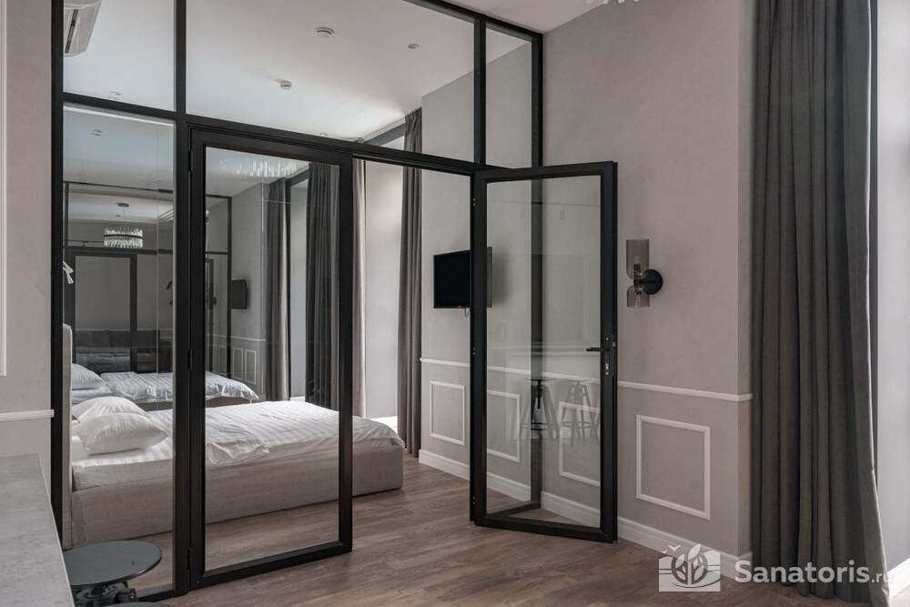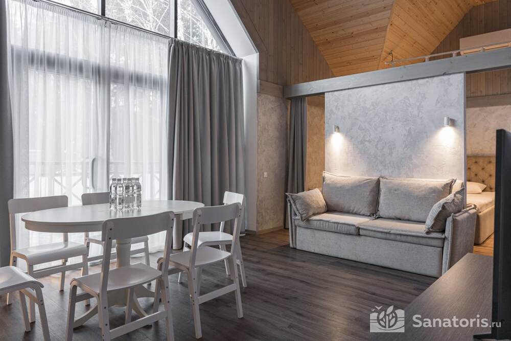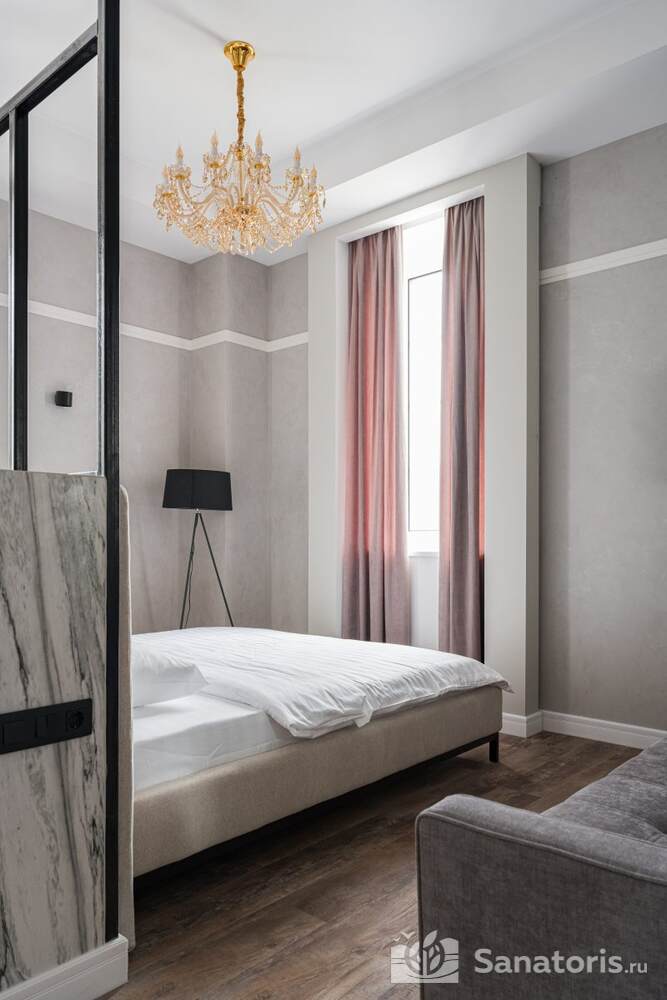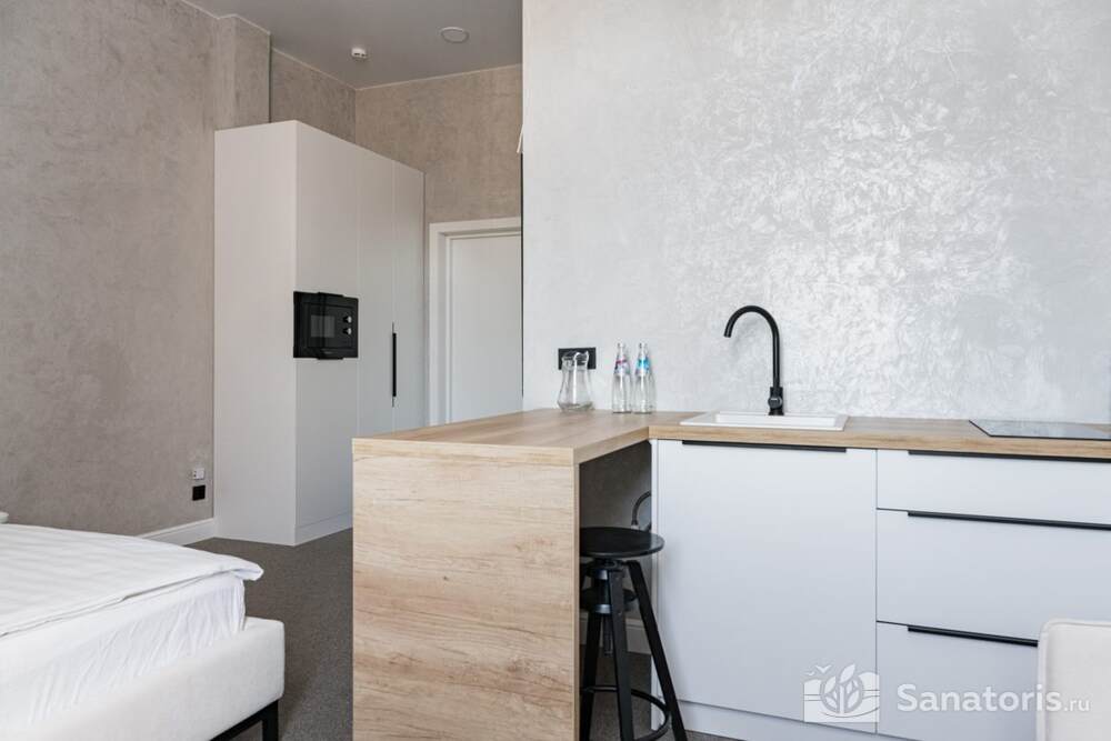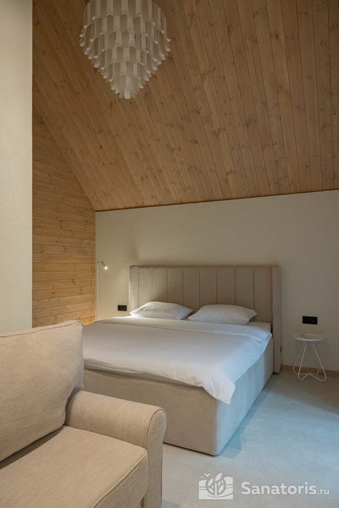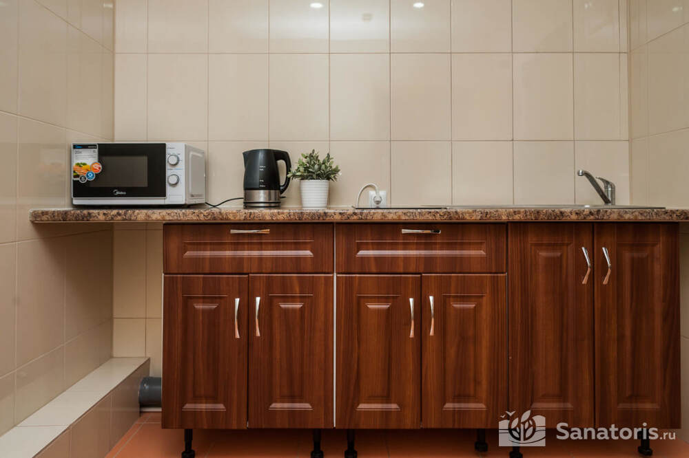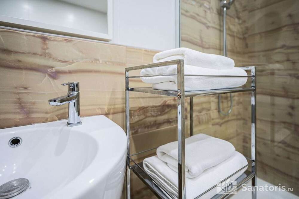 Санаторий предлагает номера разного уровня комфорта и вместительности. Здесь есть номера класса «эконом», а так же «супер-люкс» с собственной кухонной зоной и столовой. Апартаменты оснащены в зависимости от своего класса.