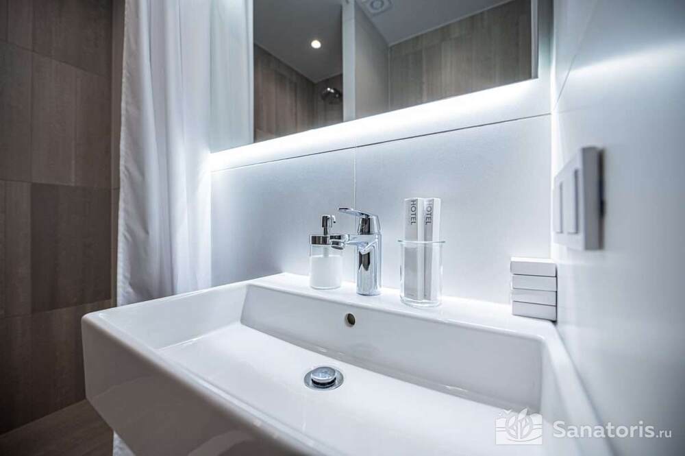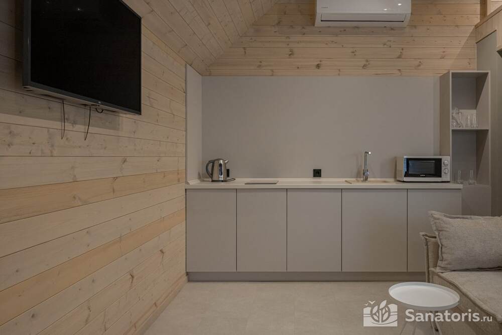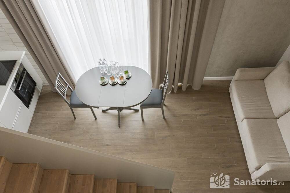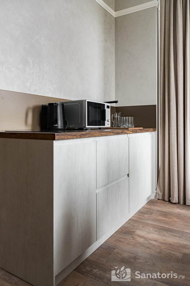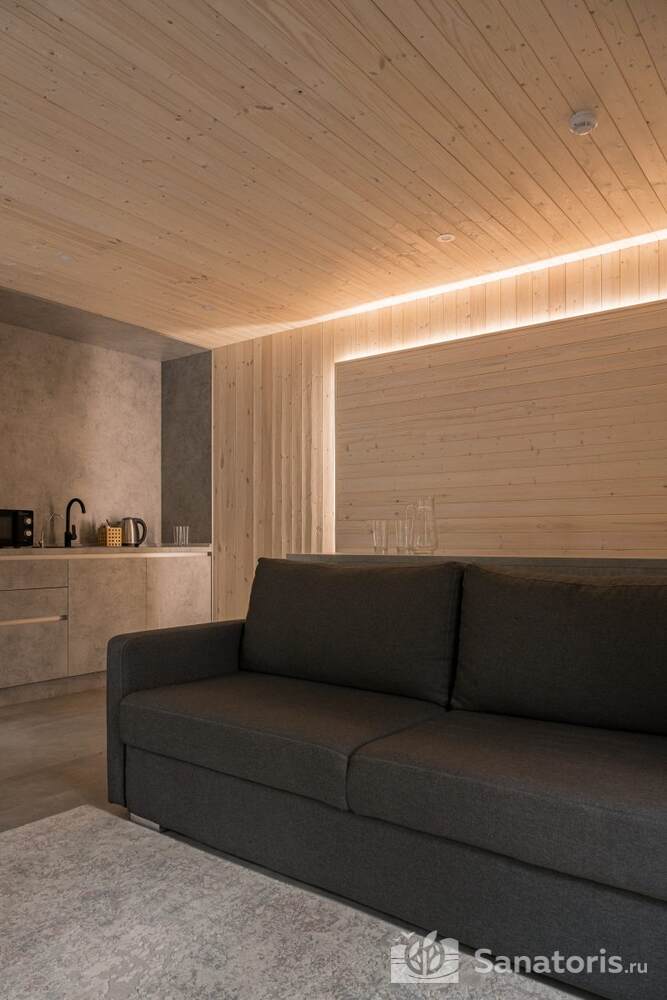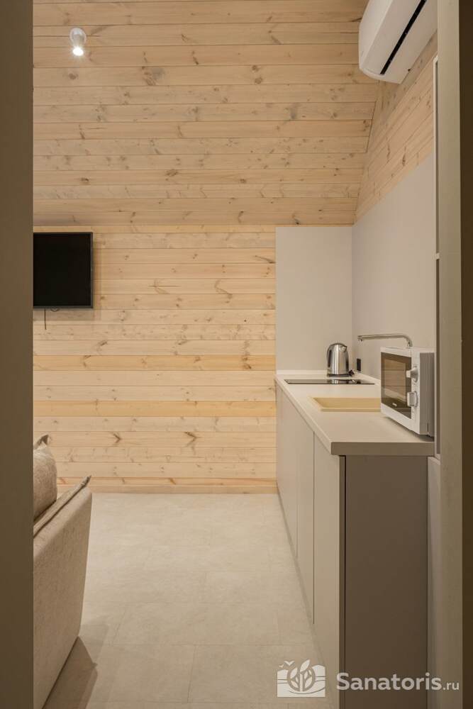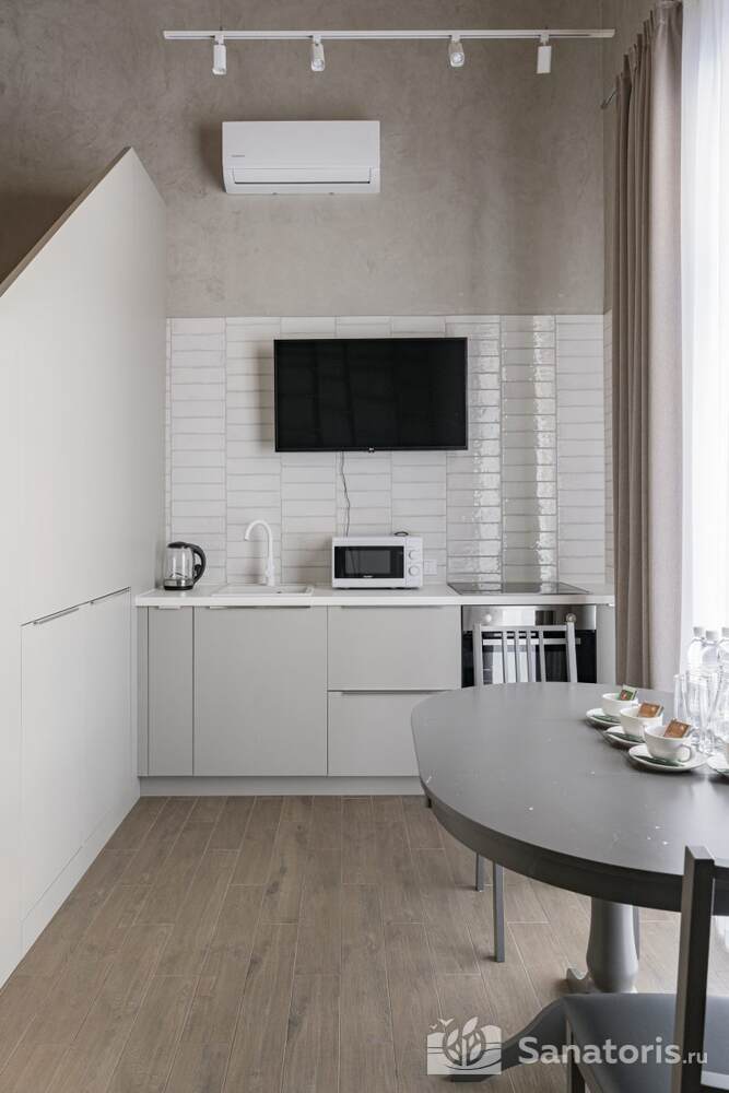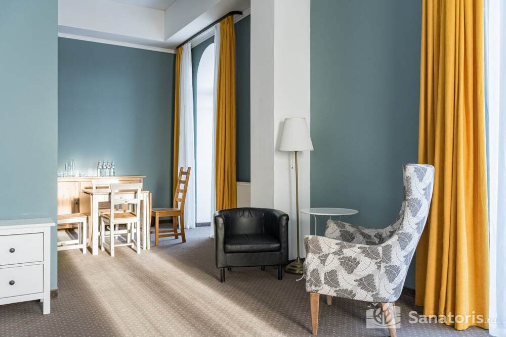 Санаторий предлагает номера разного уровня комфорта и вместительности. Здесь есть номера класса «эконом», а так же «супер-люкс» с собственной кухонной зоной и столовой. Апартаменты оснащены в зависимости от своего класса.