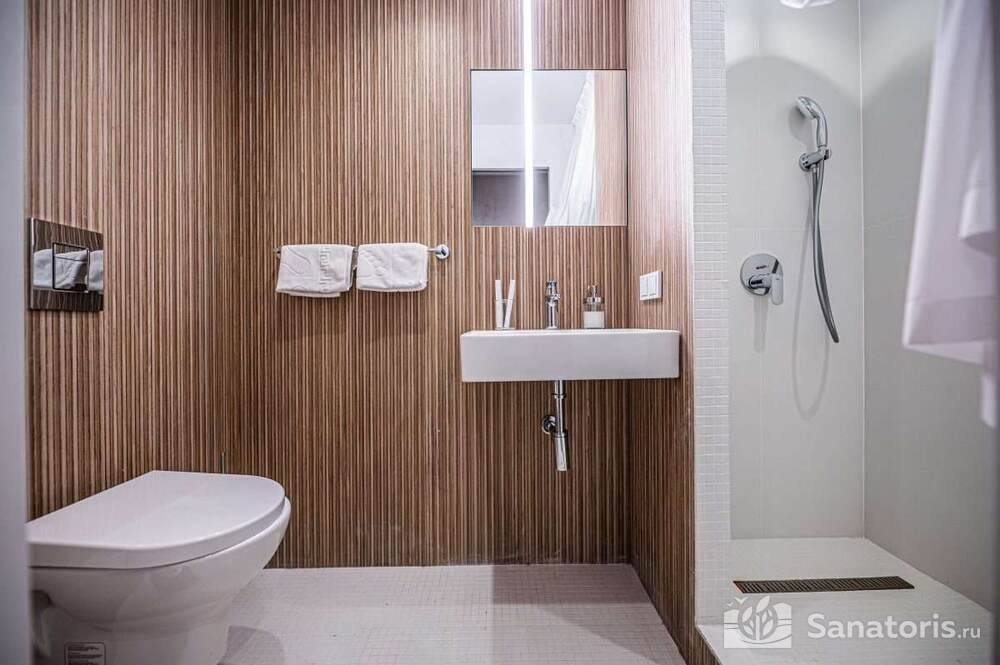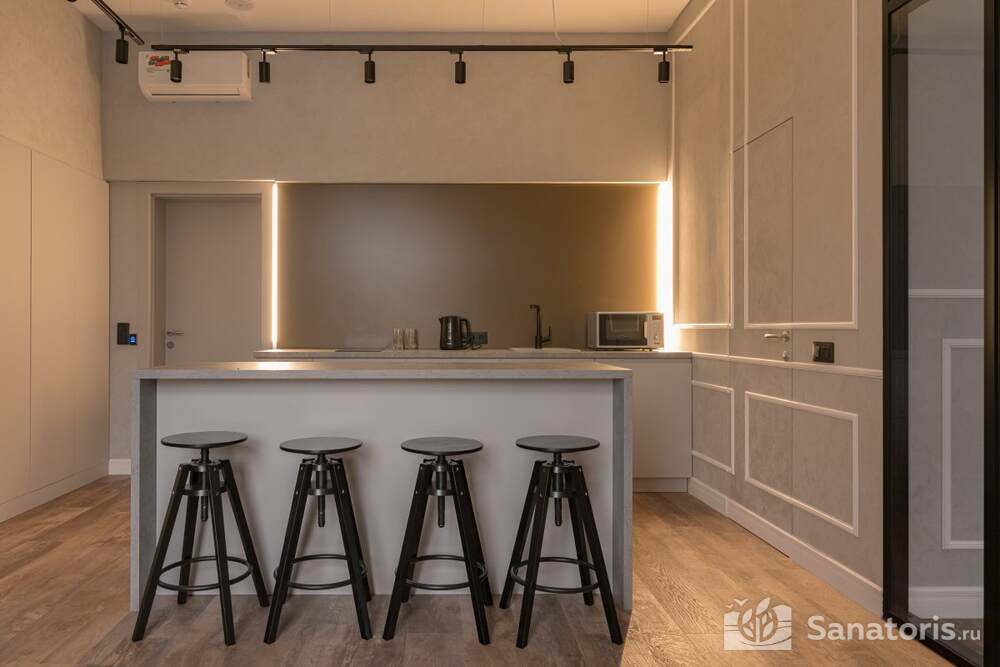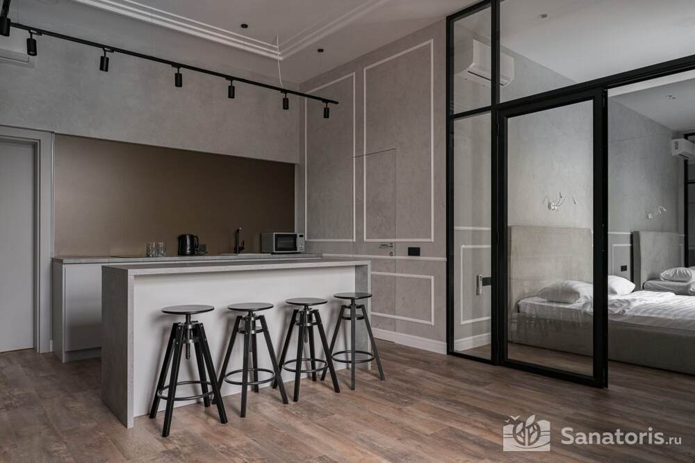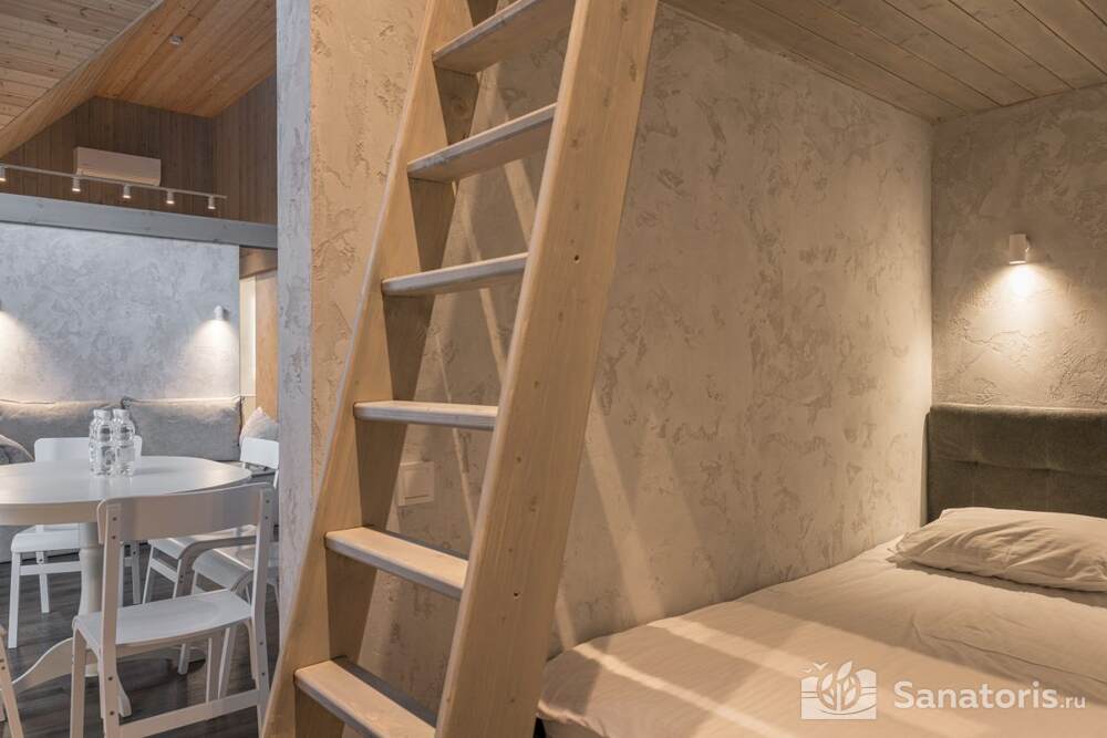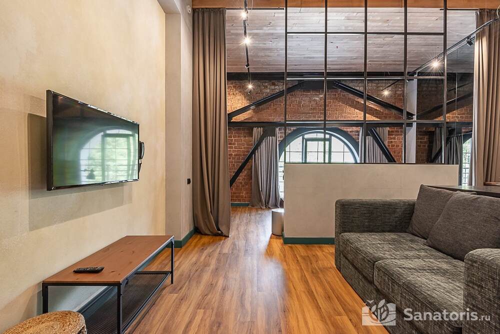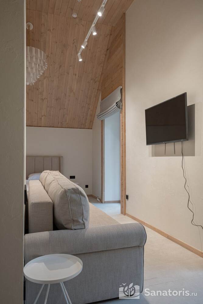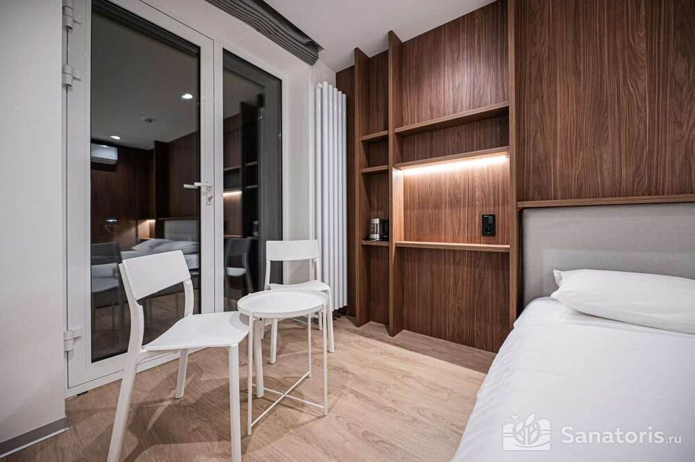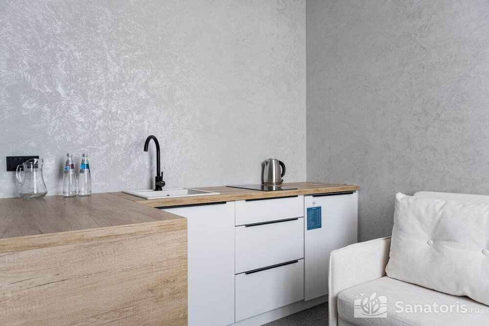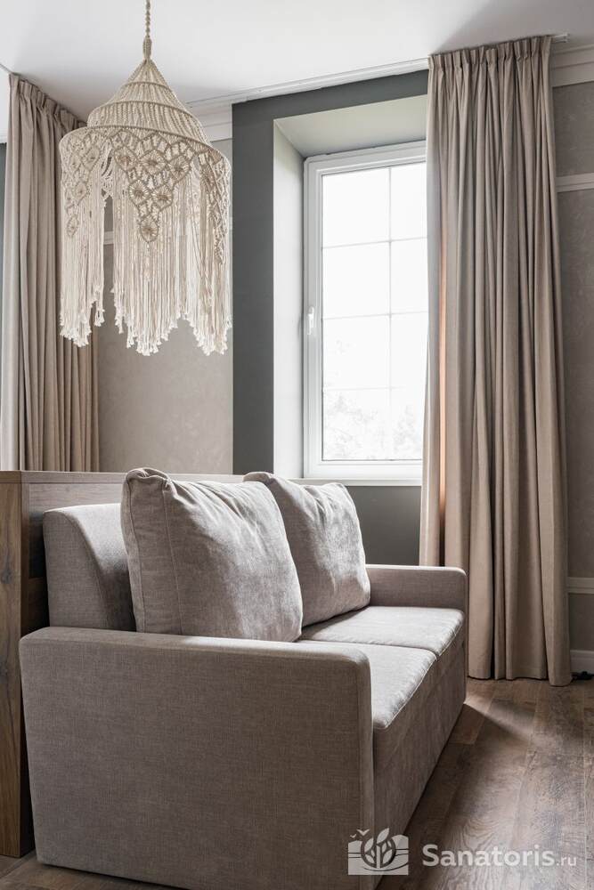 Санаторий предлагает номера разного уровня комфорта и вместительности. Здесь есть номера класса «эконом», а так же «супер-люкс» с собственной кухонной зоной и столовой. Апартаменты оснащены в зависимости от своего класса.
