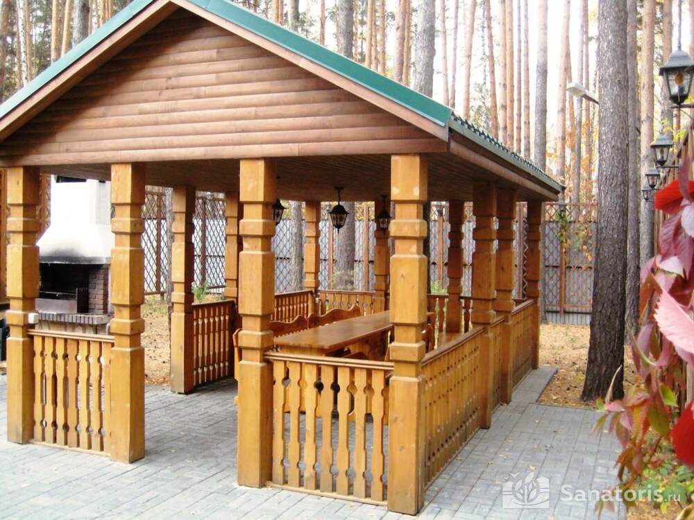 Рядом с хвойным лесом обустроены площадки для организации пикников. Гости могут отдыхать в деревянных беседках разной вместительности. На берегу озера тоже есть беседки.