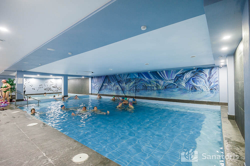 Активные гости санатория могут посещать зал с тренажерами, соляную комнату. На улице есть теннисный корт и спортивная площадка.