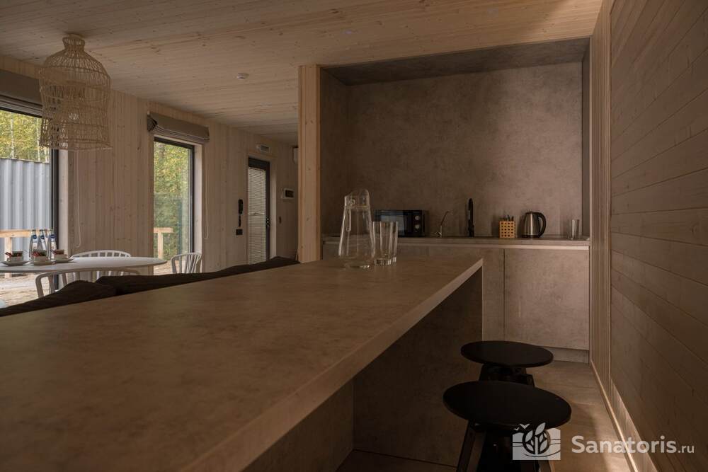 В спальном корпусе есть каминный зал. Здесь оборудованы огромные панорамные окна, которые открывают красивый вид на бассейн. Еще один камин установлен в конференц-зале. Постояльцы отеля могут посетить уютное кафе, которое находится в термальном центре. Здесь можно перекусить легкими блюдами, а так же попробовать различные напитки.