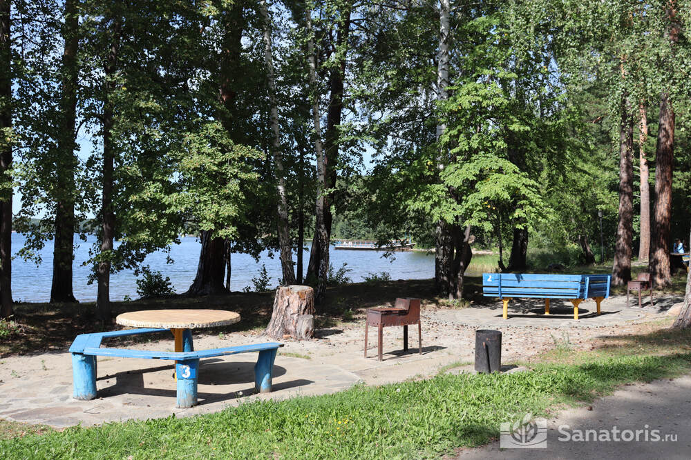 Общая площадь здравницы составляет почти 28 гектар. Со всех сторон произрастает хвойный лес, поэтому воздух здесь кристально чистый.