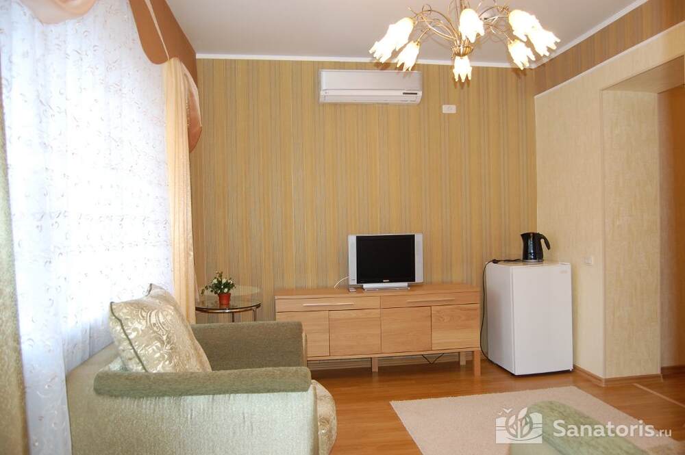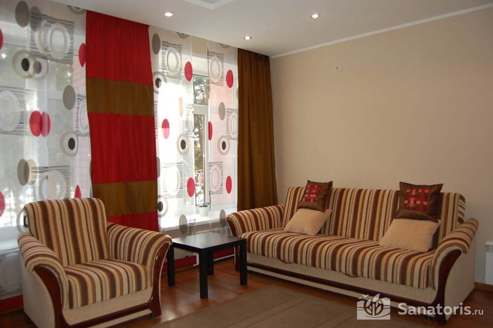 Все номера комфортные и удобные. Они обставлены мягкой мебелью и имеют необходимые атрибуты, чтобы придать отдыху и пребыванию в санатории нотку домашнего уюта. Посетить турбазу могут не только взрослые, но и семьи с детьми. Питание полноценное и разнообразное, а сам обеденный зал довольно вместительный.