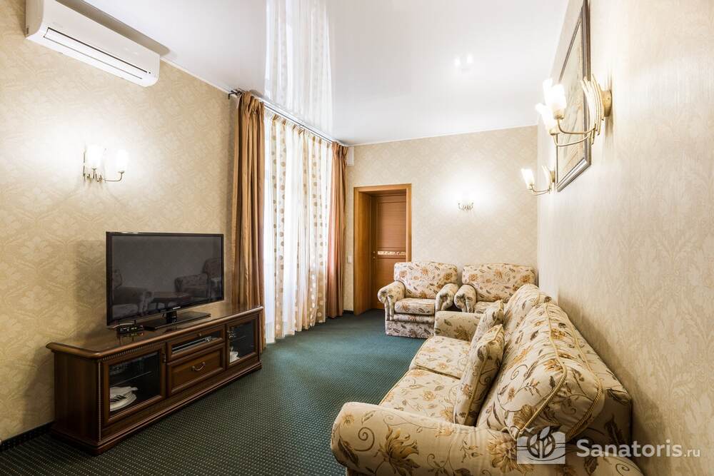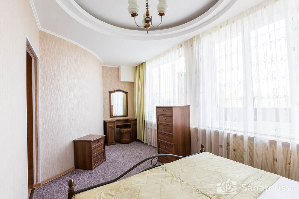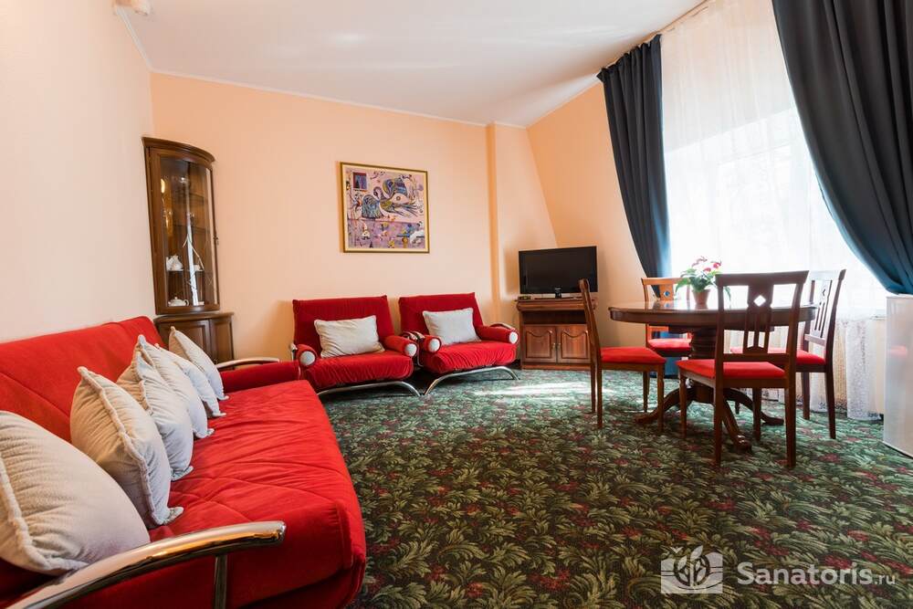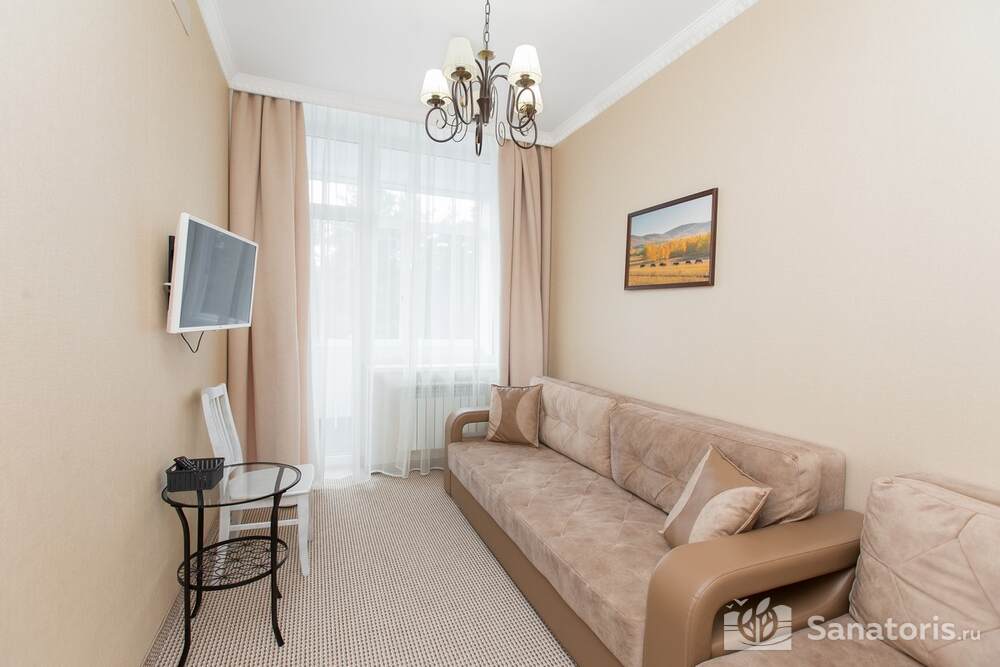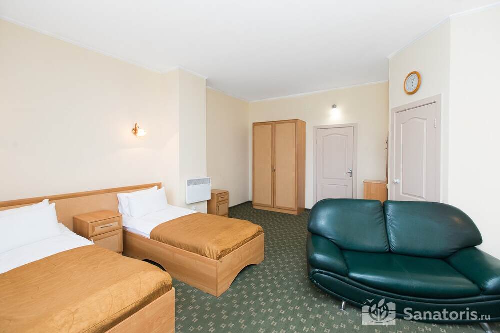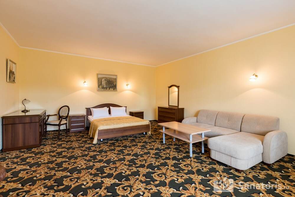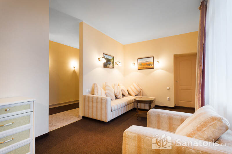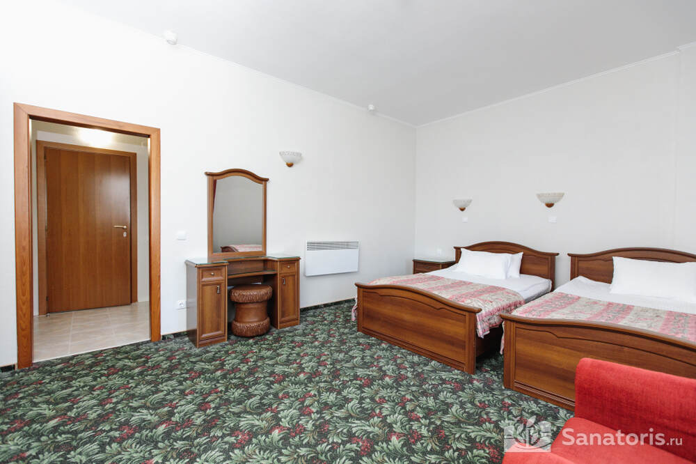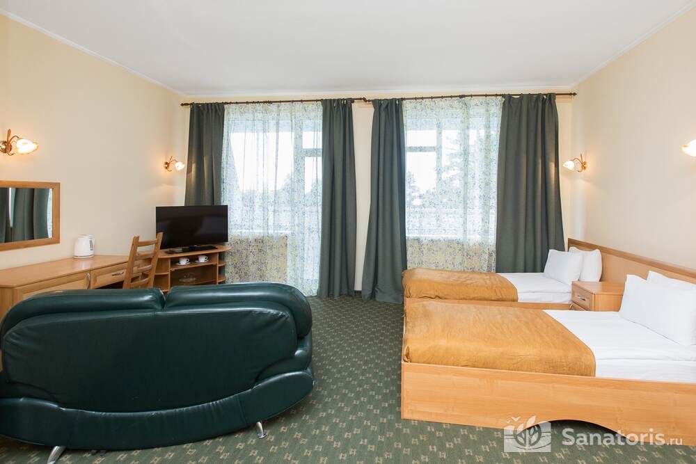 Для проживания гостей предусмотрено 3 корпуса, а так же отдельно стоящие коттеджи. Одновременно в санатории может проживать около 400 постояльцев. Для этого оборудованы апартаменты разной вместительности и комфортабельности.