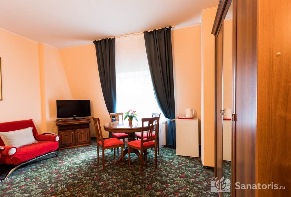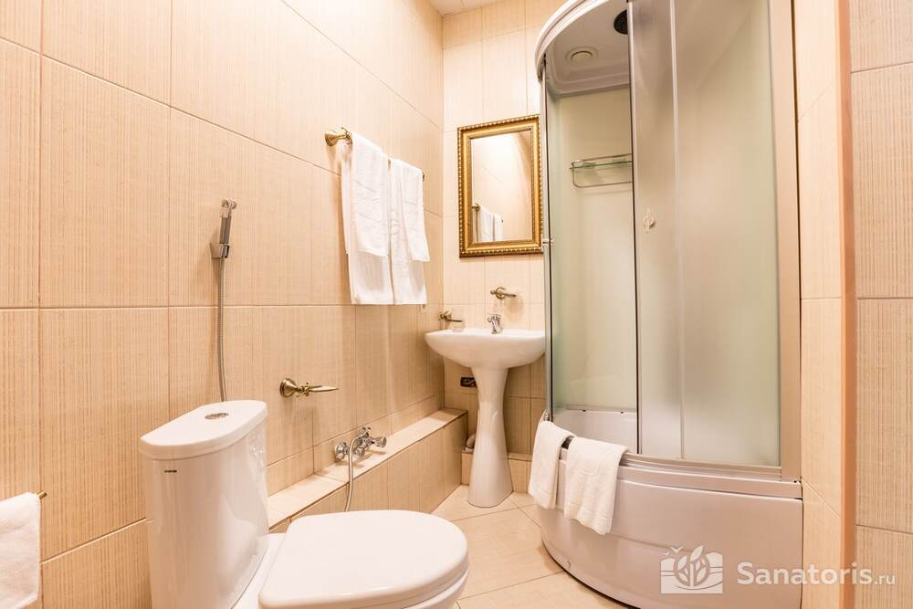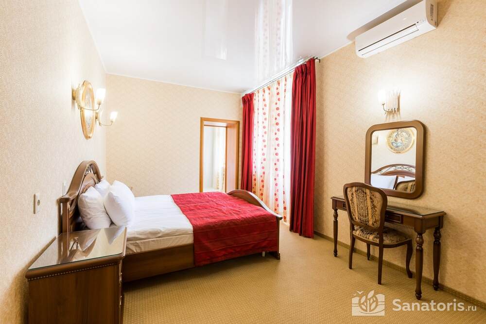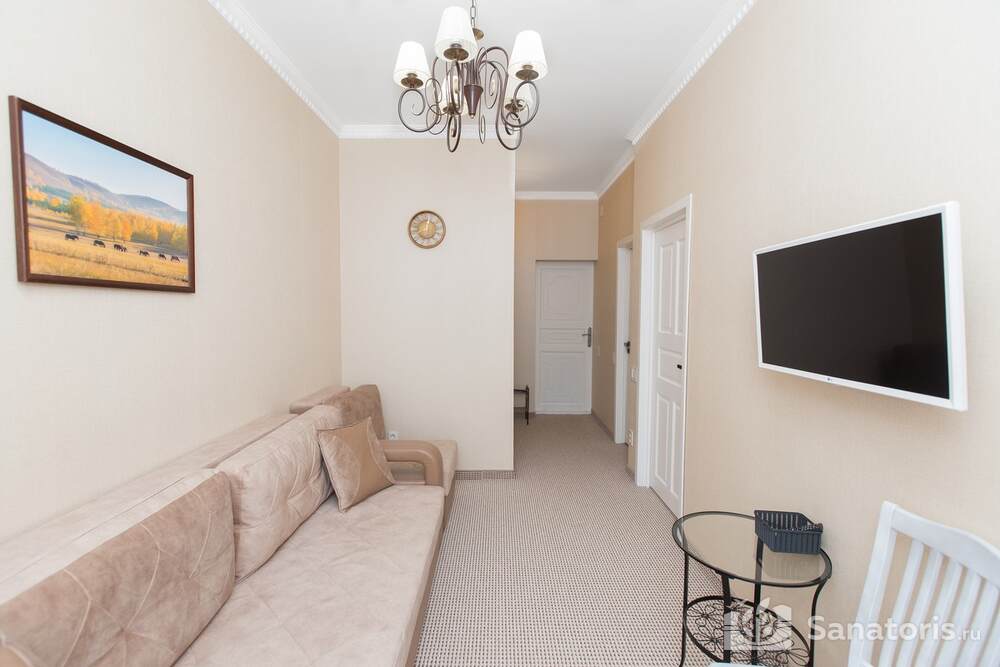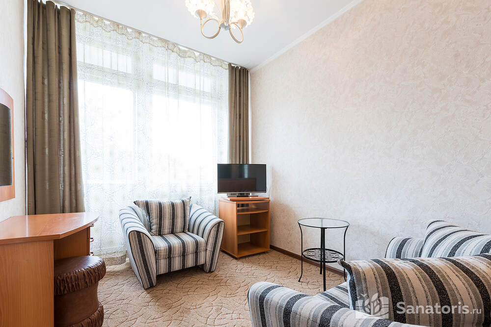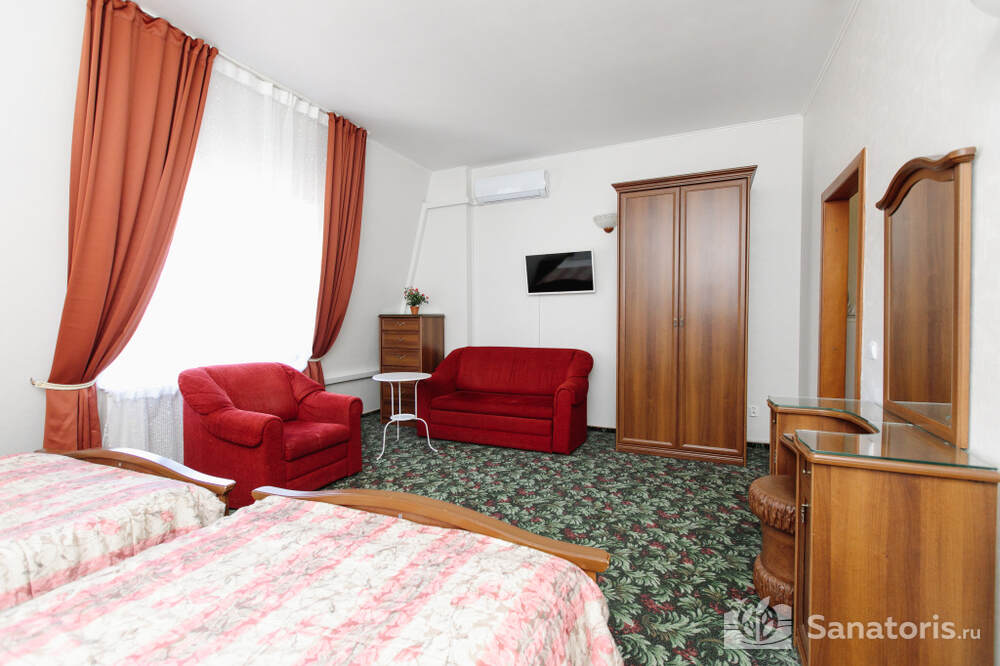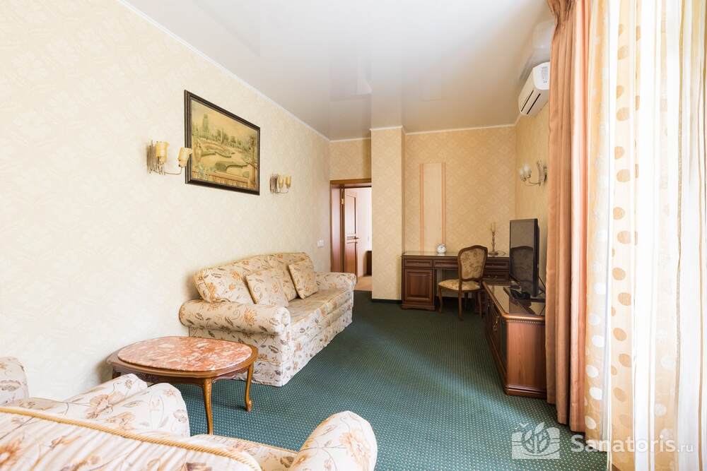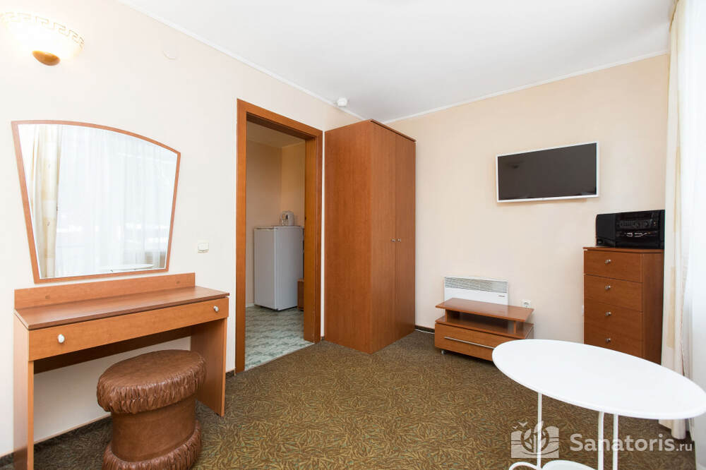 Для проживания гостей предусмотрено 3 корпуса, а так же отдельно стоящие коттеджи. Одновременно в санатории может проживать около 400 постояльцев. Для этого оборудованы апартаменты разной вместительности и комфортабельности.