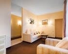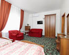 В номере класса «стандарт» есть просторная кровать, тумбочки и другая необходимая мебель. Так же есть спутниковое телевидение, небольшой холодильник, санузел и душ.