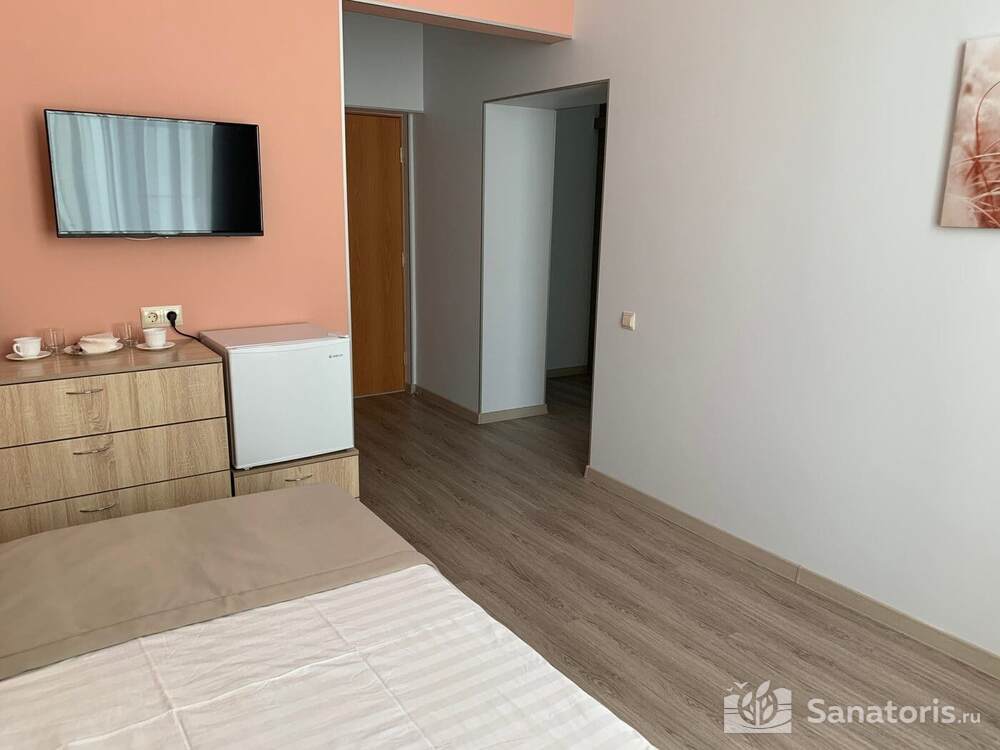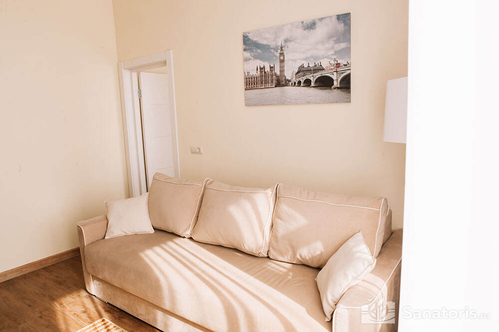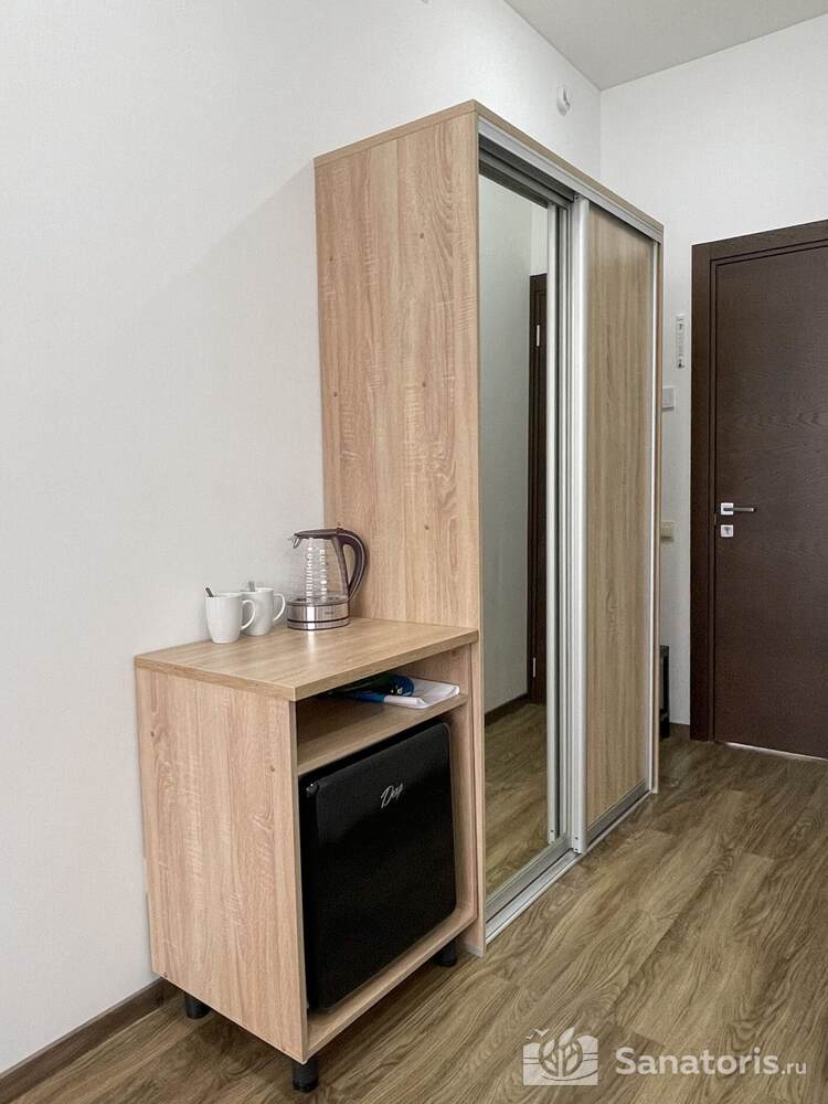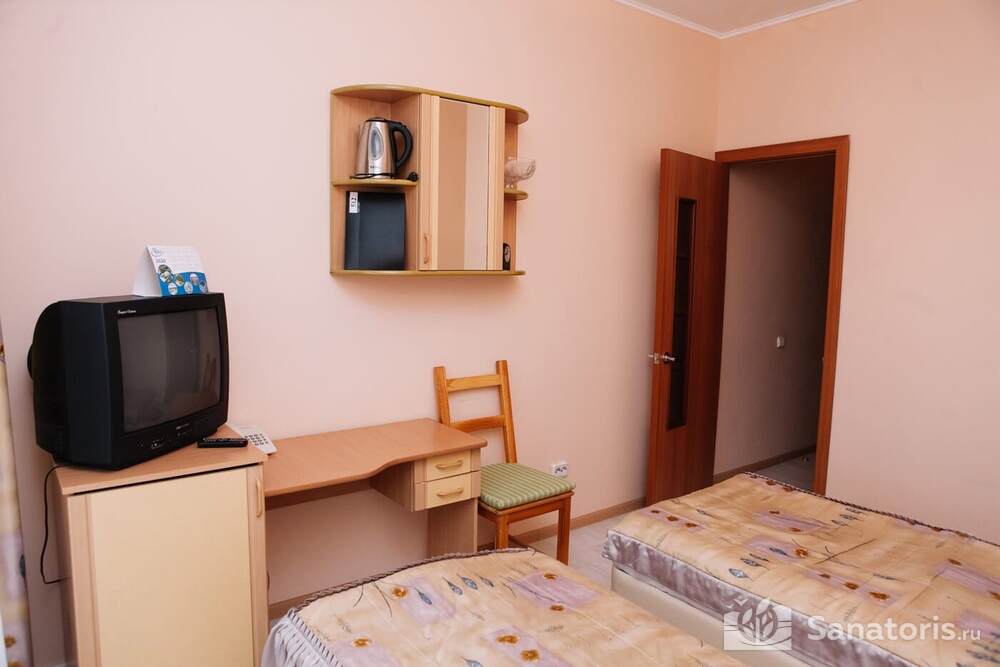 Для проживания гостей предусмотрен отдельный корпус. Он соединяется с другими зданиями теплым переходом. Кроме спального корпуса здесь есть медицинский центр, центр досуга, администрация и небольшое кафе.