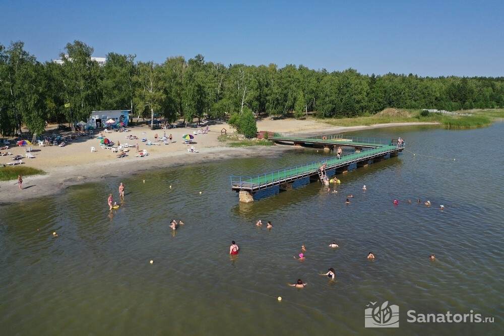 На побережье живописного озера есть пляж с пирсом. Неподалеку работает пункт проката. Туристы могут арендовать лодку, катамаран или любой спортивный инвентарь.