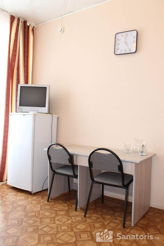 Питание гостей организовывается в большой столовой. Всего здесь три обеденных зала. Одновременно обедать могут 400 человек. Комплексное меню составляют на неделю. Ознакомиться с ним можно на стенде столовой. Есть специально разработанное диетическое меню.