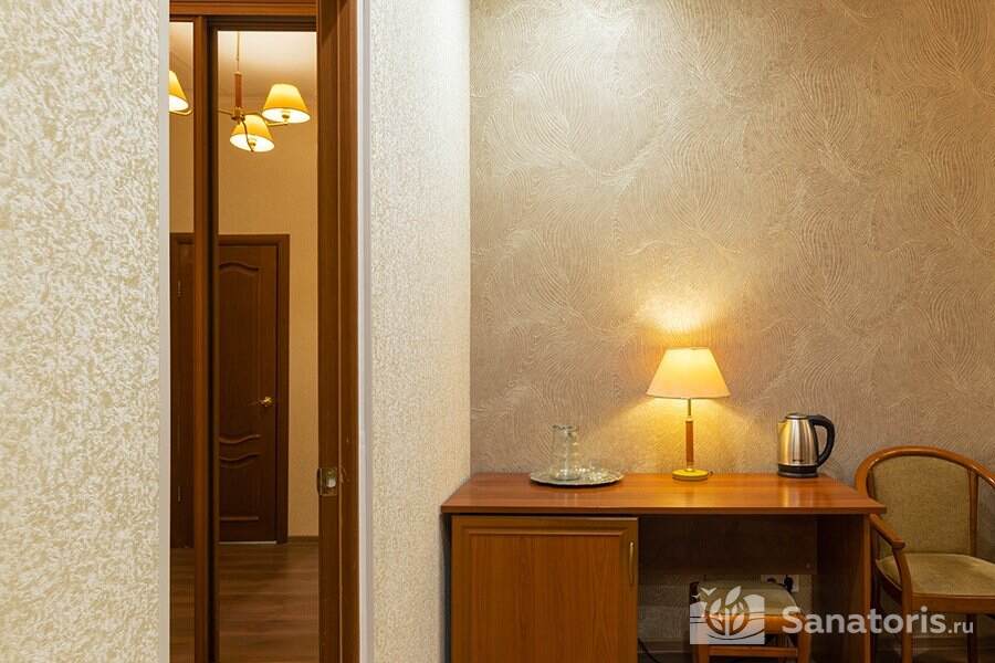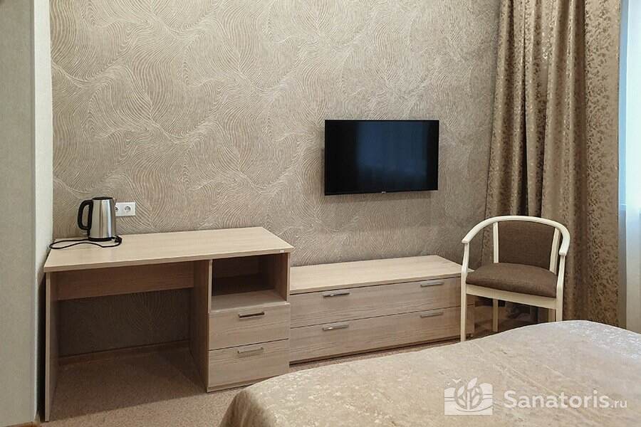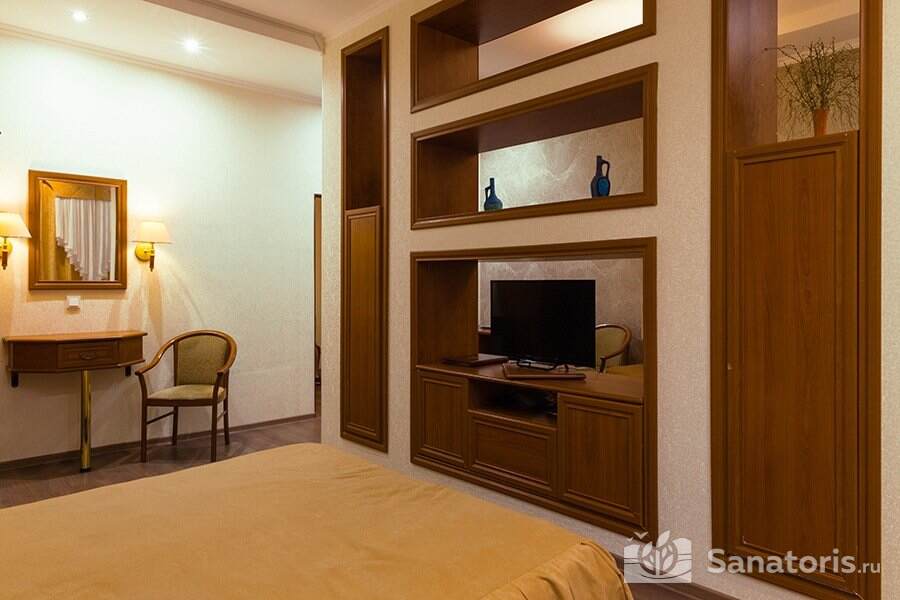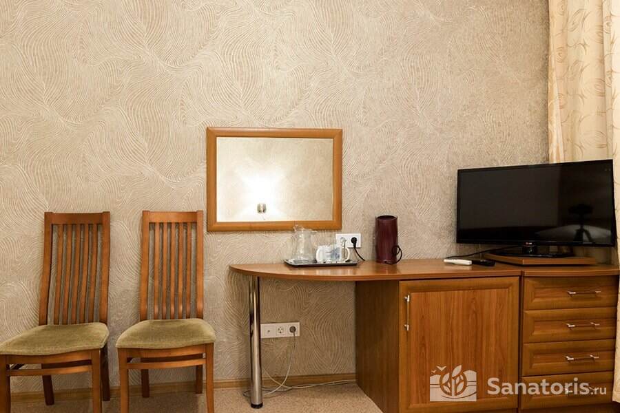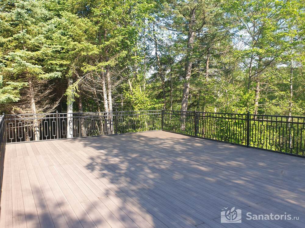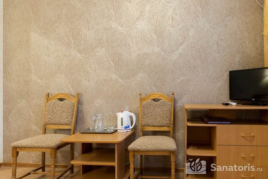 Зона санаторного комплекса огорожена и находится под постоянной охраной. На территории здравницы построен большой бассейн с четырьмя дорожками, сауной и банями, подводными душами. Предоставляемые номера удобные и комфортные, располагающиеся в нескольких современных корпусах.
